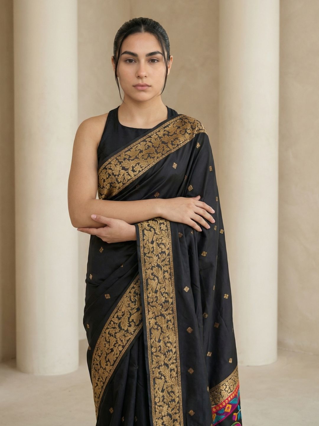 Jade Black Pashmina Kashmiri Silk Zari Woven Saree