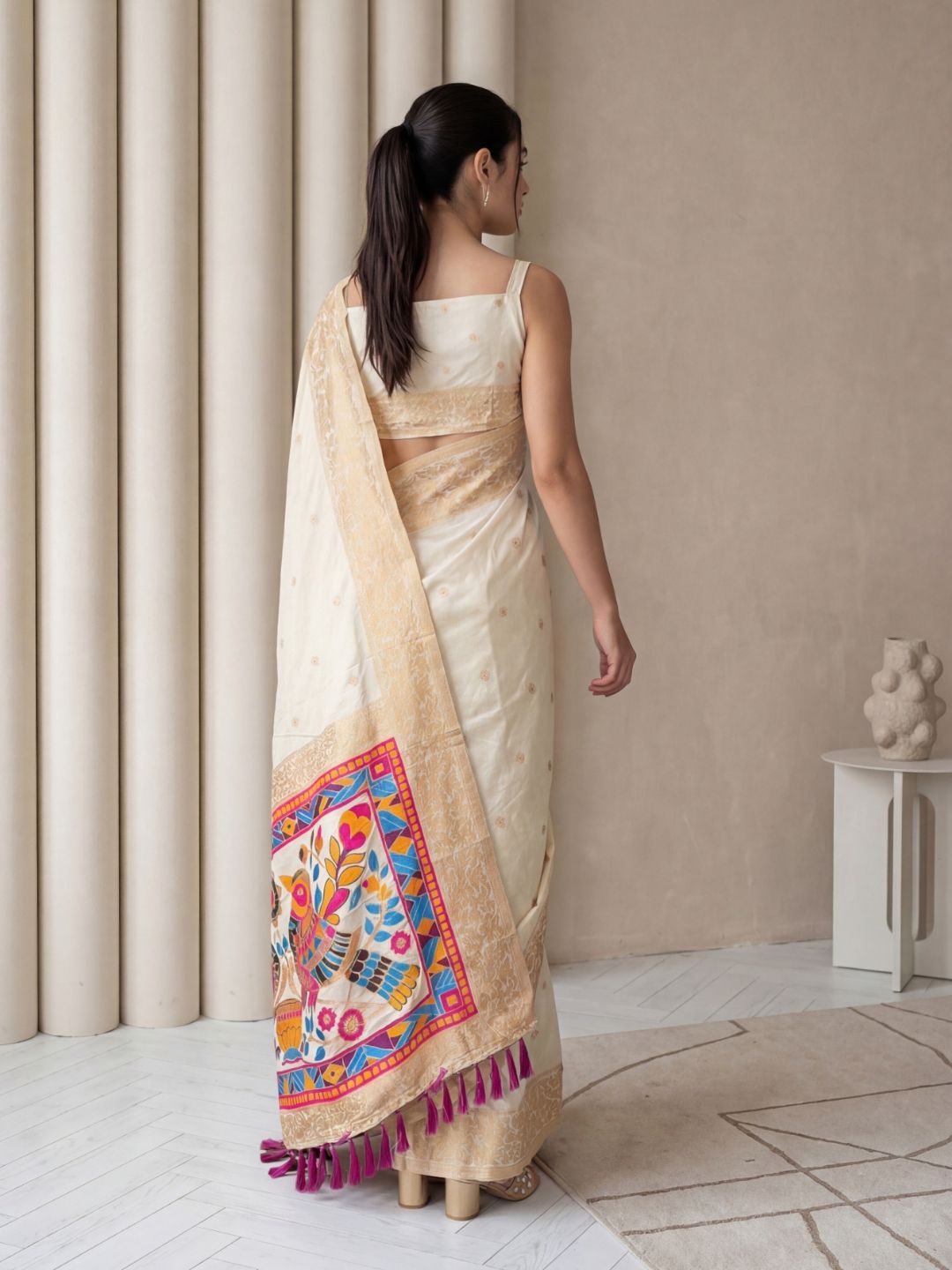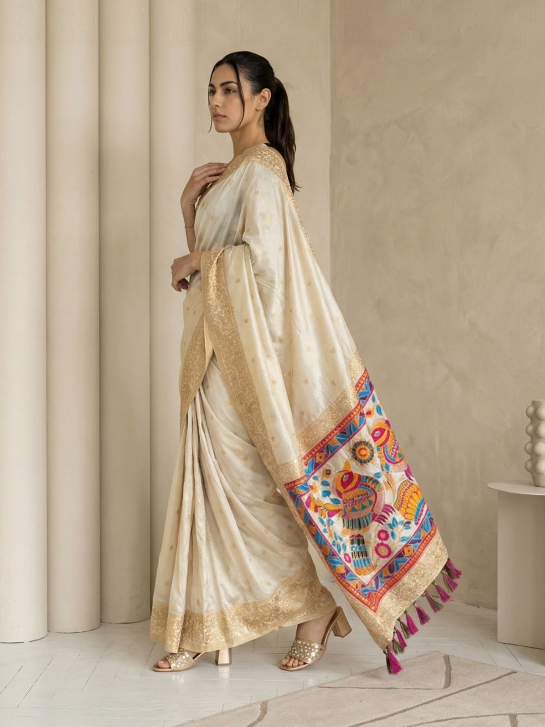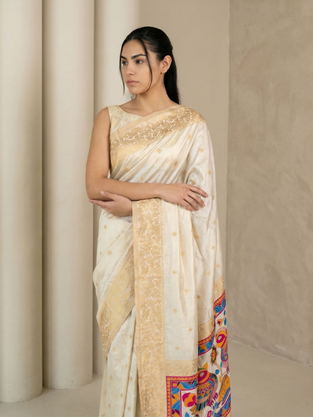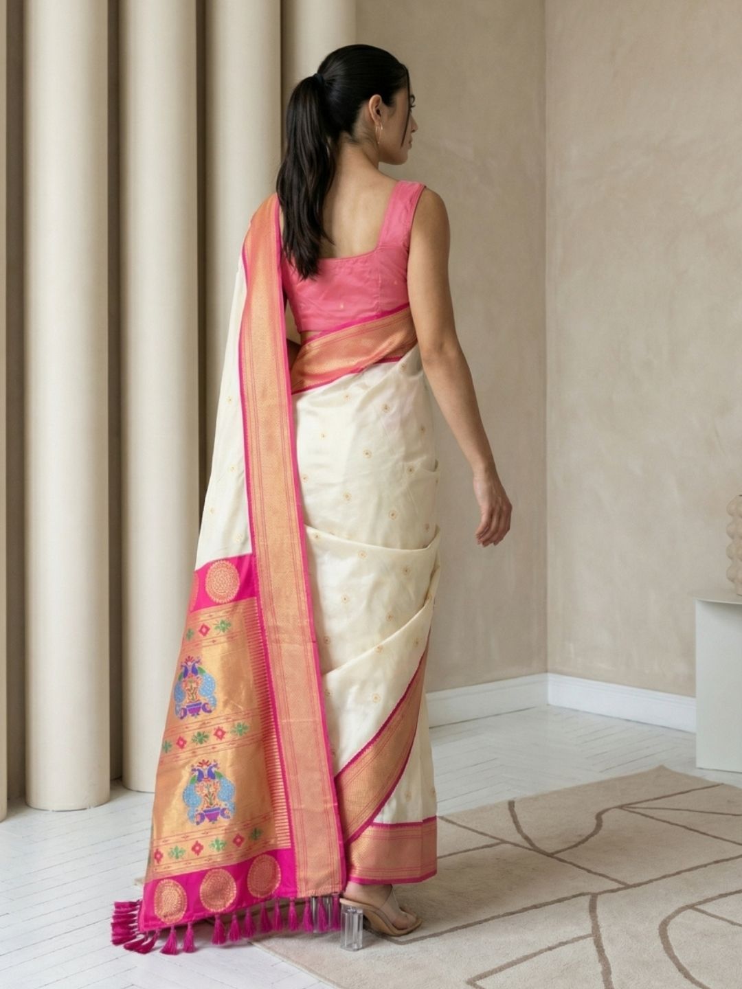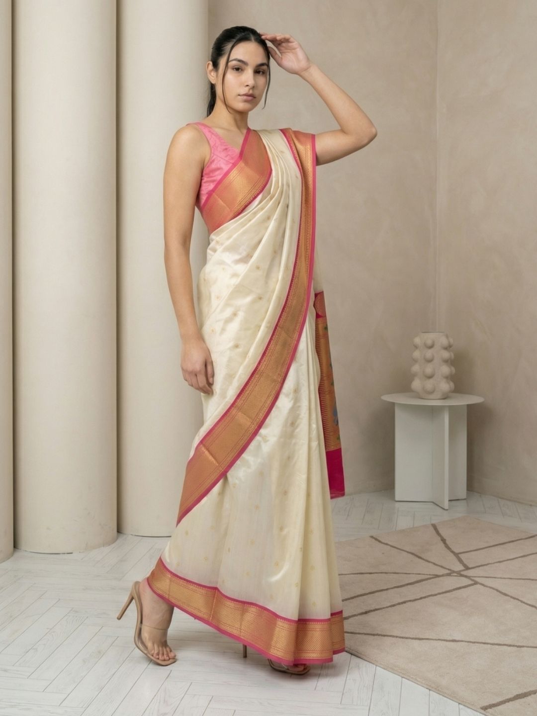 Cream Gala Silk Saree with Paithani Pallu Kadiyal Zari Woven Saree