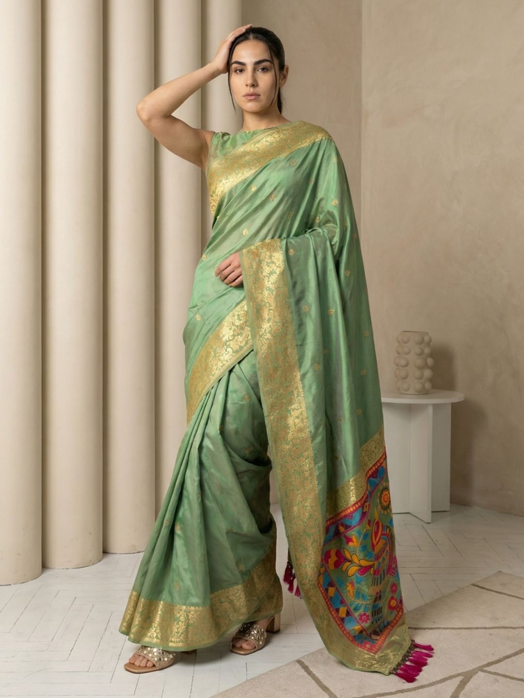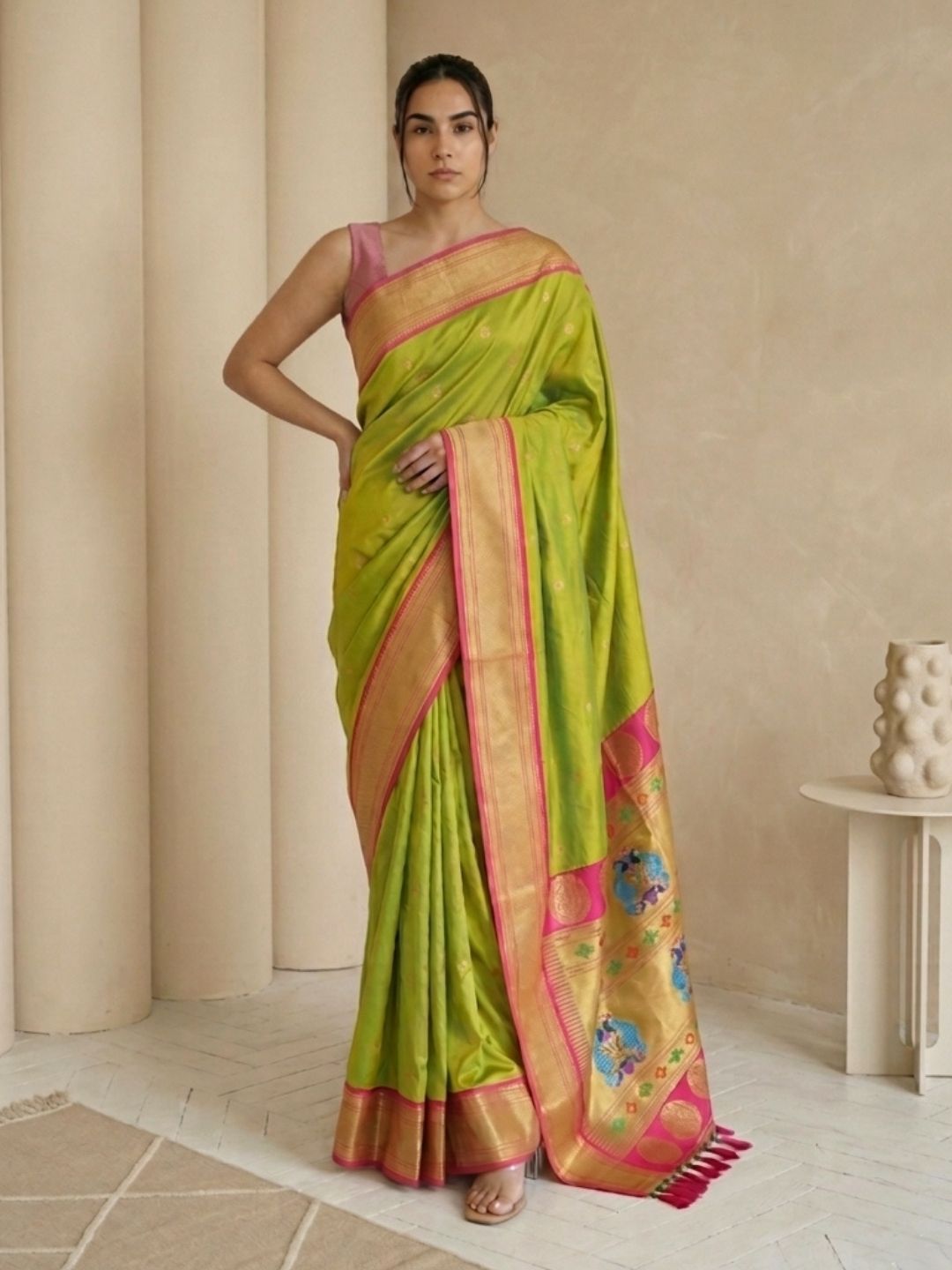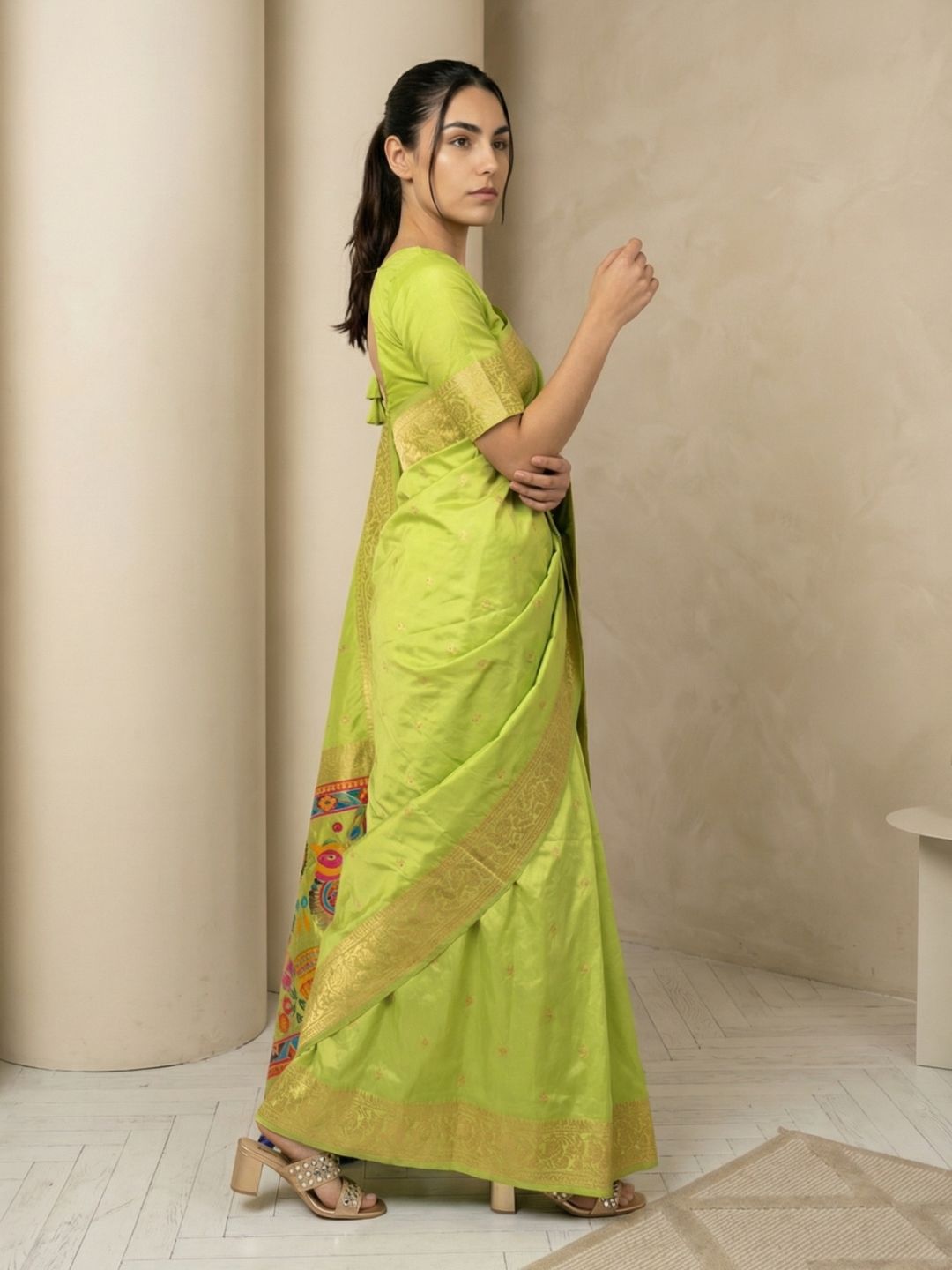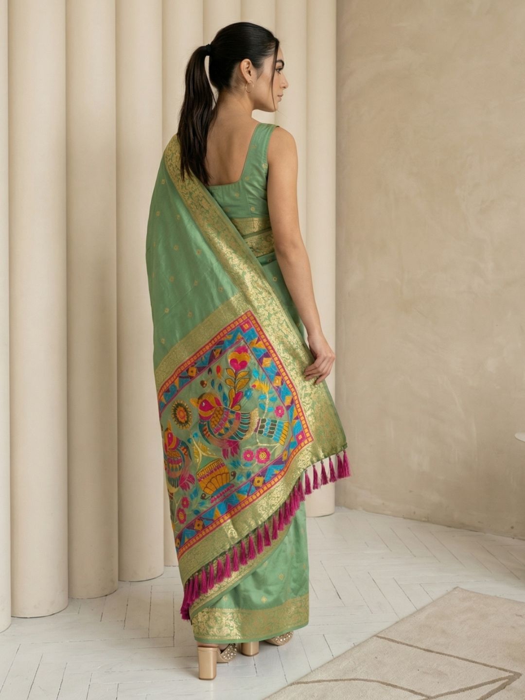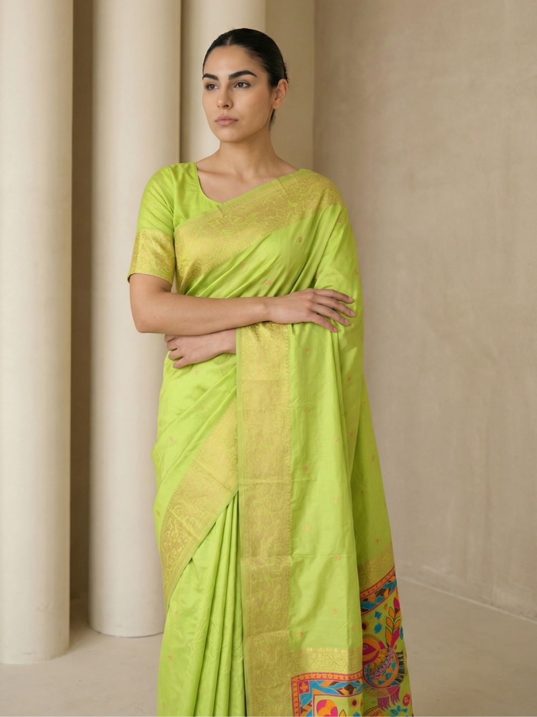 Mehendi Green Paithani Silk Saree with Muniya Satin Border