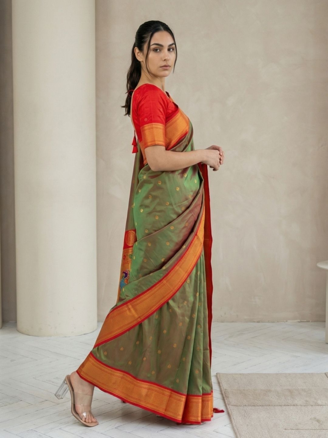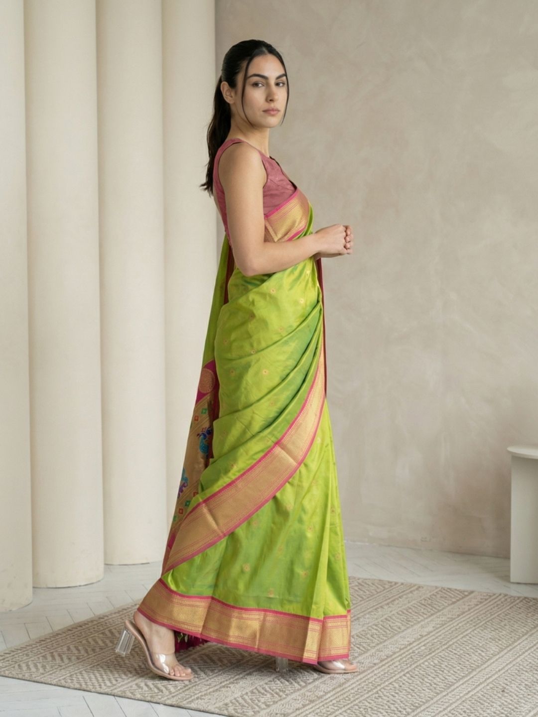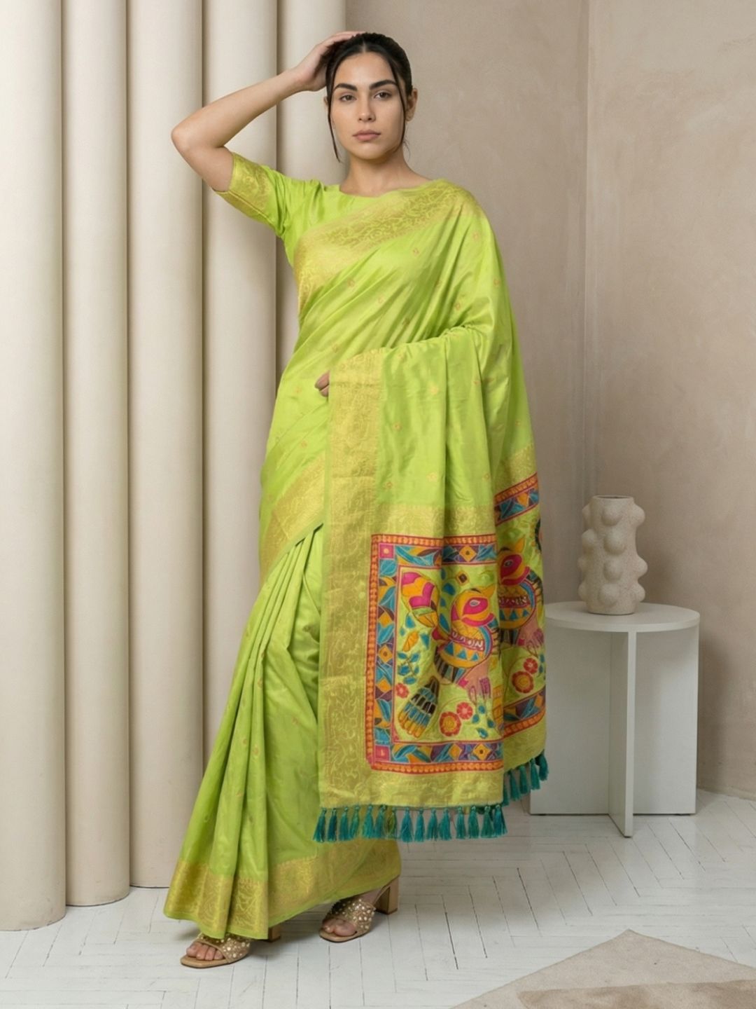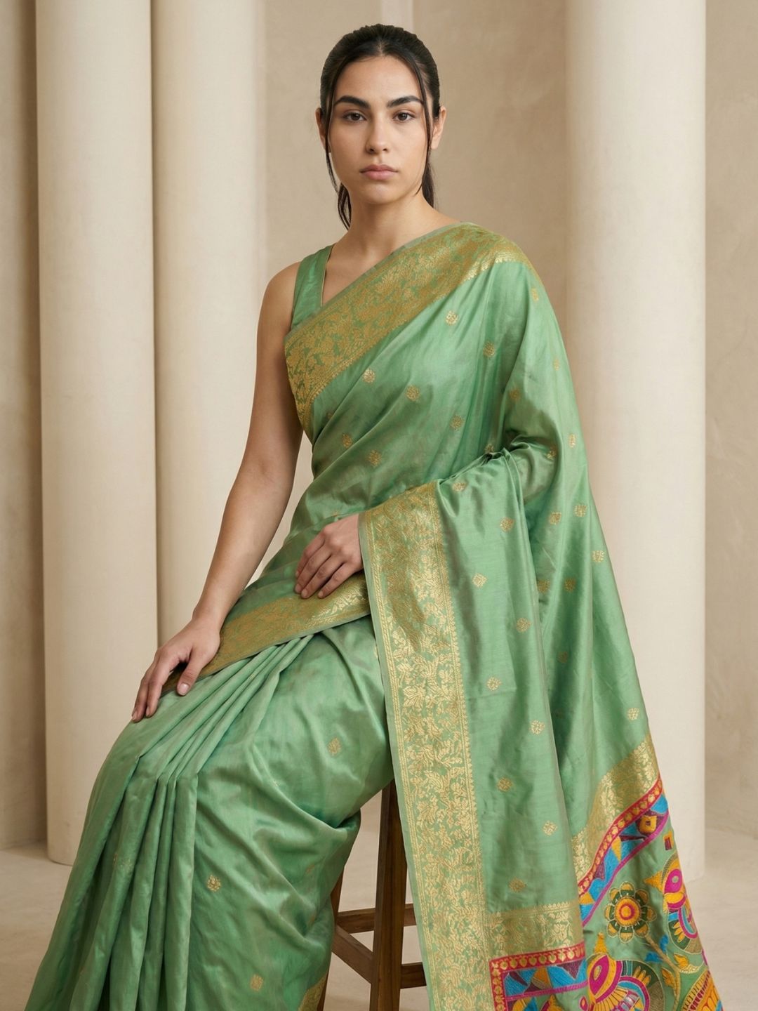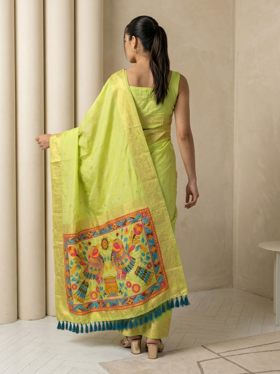 Mehendi Green Paithani Silk Saree with Muniya Satin Border