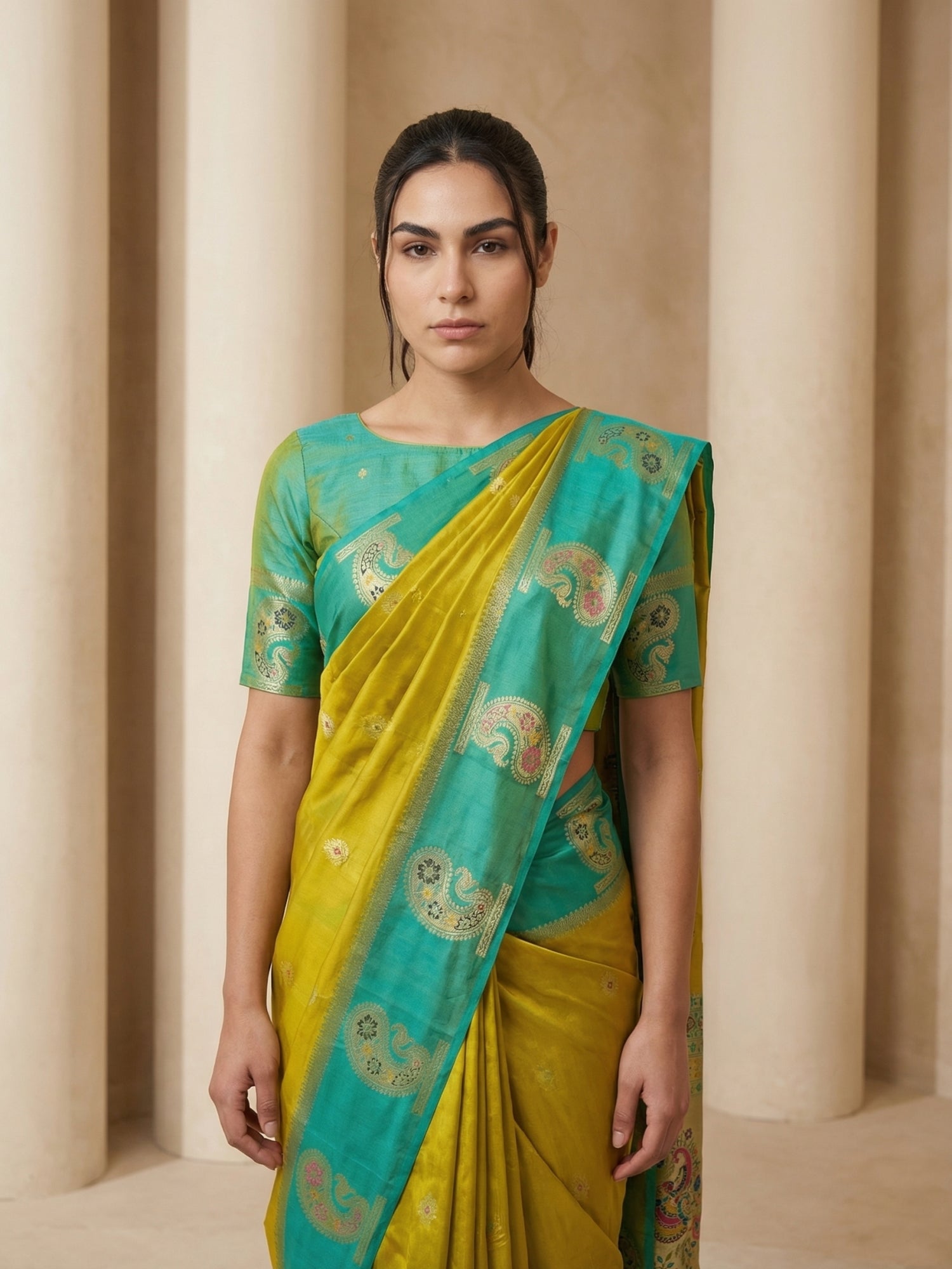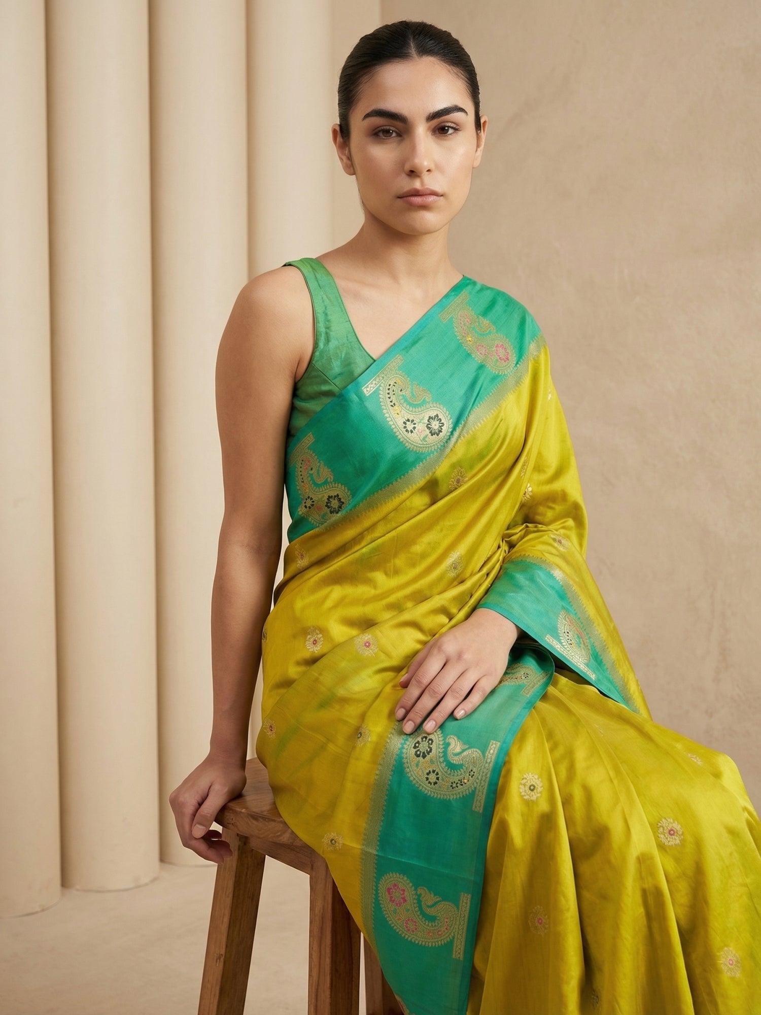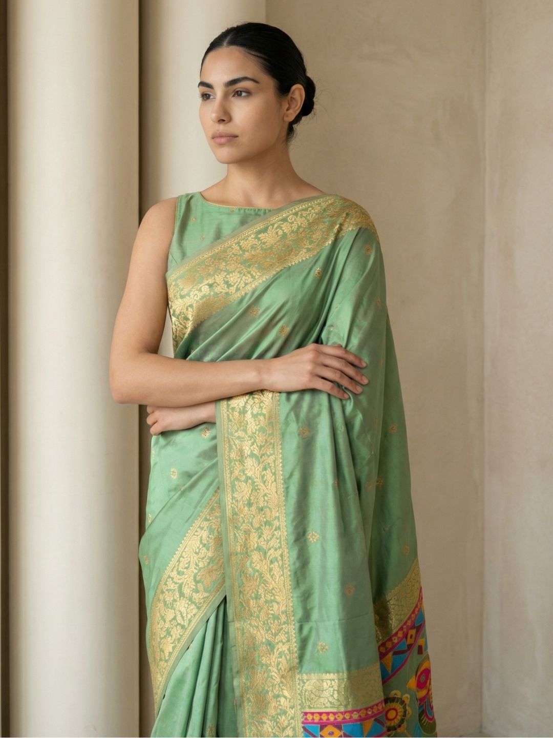 Green Soft Kashmiri Silk Zari Woven Contrast Saree