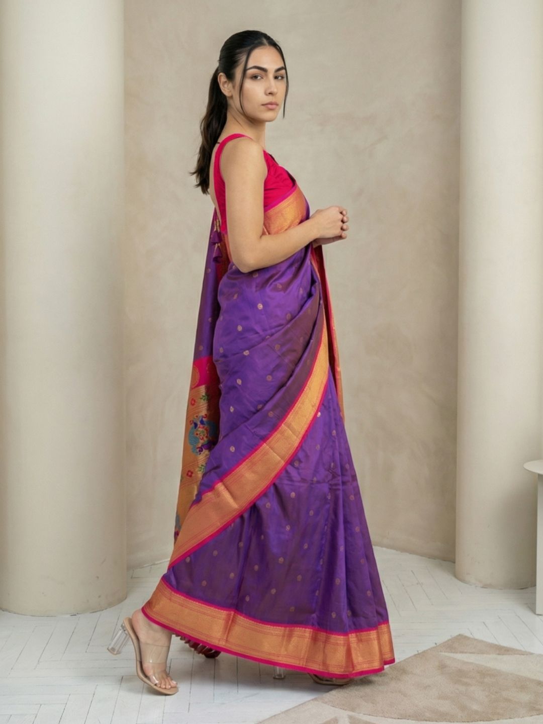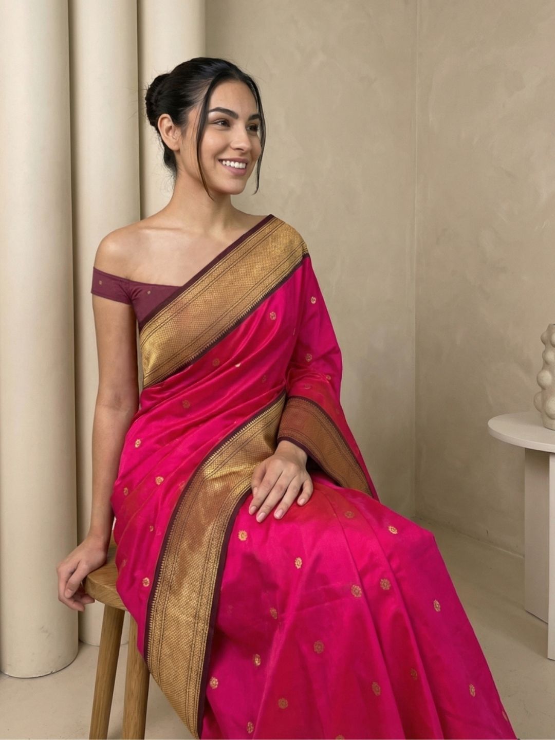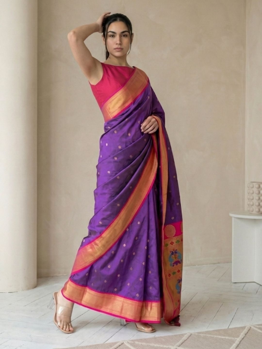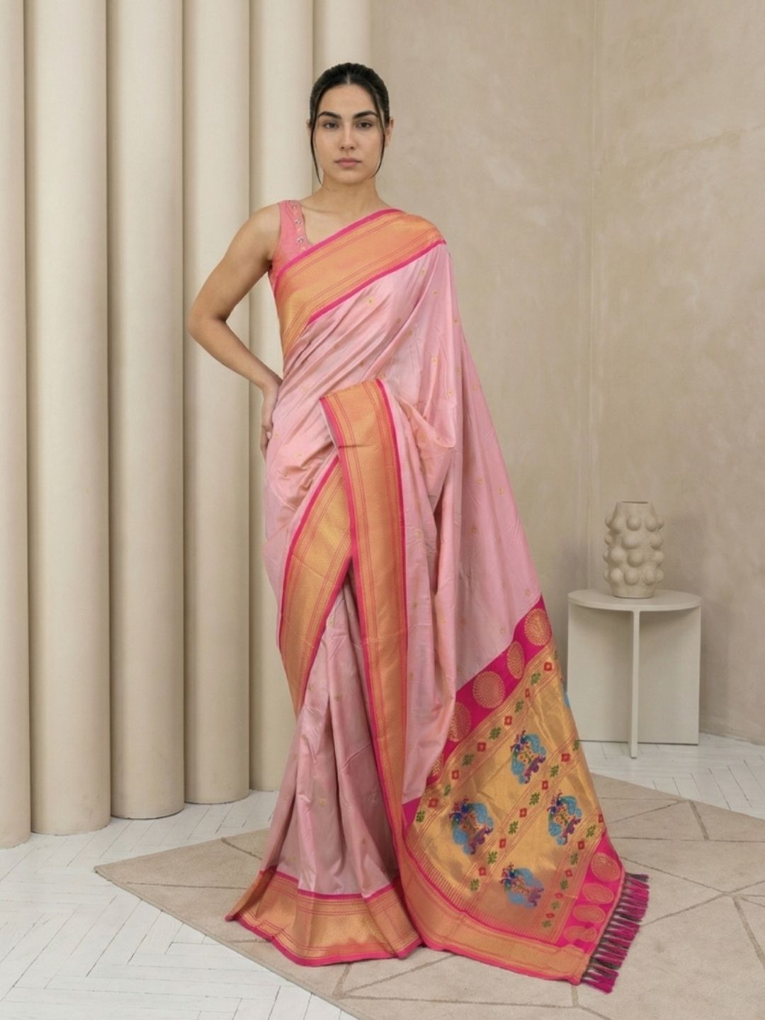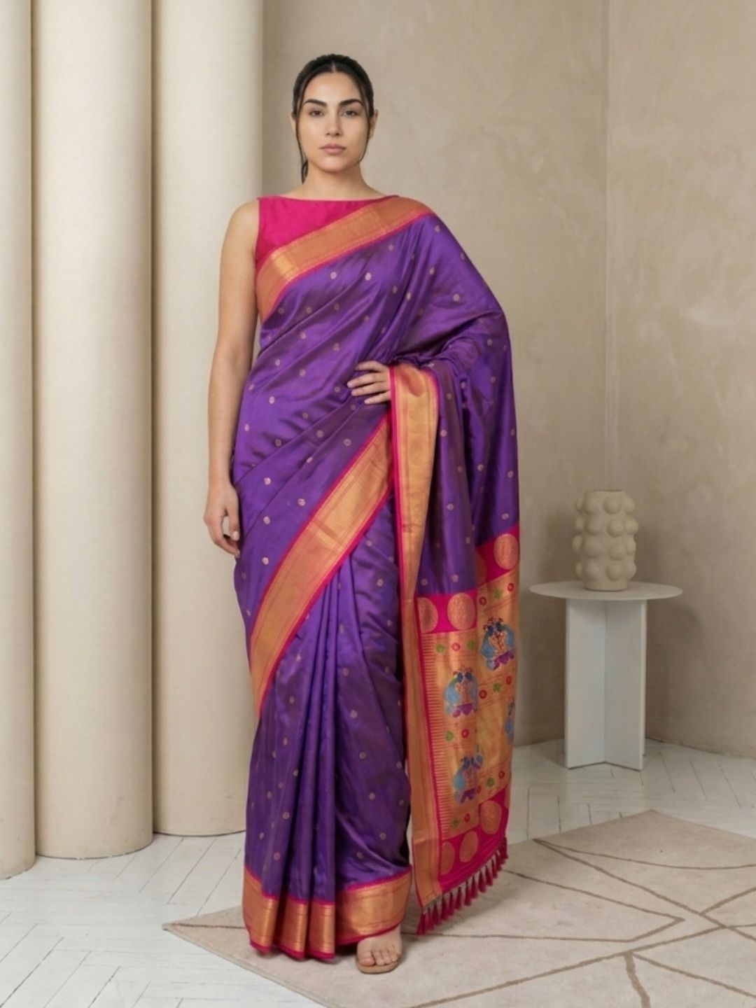 Aditi in our Dark Pink Organza Paithani Zari Woven Saree