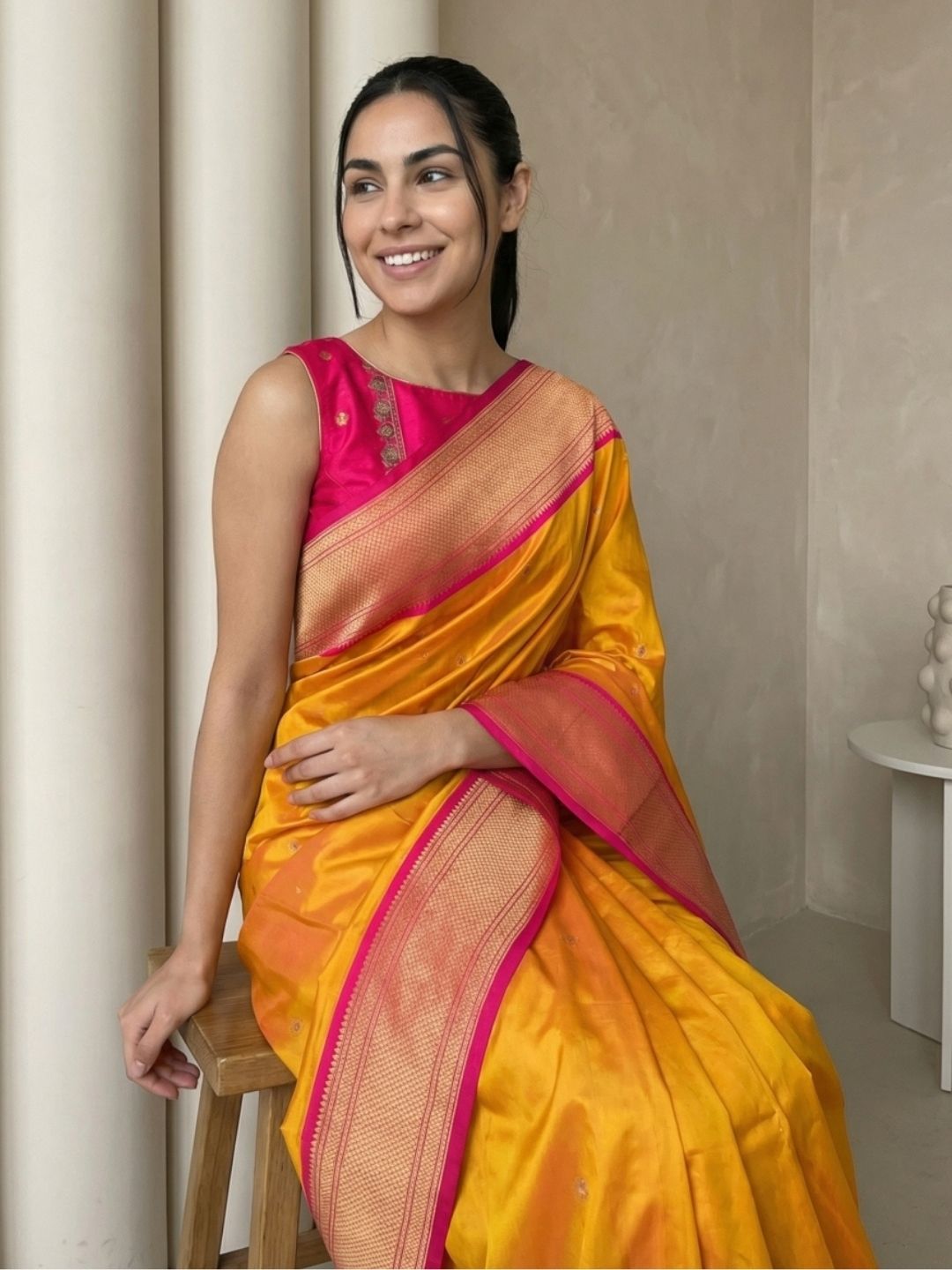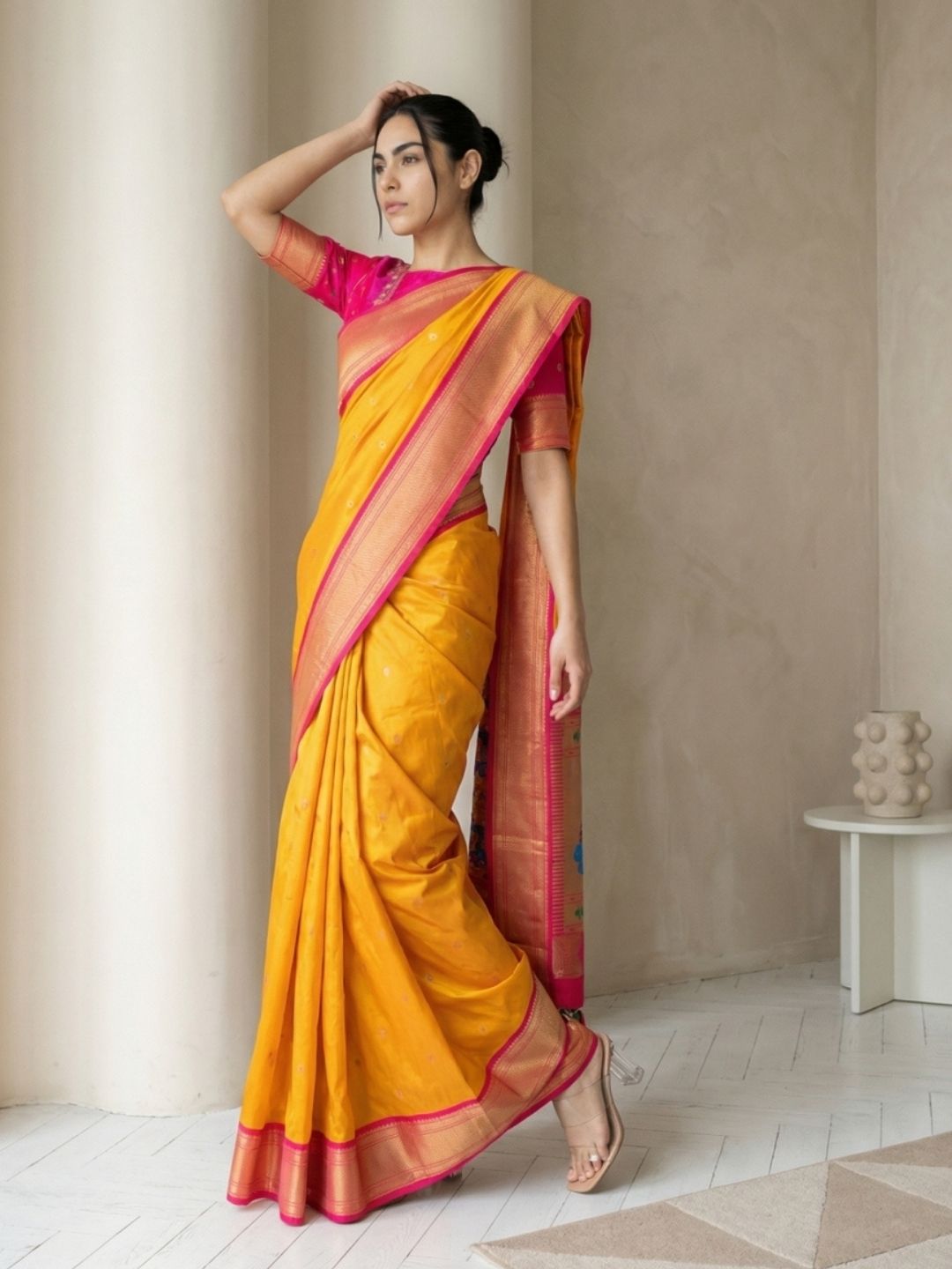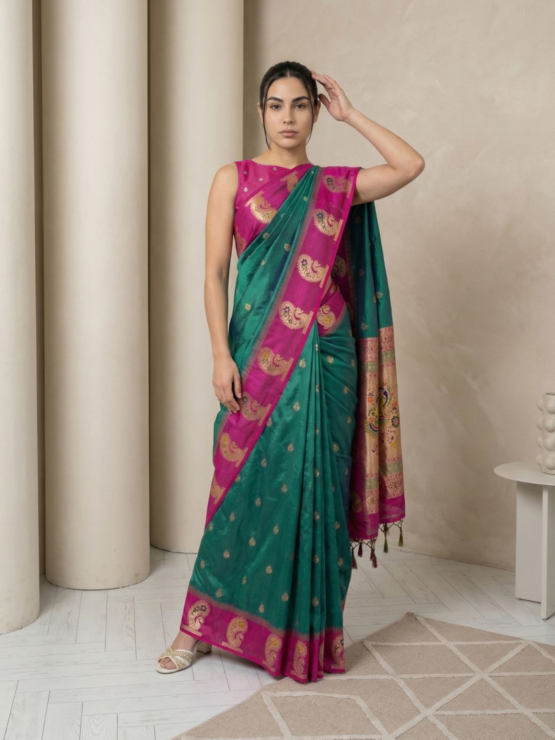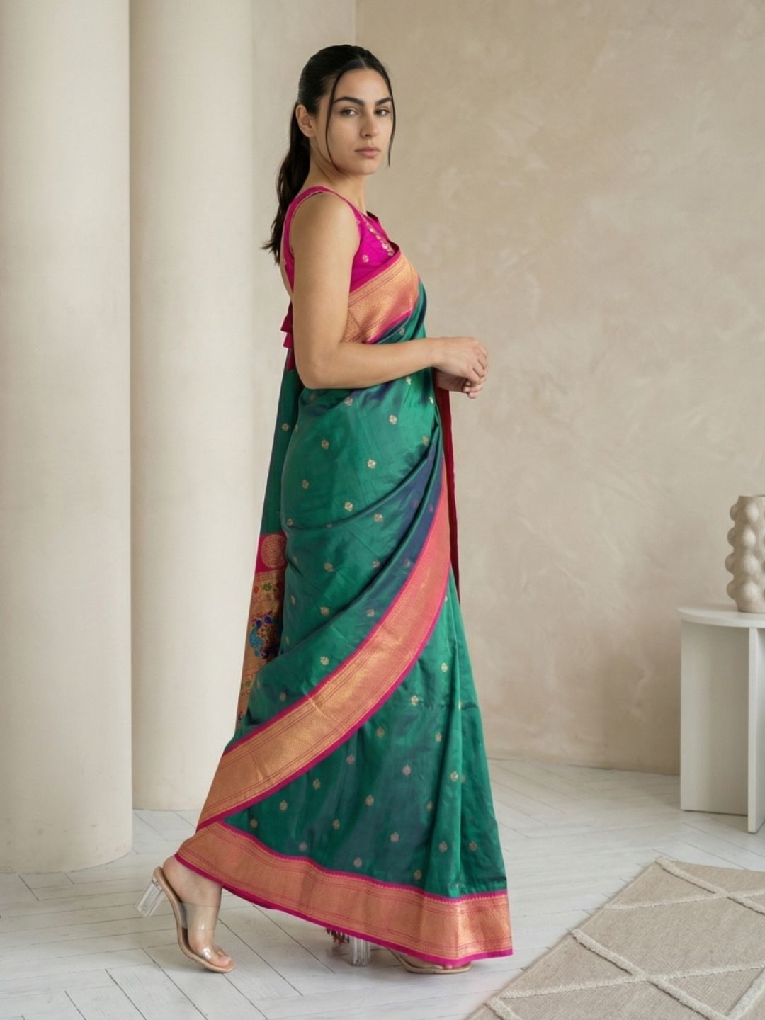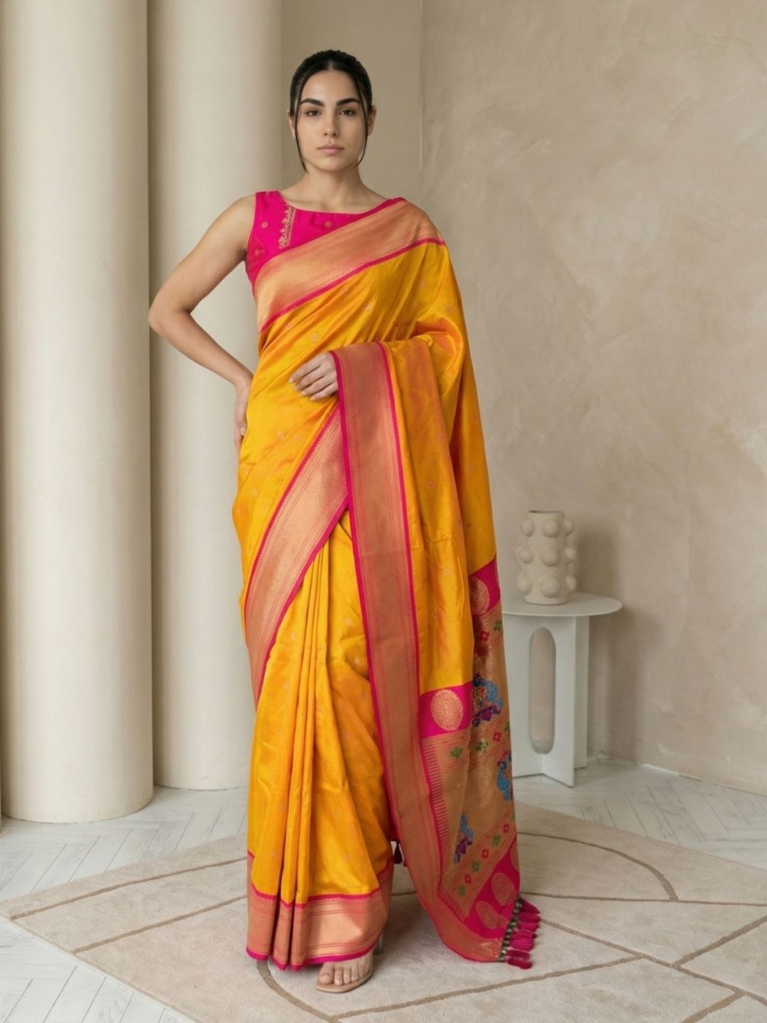 Aditi in our Dark Pink Organza Paithani Zari Woven Saree