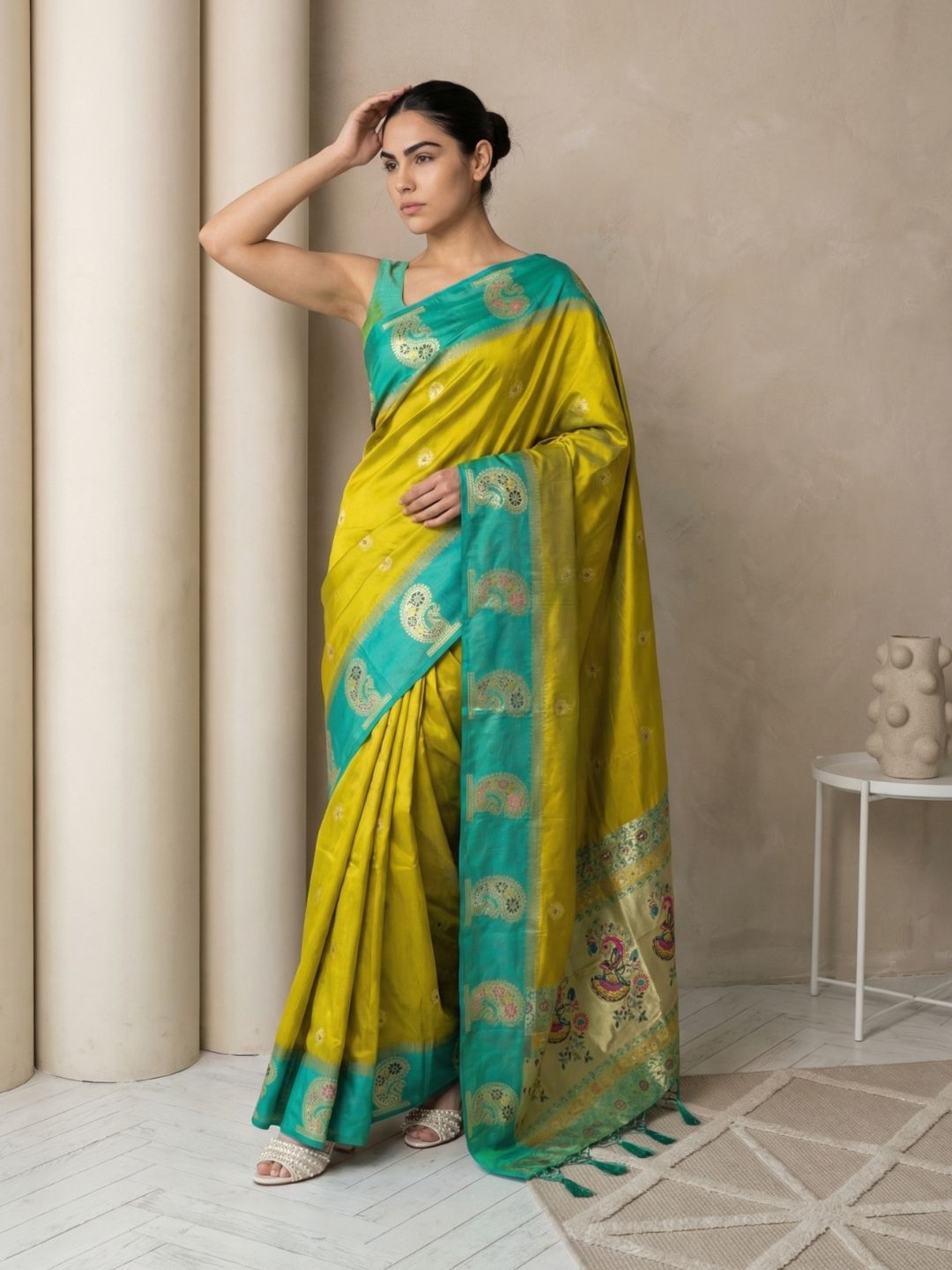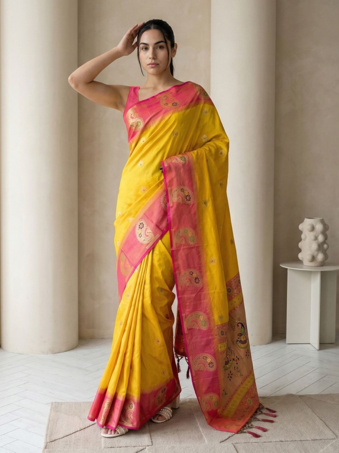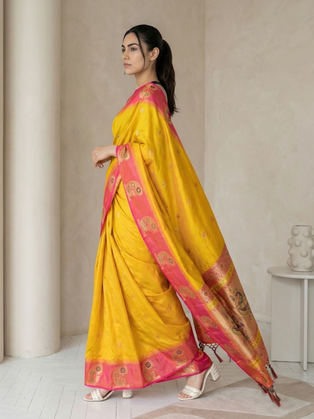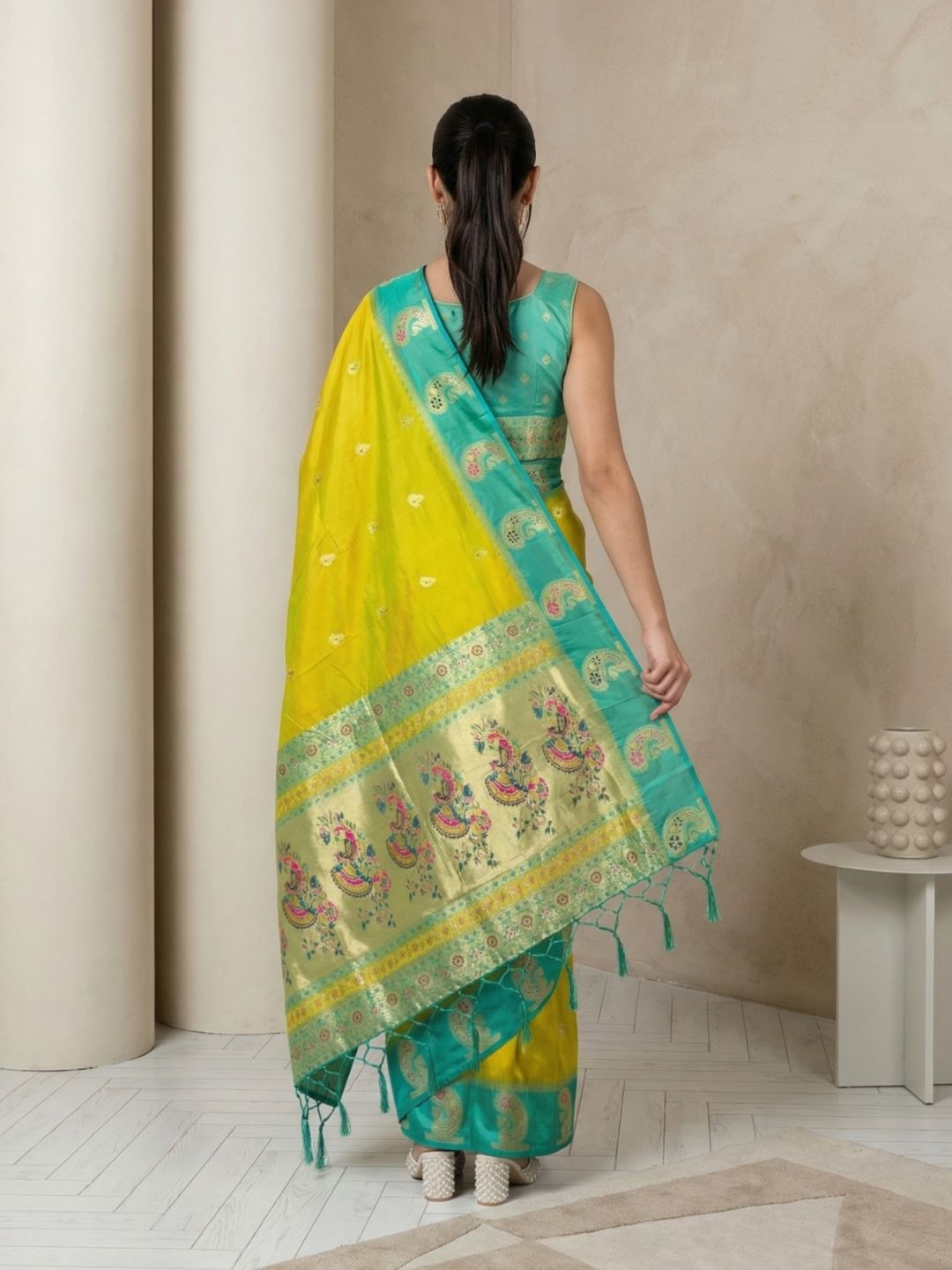 Yellow Organza Paithani Zari Woven Saree