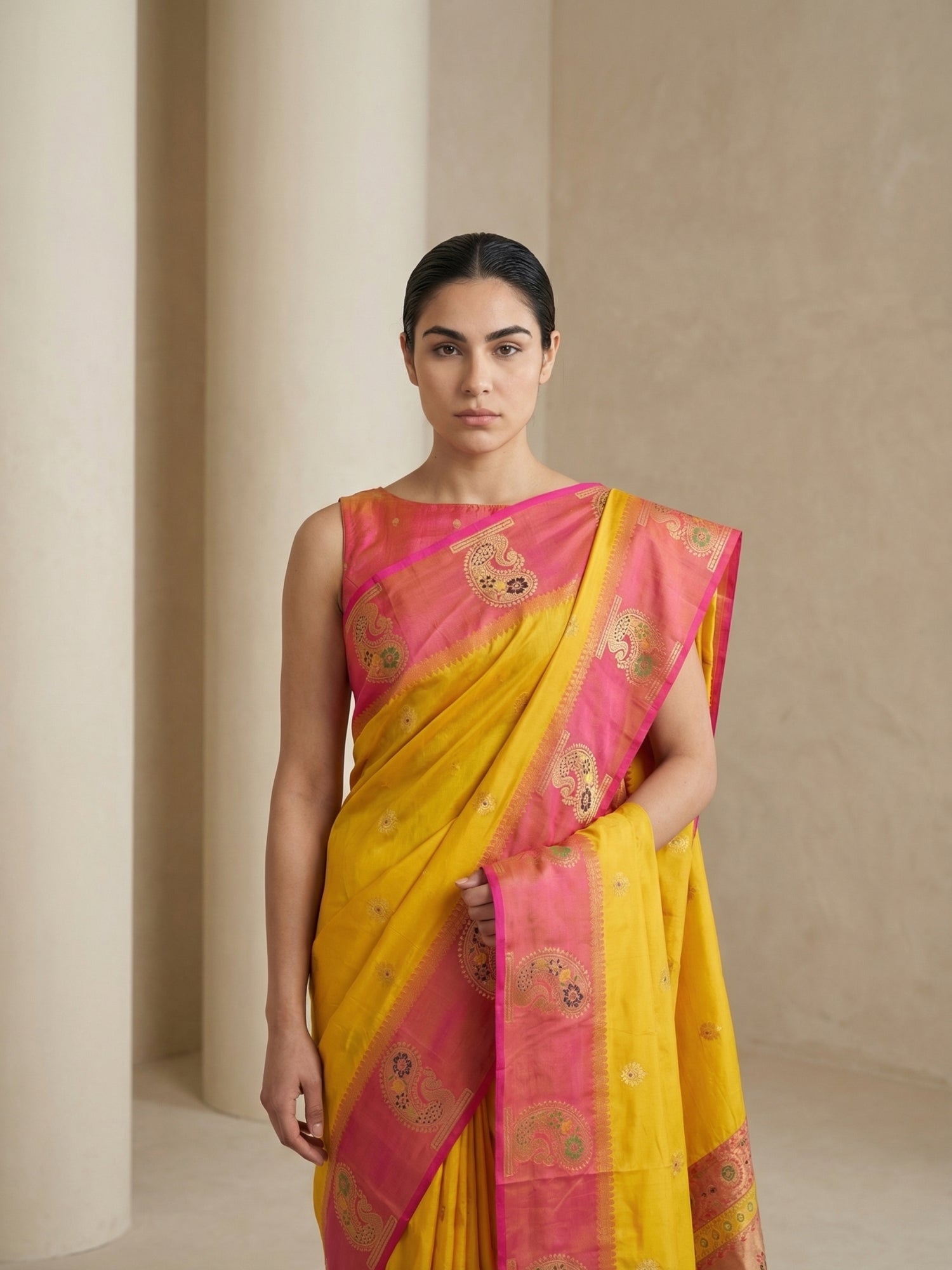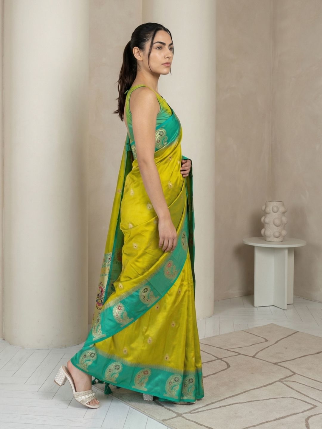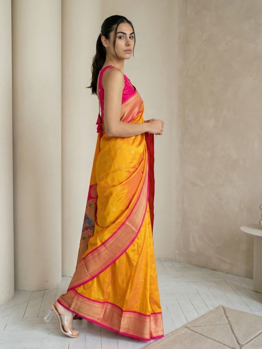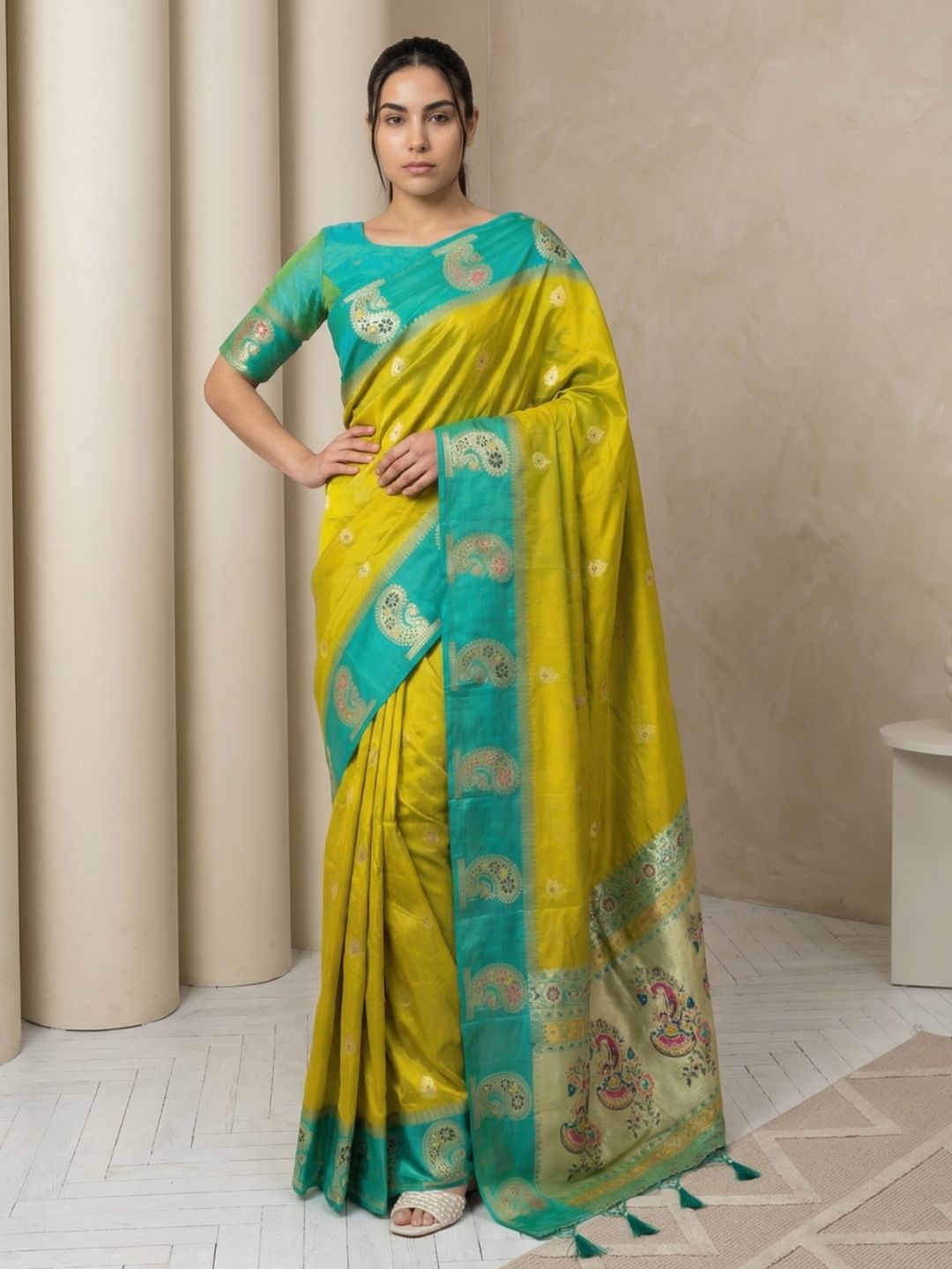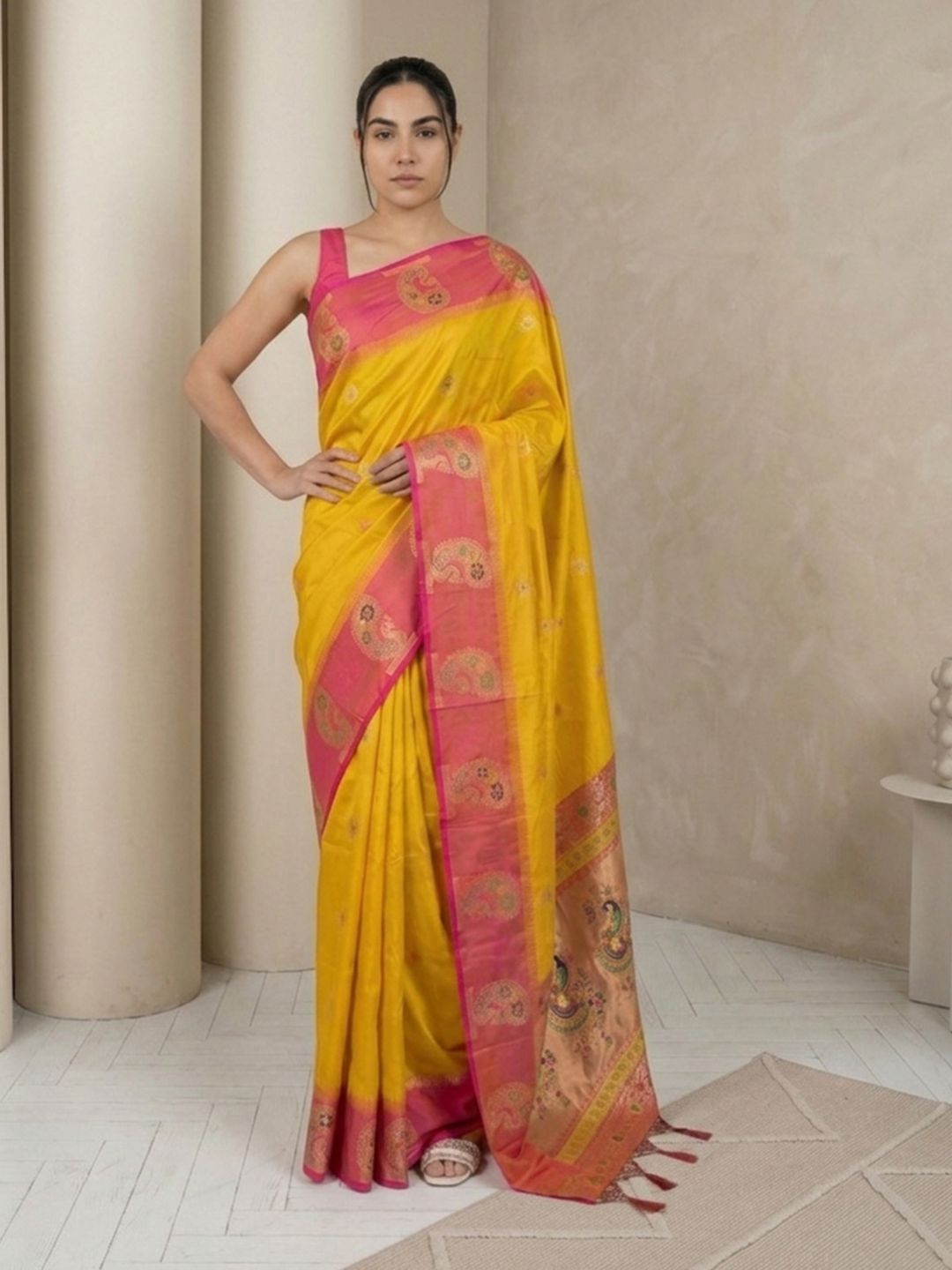 Yellow Organza Paithani Zari Woven Saree
