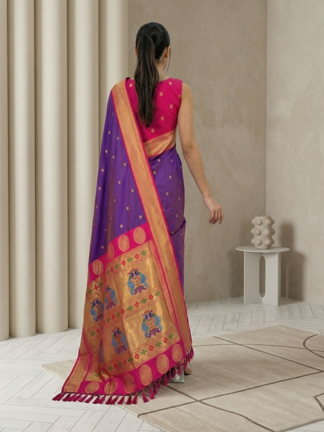 Violet Zari Woven Vitthala God Special Traditional Paithani Silk Saree