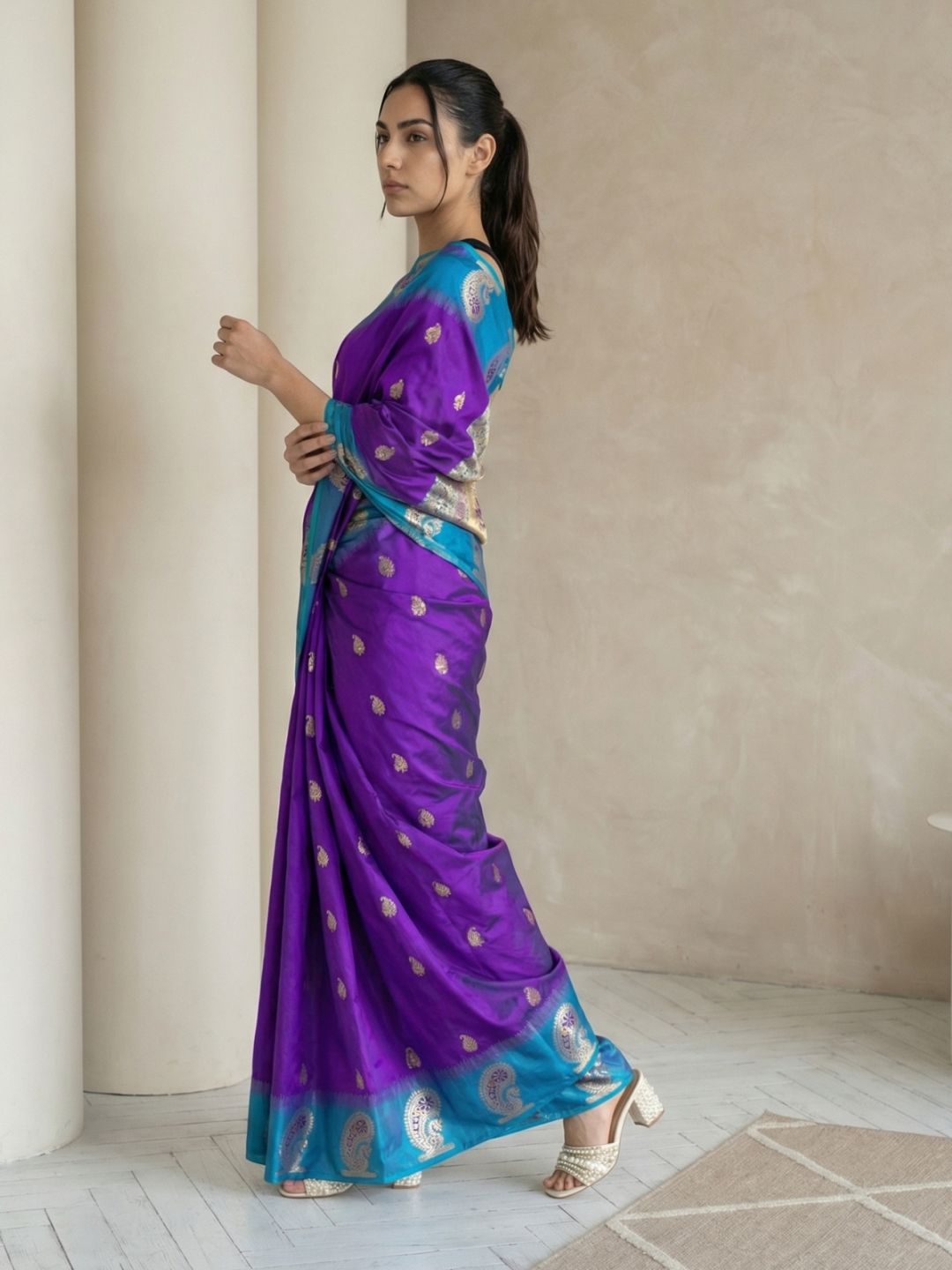 Violet Soft Silk Banarasi Peacock Zari Woven Saree