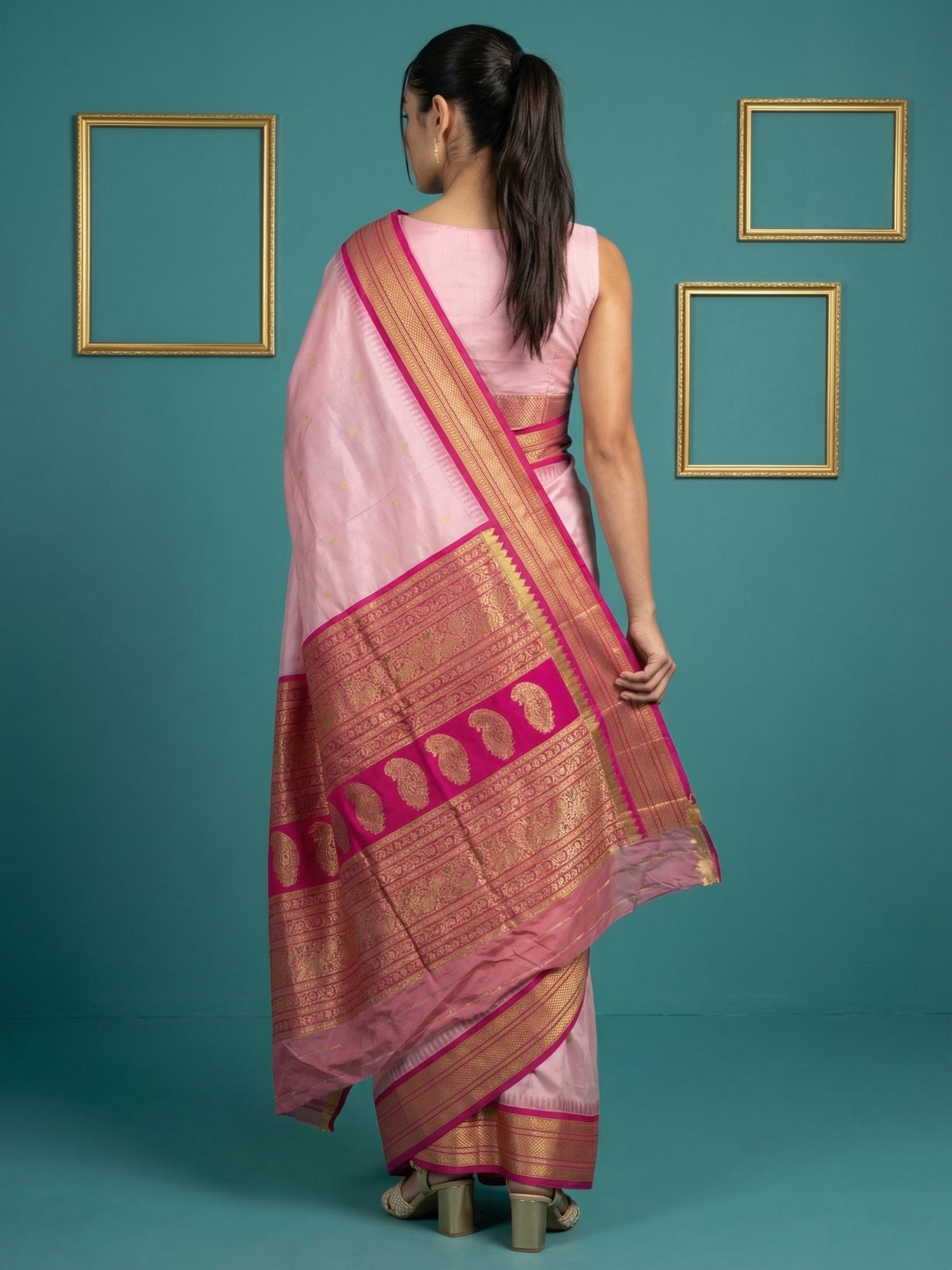 Baby Pink Zari Woven Peacock Paithani Silk Saree