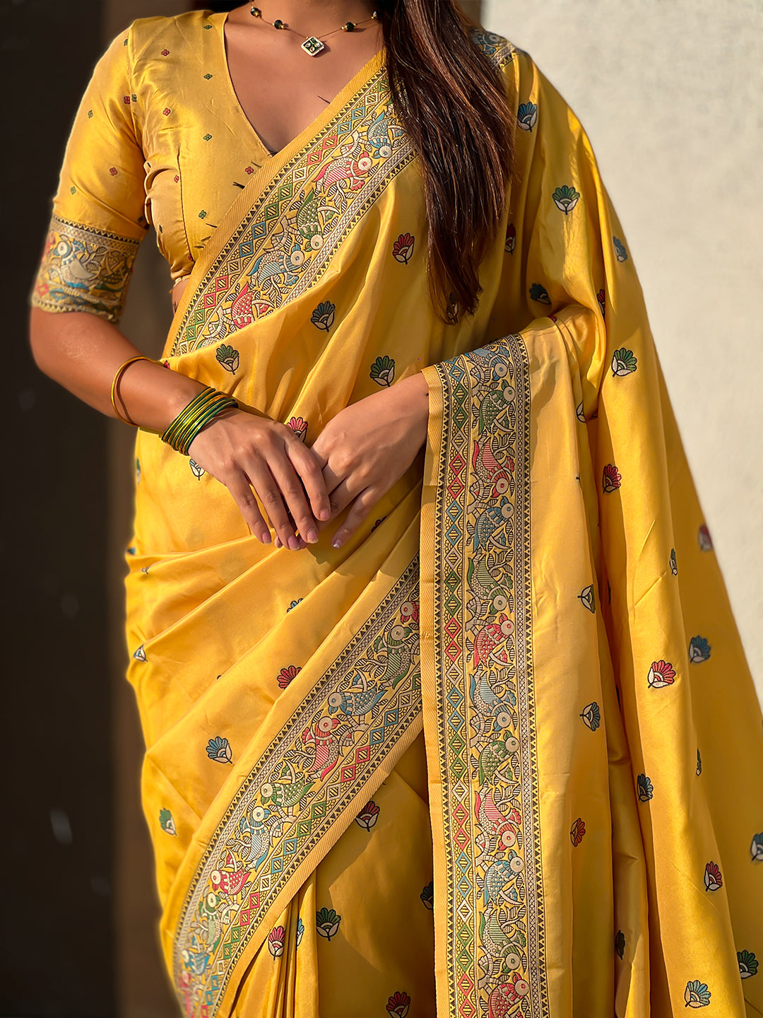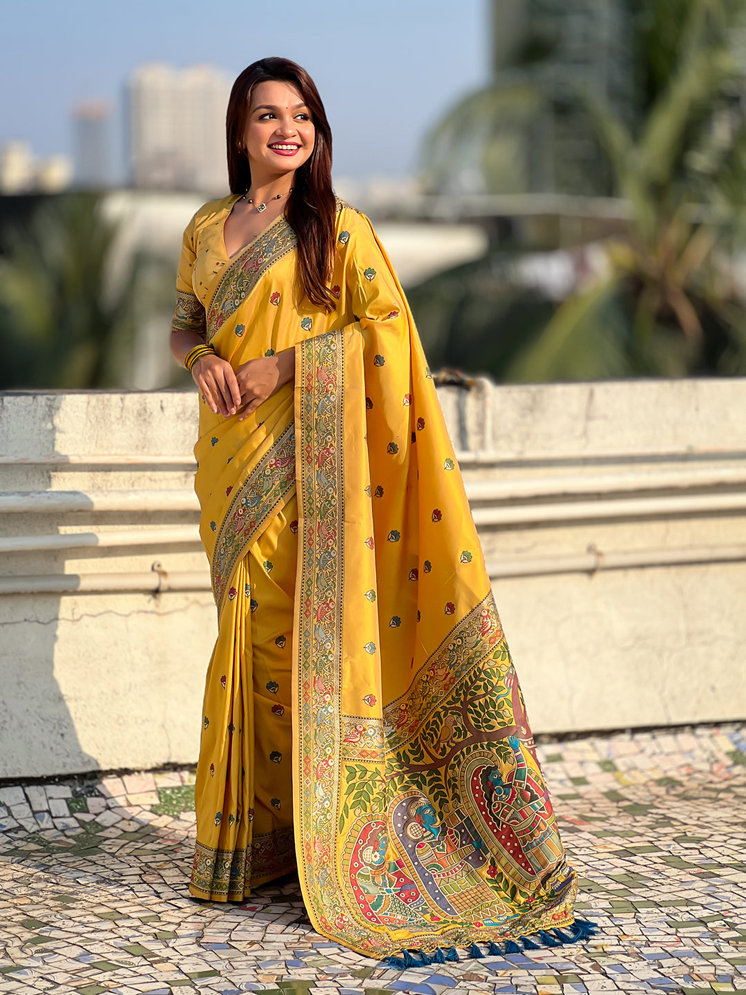 Dark Yellow Baluchari Silk Zari Woven Saree