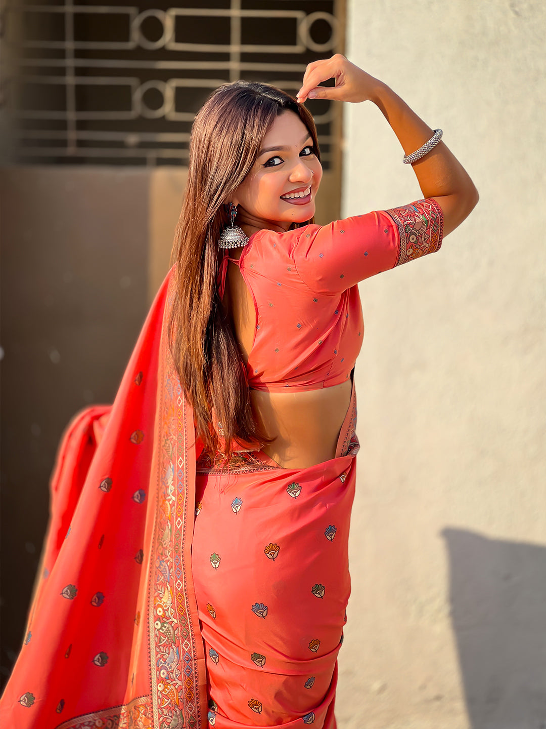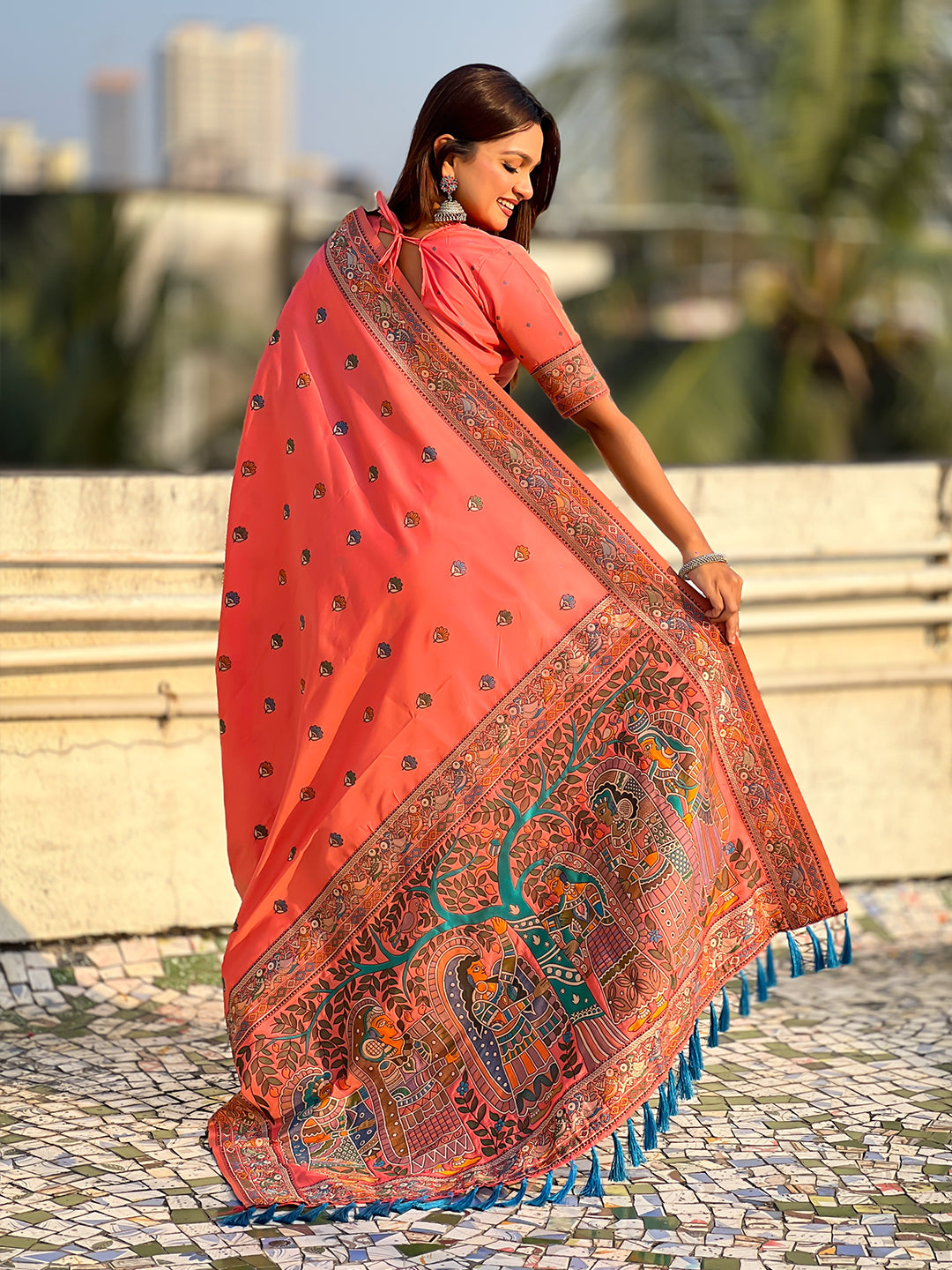 Peach Baluchari Silk Zari Woven Saree