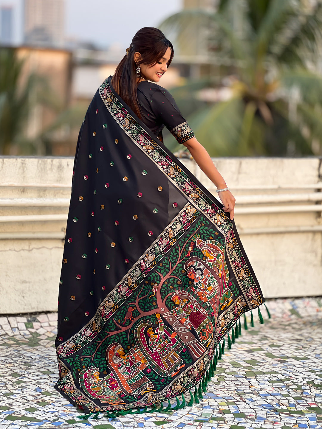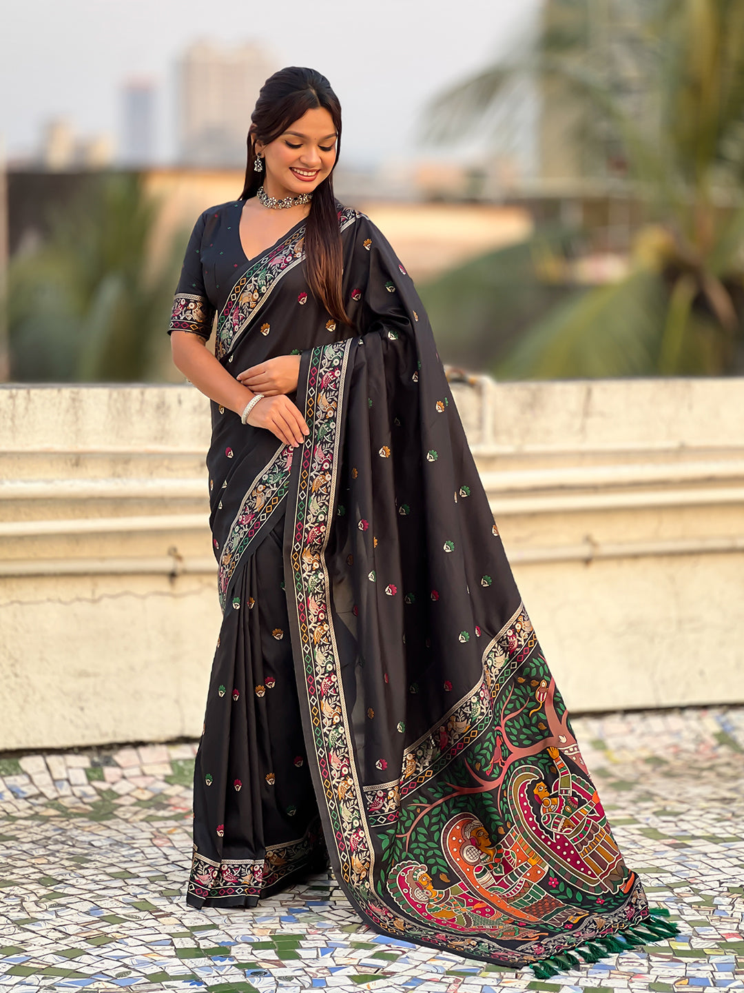 Black Baluchari Silk Zari Woven Saree