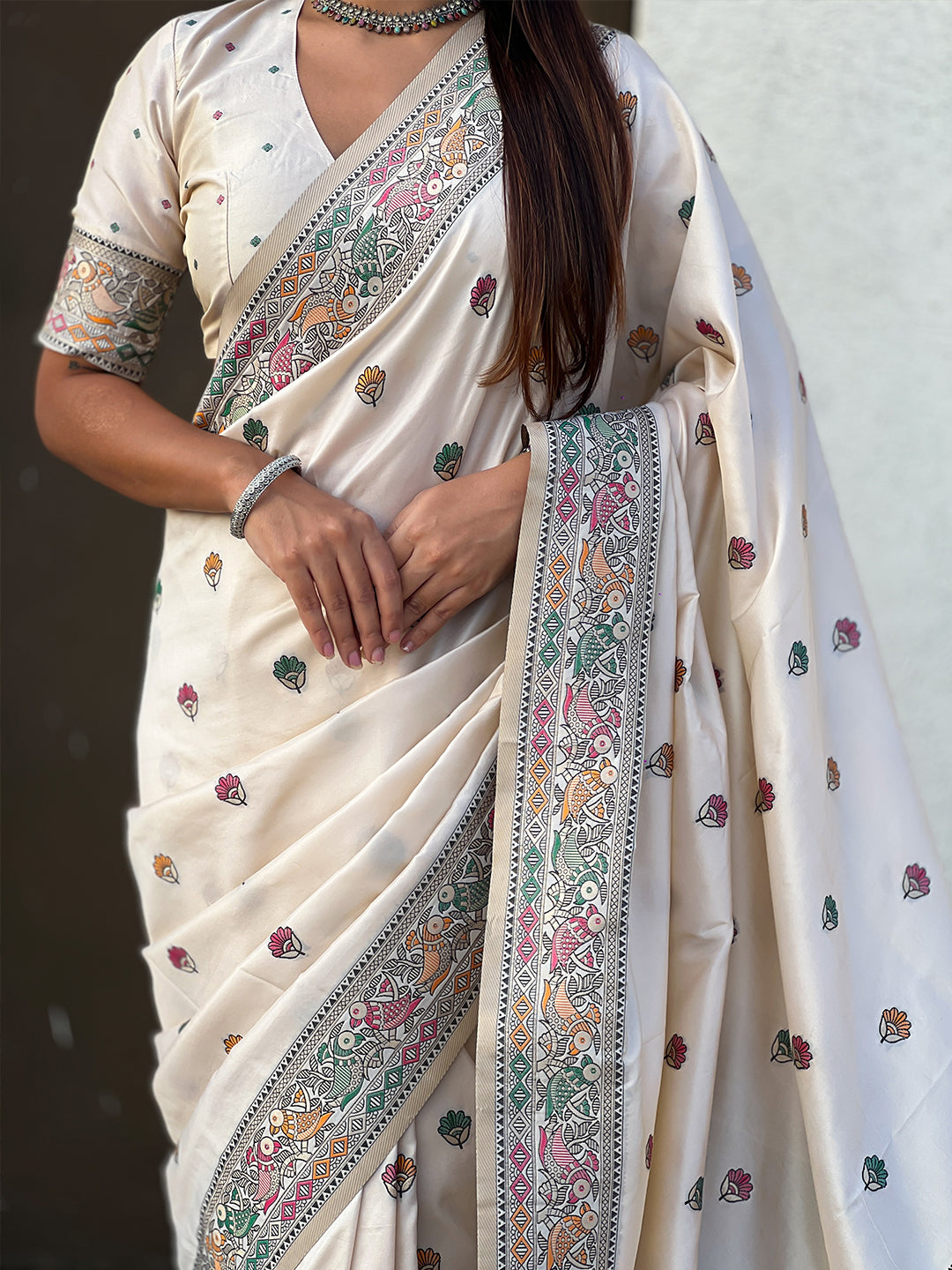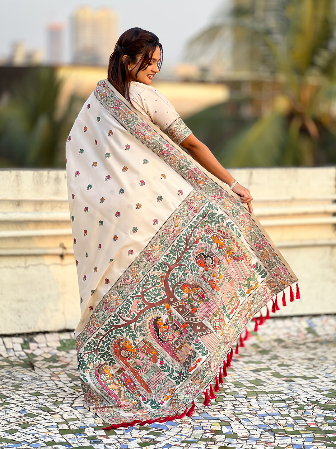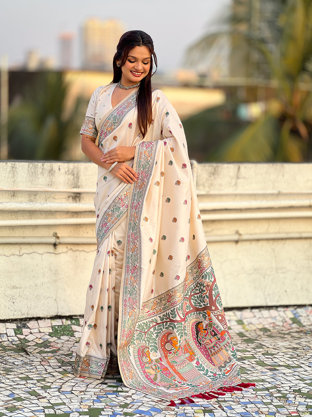 Cream Baluchari Silk Zari Woven Saree