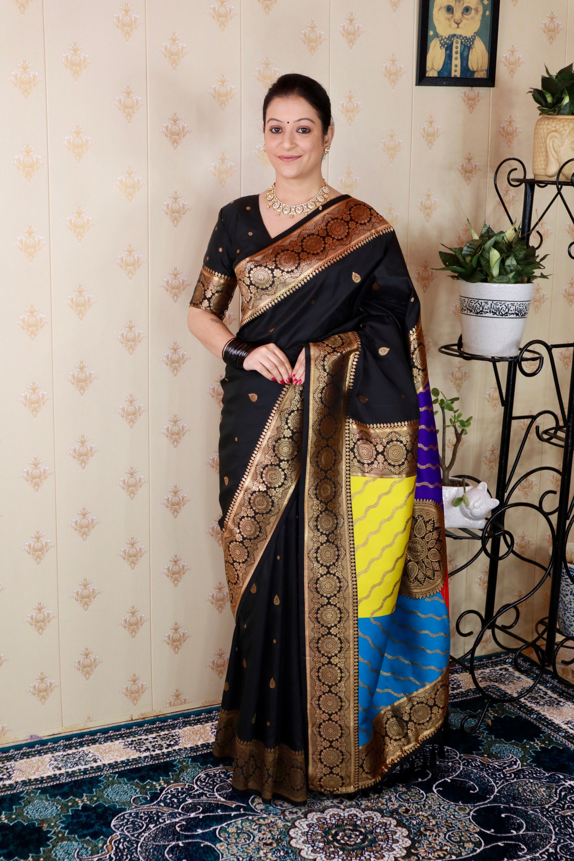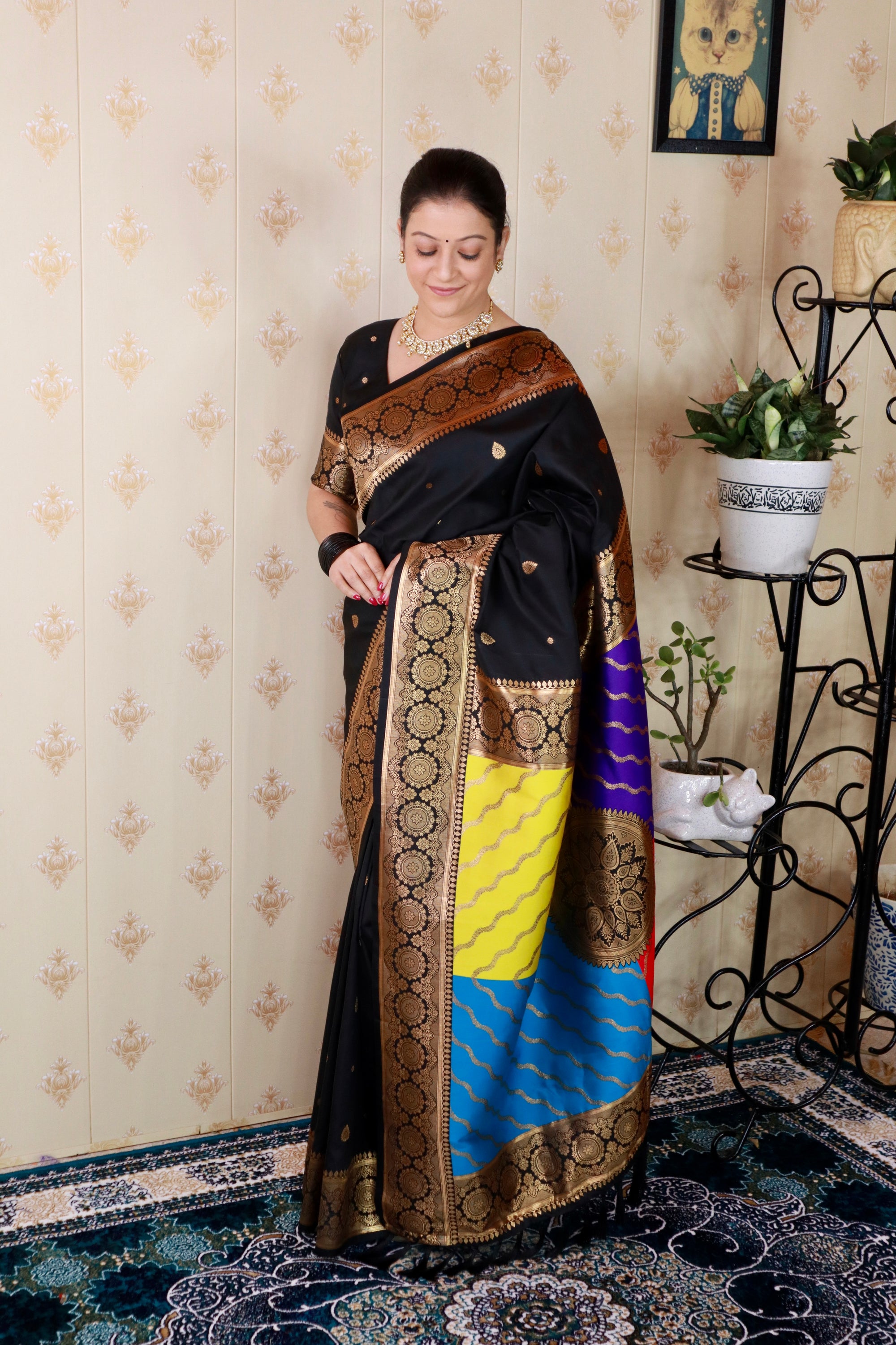 Black Soft Silk Banarasi Multicolor Pallu Zari Woven Saree