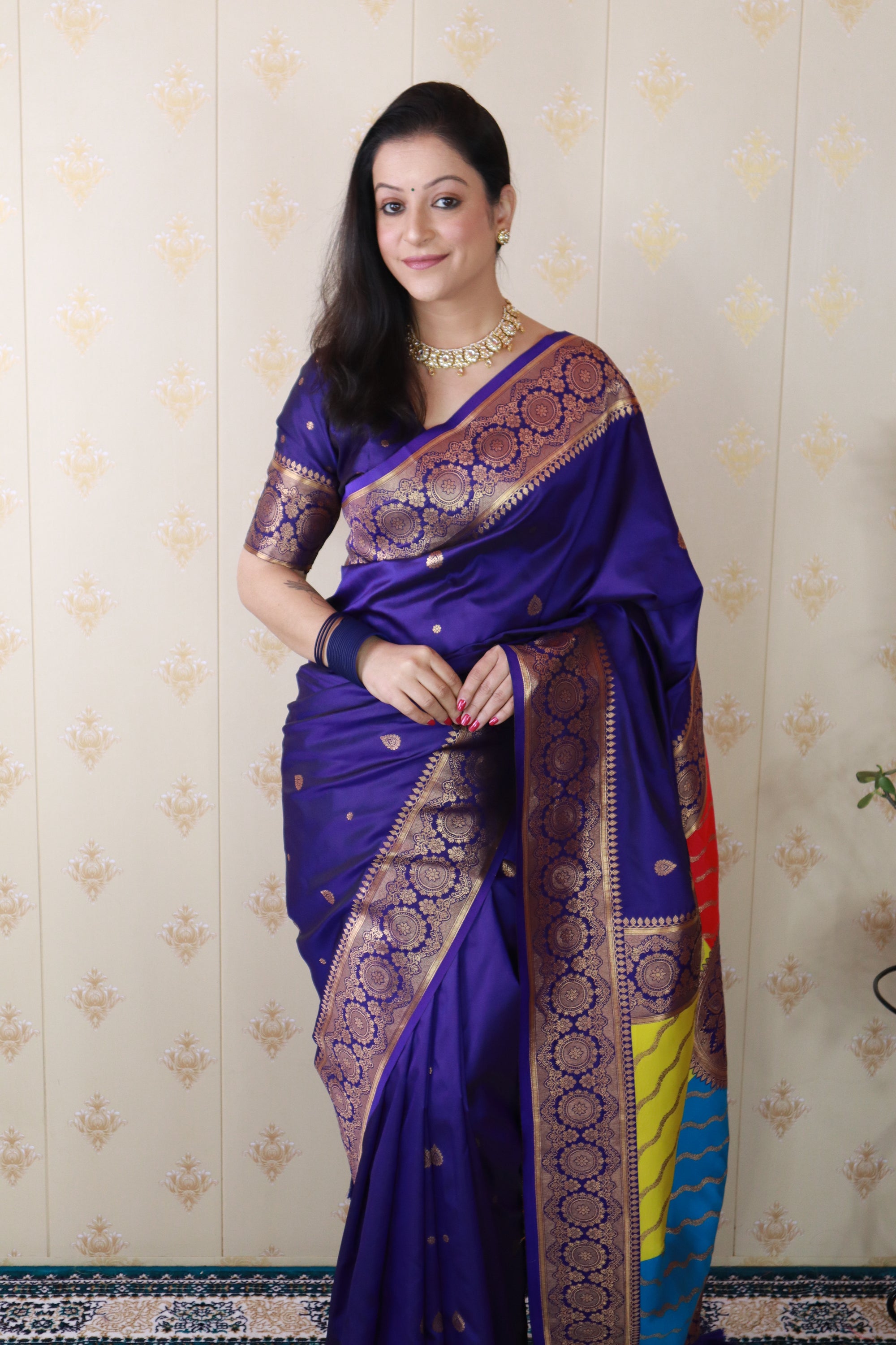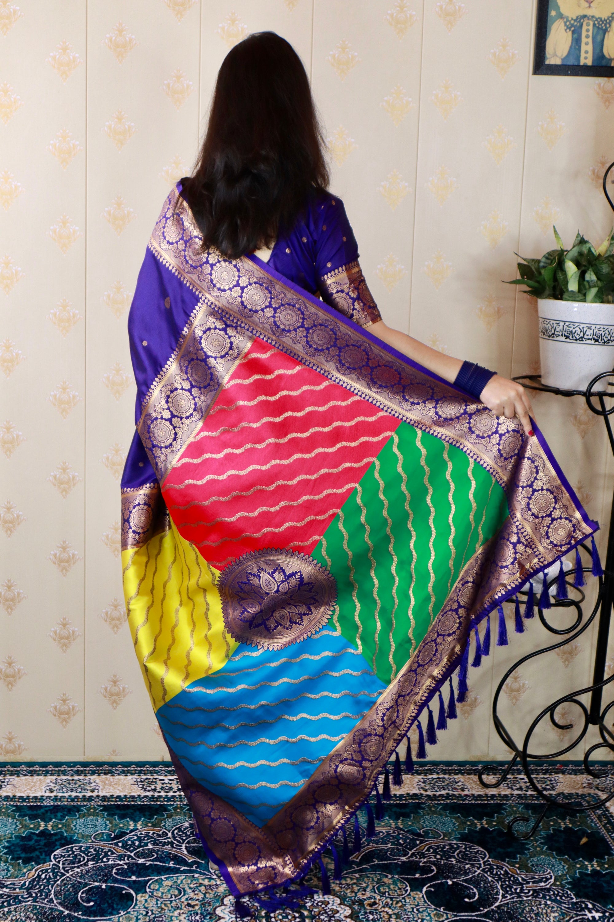 Violet Soft Silk Banarasi Multicolor Pallu Zari Woven Saree