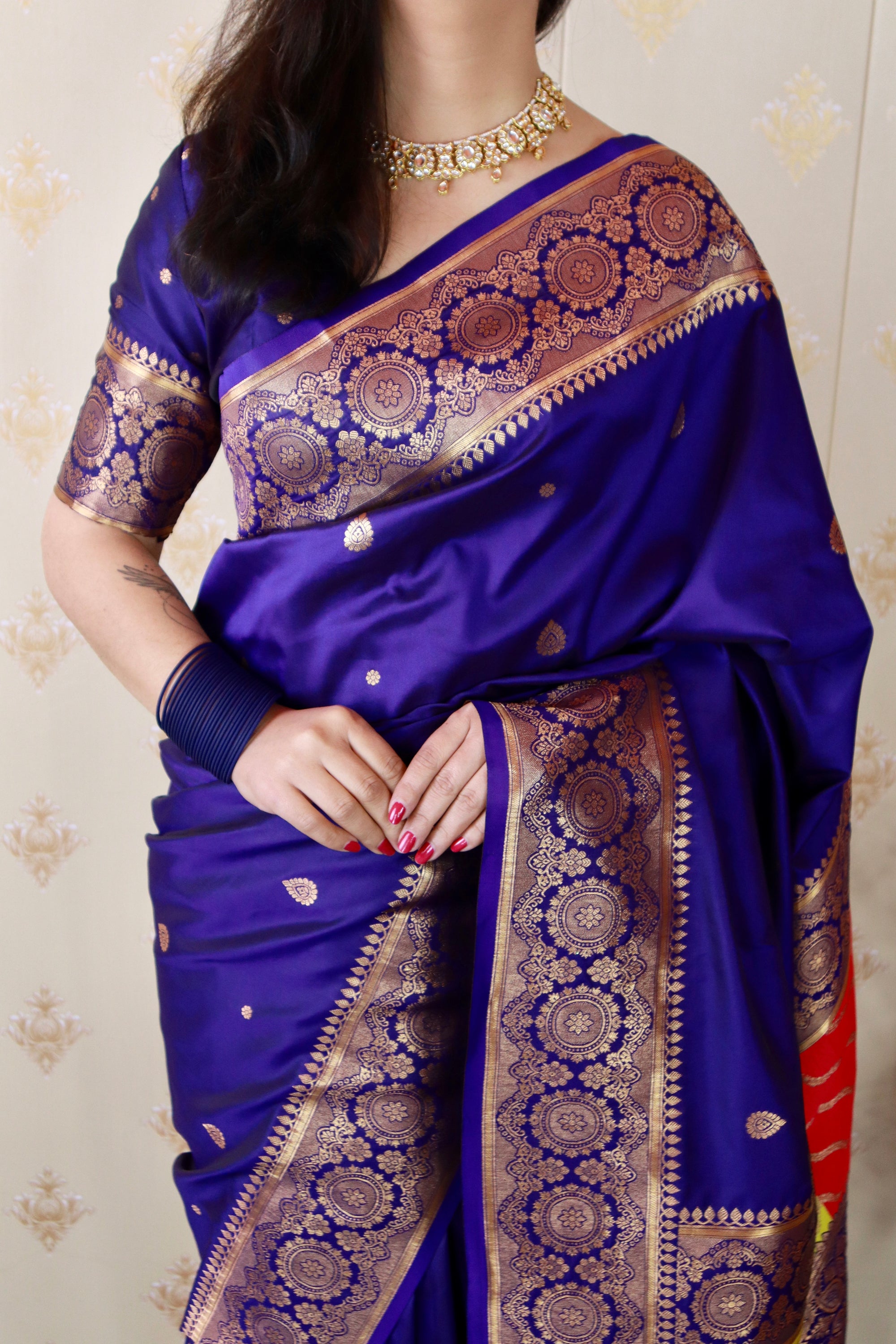 Denim Blue Chandrakor Paithani Silk Banarasi Zari Woven Saree