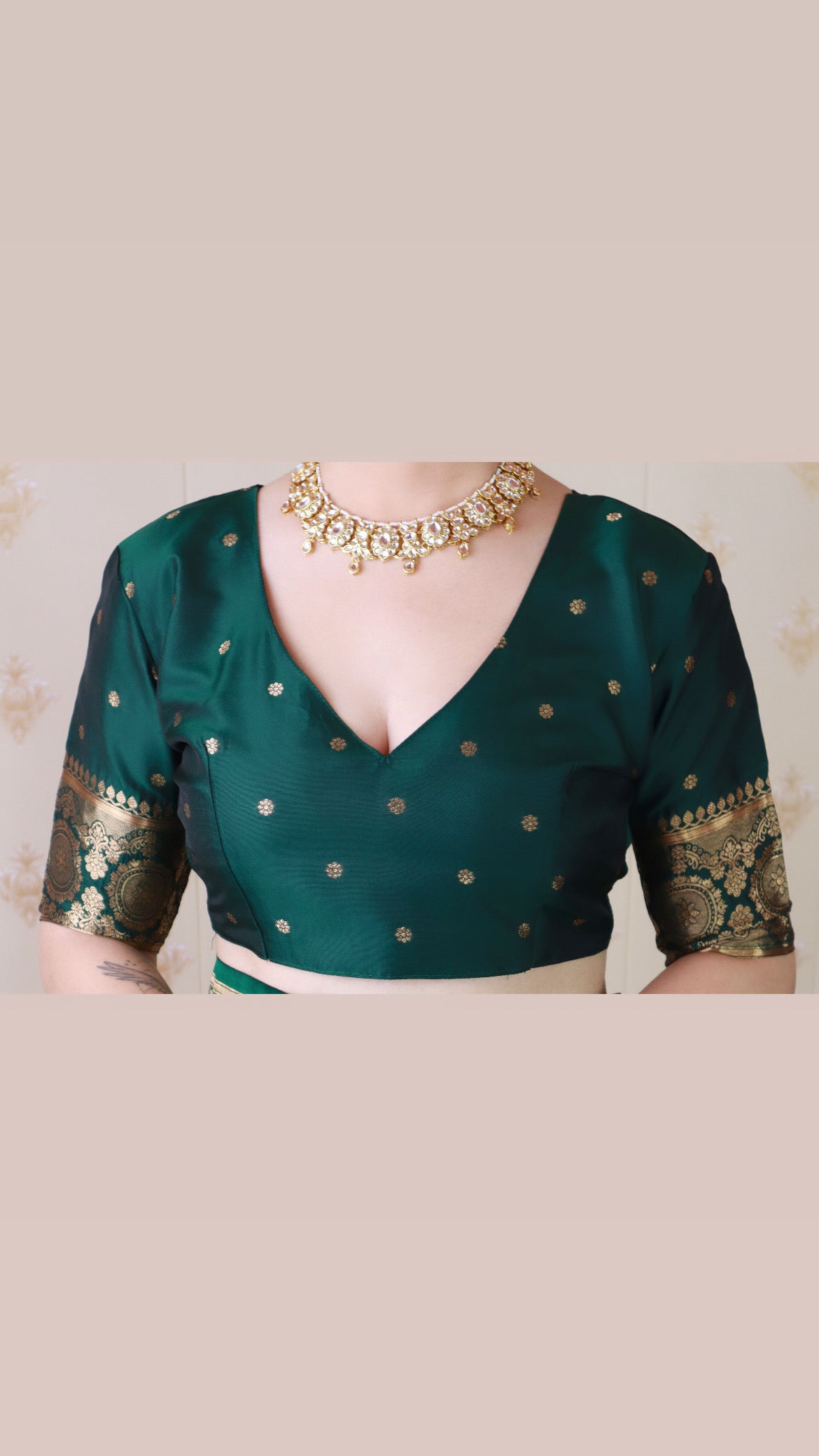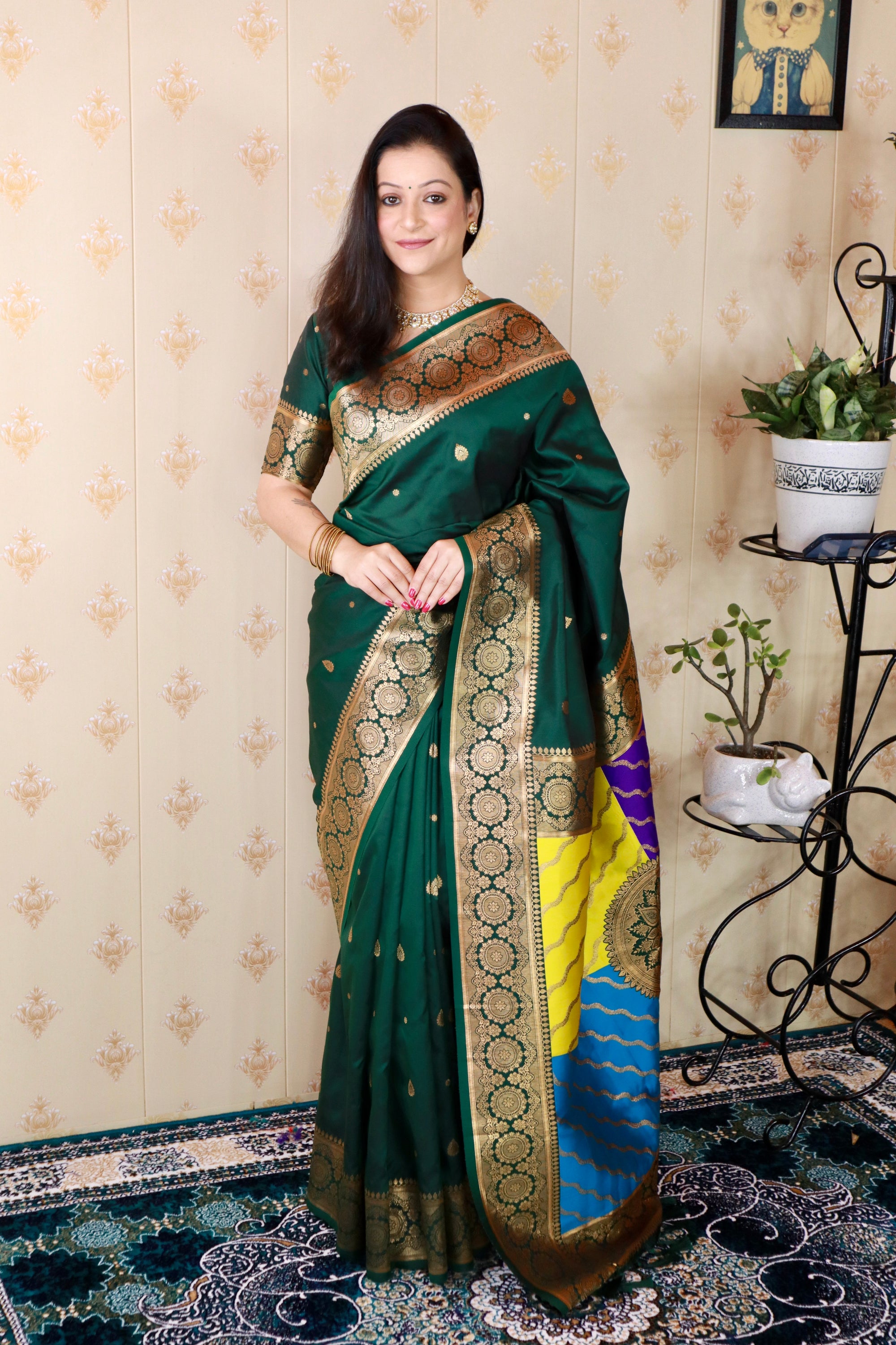 BottleGreen Chandrakor Paithani Silk Banarasi Zari Woven Saree