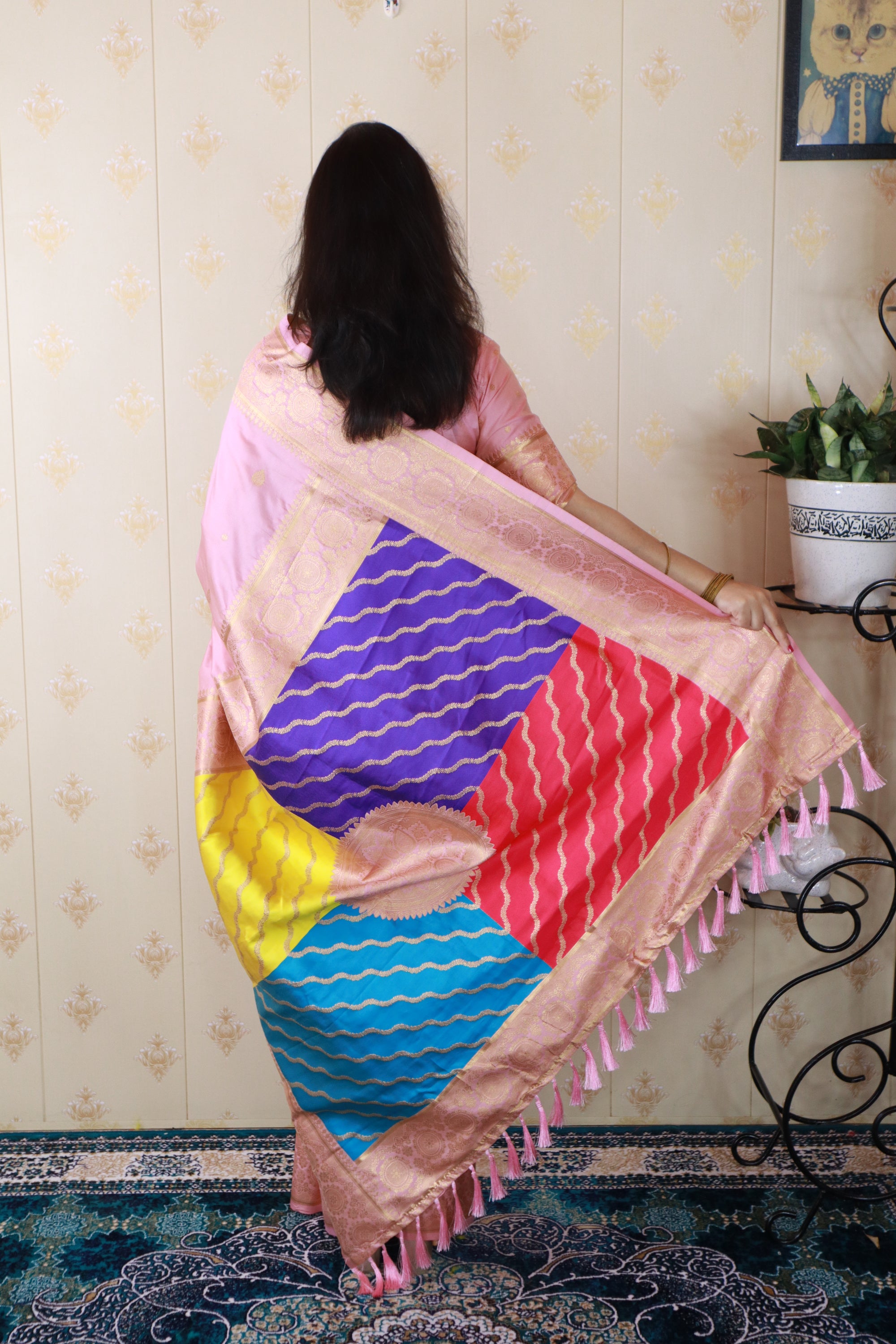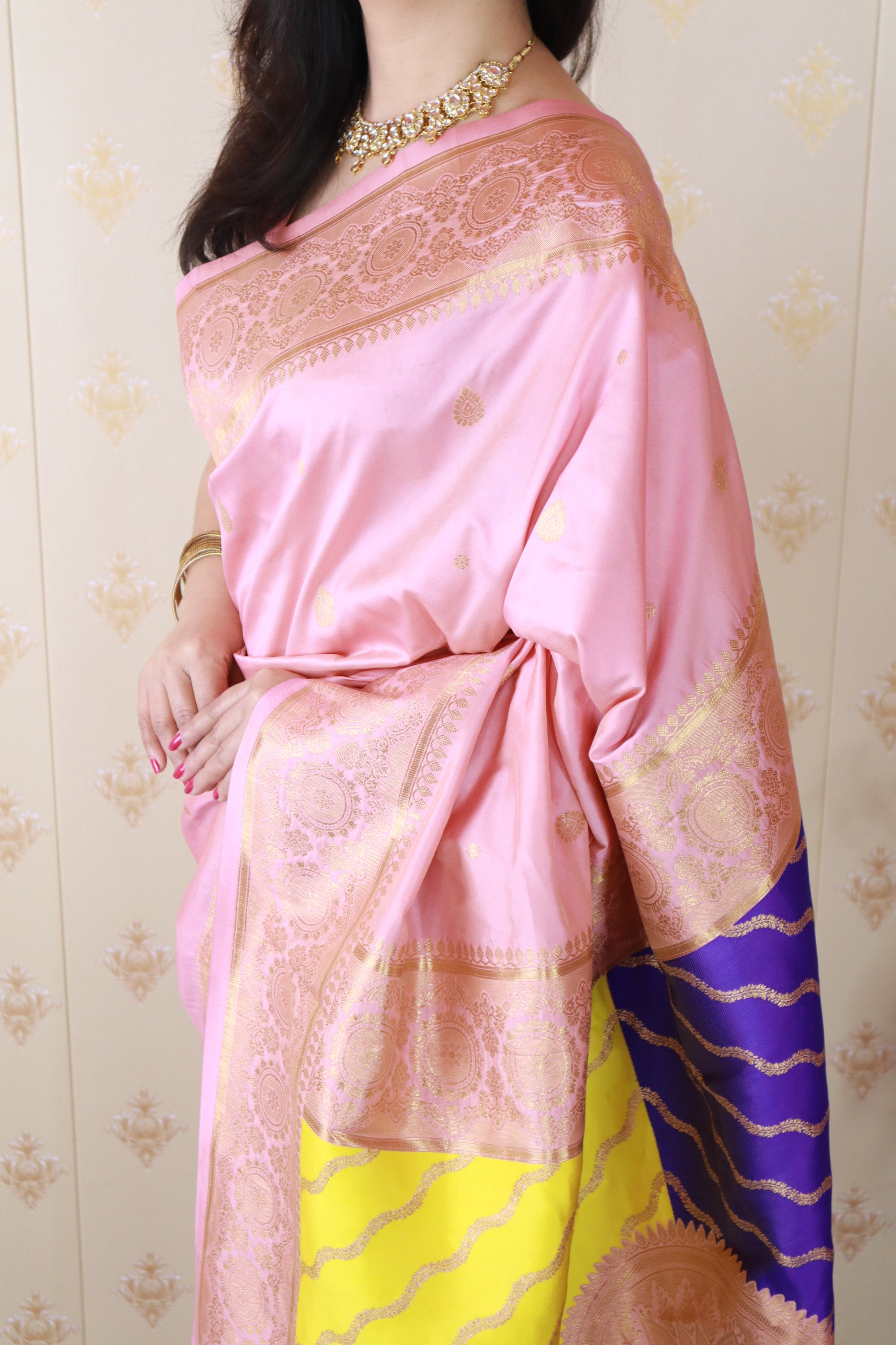 Pink Soft Silk Banarasi Multicolor Pallu Zari Woven Saree