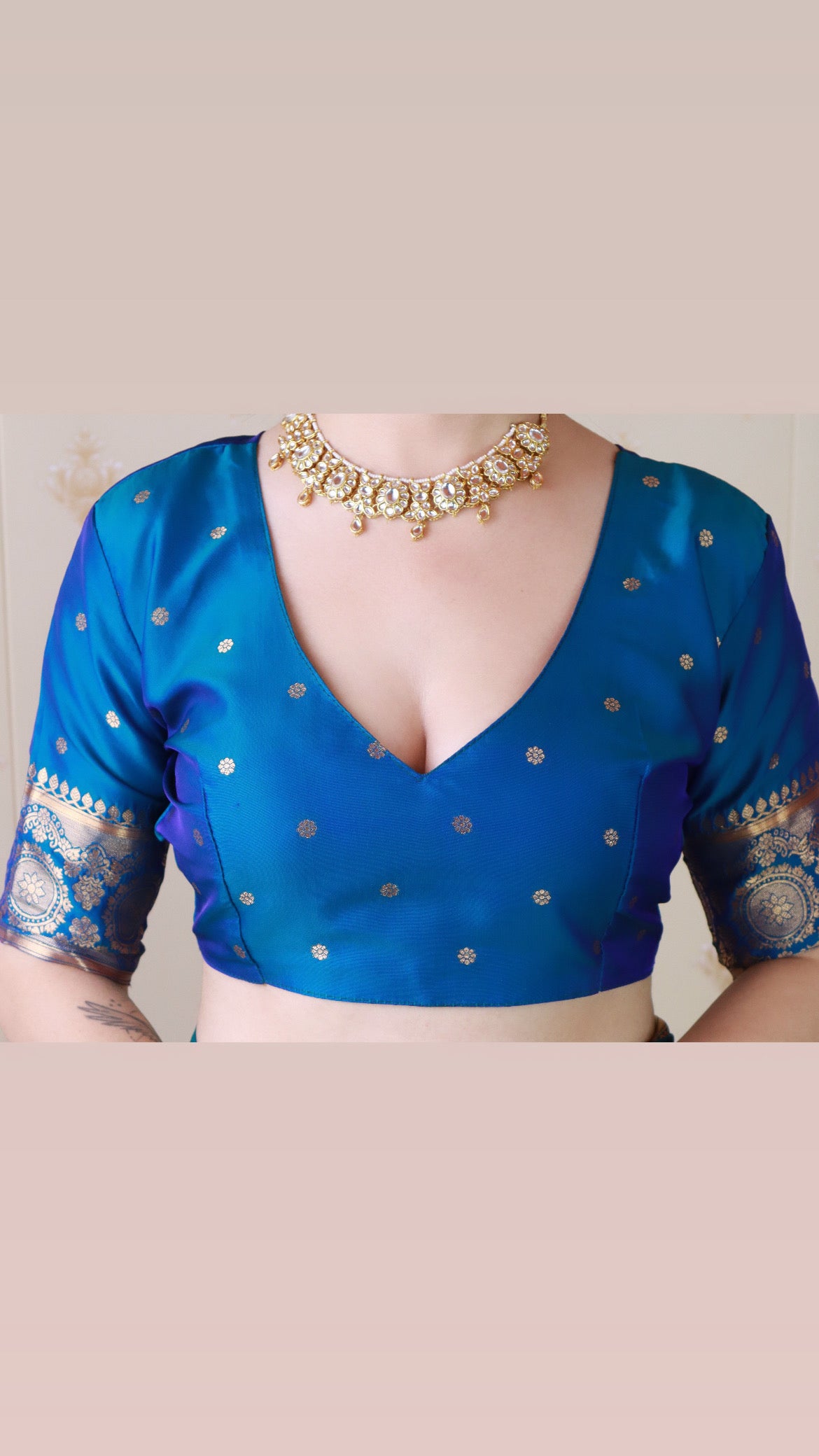 Rama Blue Chandrakor Paithani Silk Banarasi Zari Woven Saree