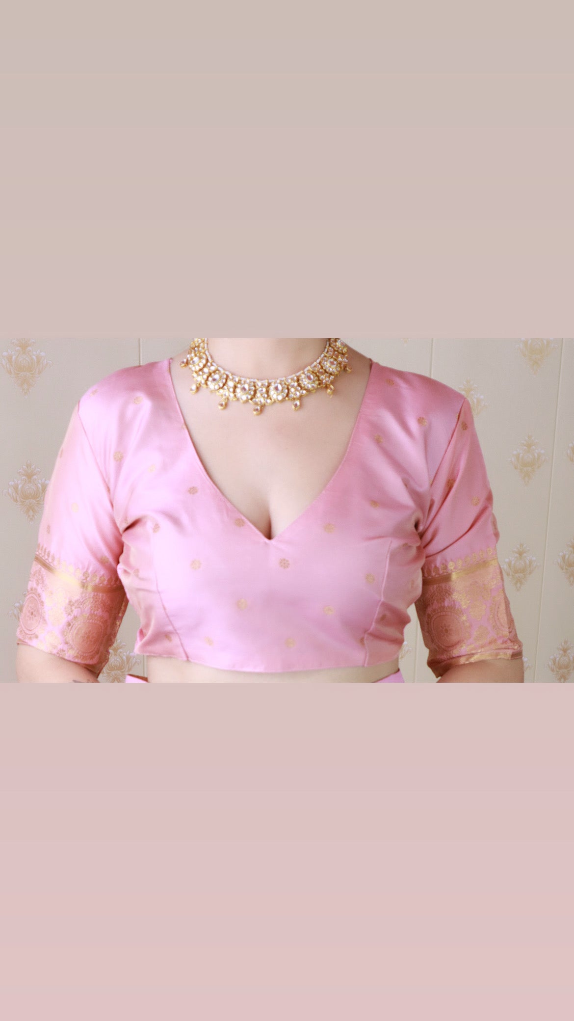 Baby Pink Soft Silk Banarasi Wavy Unique Zari Woven Saree