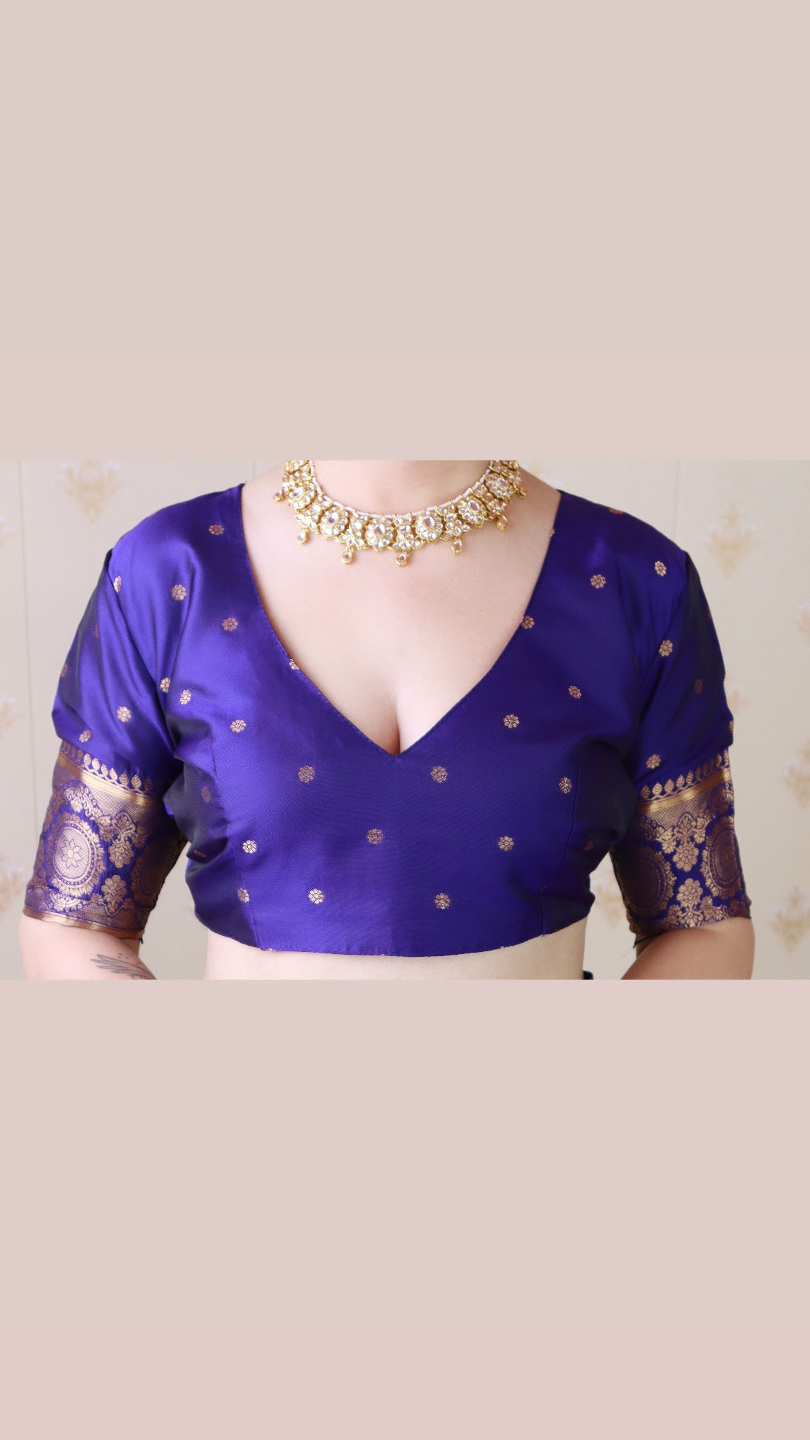 Violet Banarasi Contrast Jaal Soft Silk Zari Woven Saree