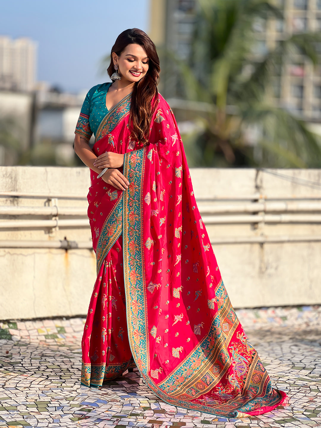 Pink Pure Viscose Silk Position Printed Traditional Saree