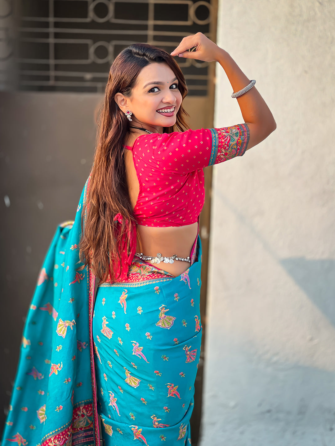 Rama Blue Pure Viscose Silk Position Printed Traditional Saree