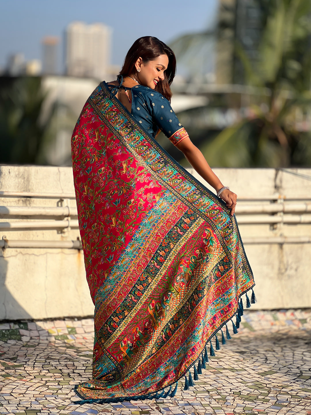 Pink Pure Viscose Silk Position Printed Darbari Saree