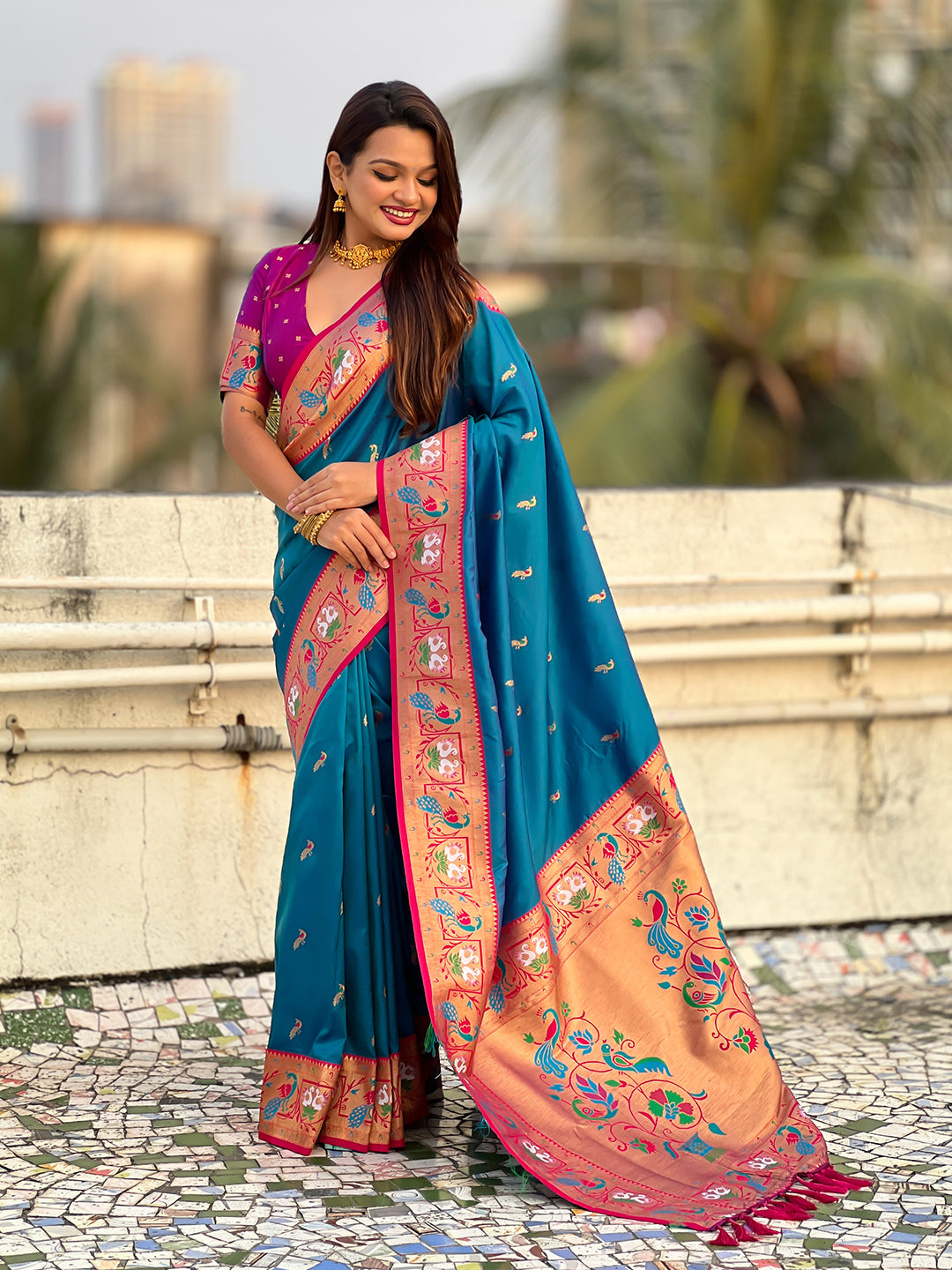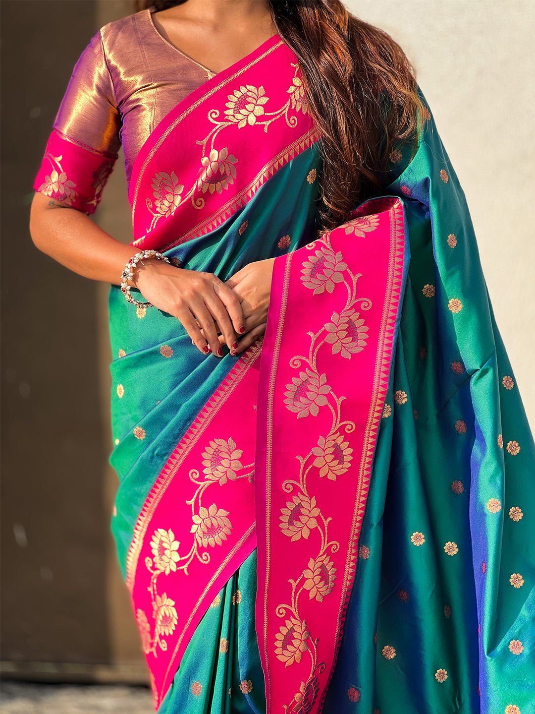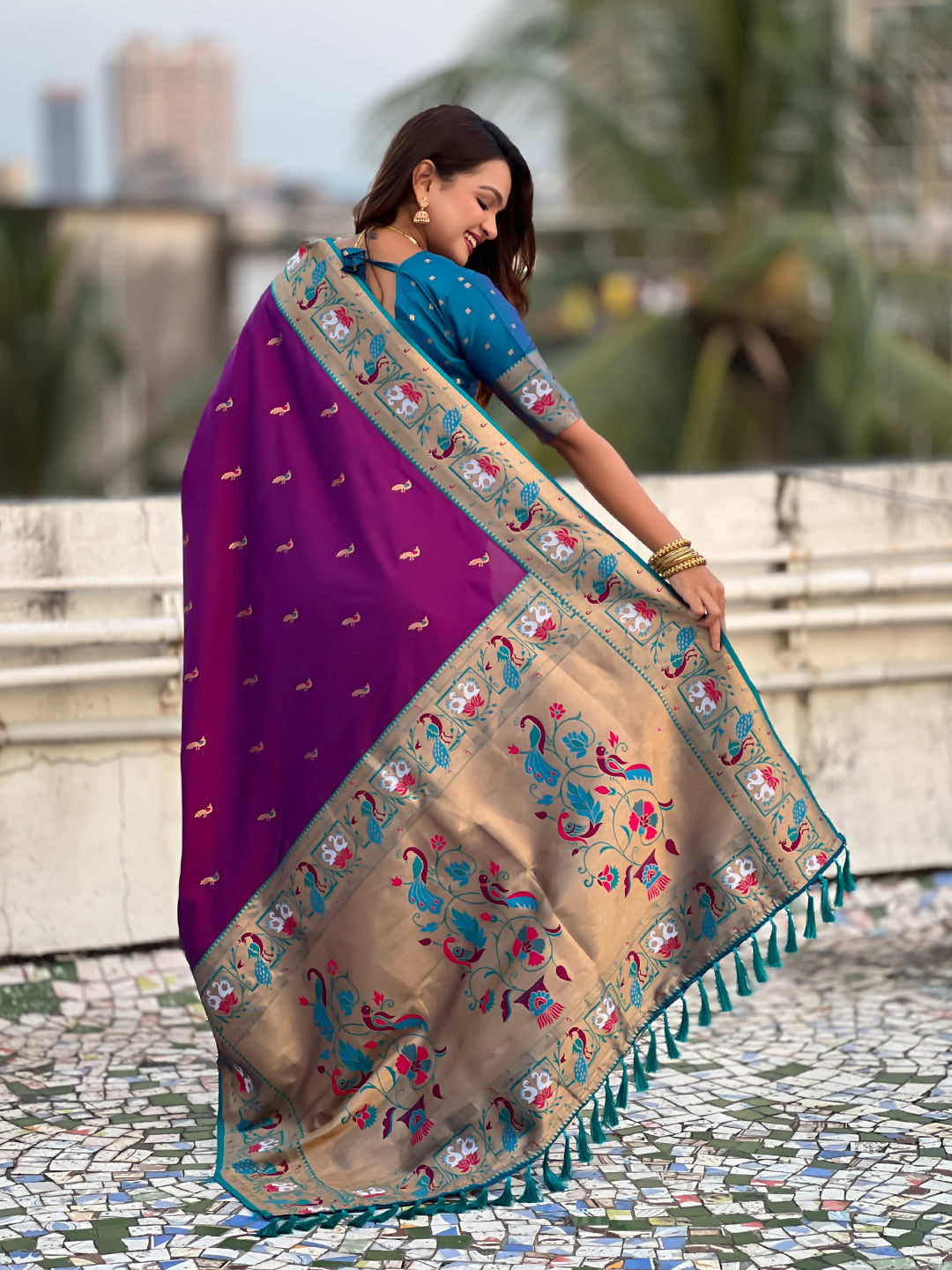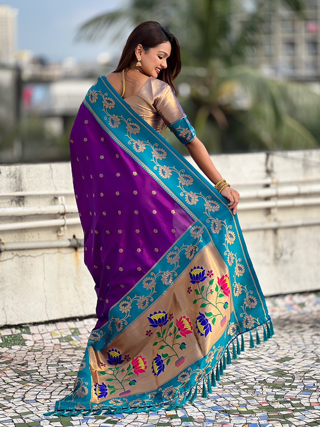 Purple with Rama Soft Silk Lotus Paithani Saree