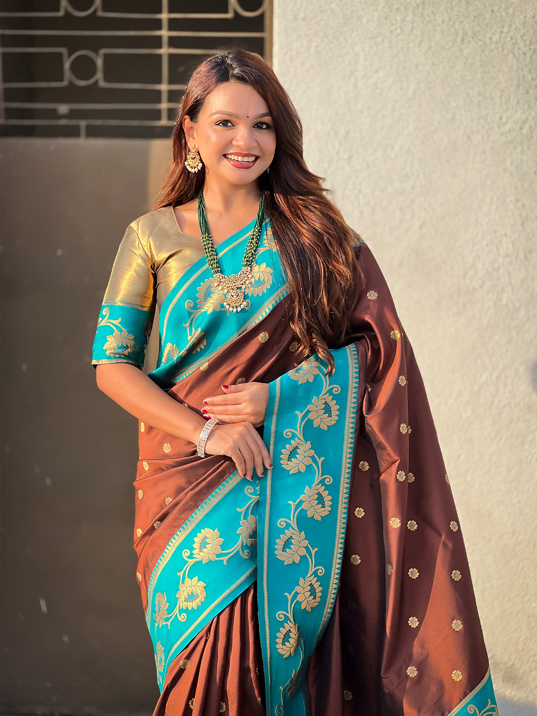 Coffee Brown Soft Silk Lotus Paithani Saree