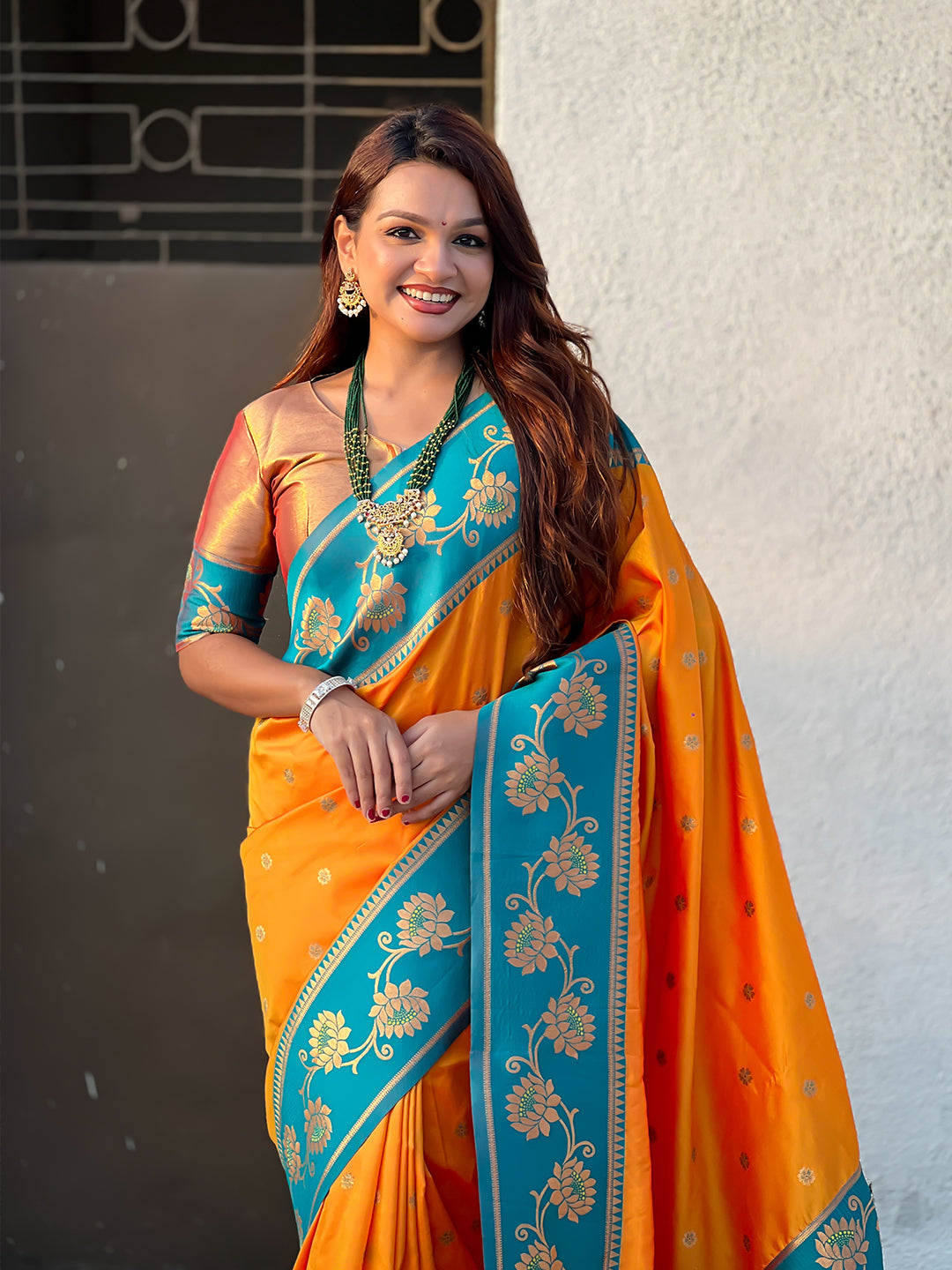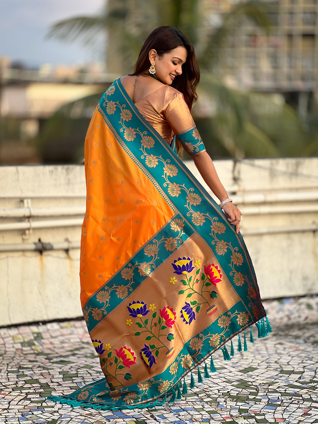 Orange Soft Silk Lotus Paithani Saree