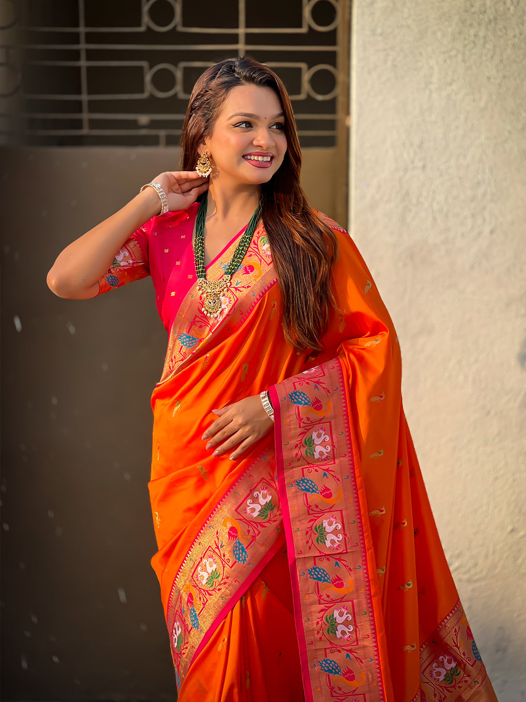 Orange Soft Silk Swan Rajhans Paithani Saree