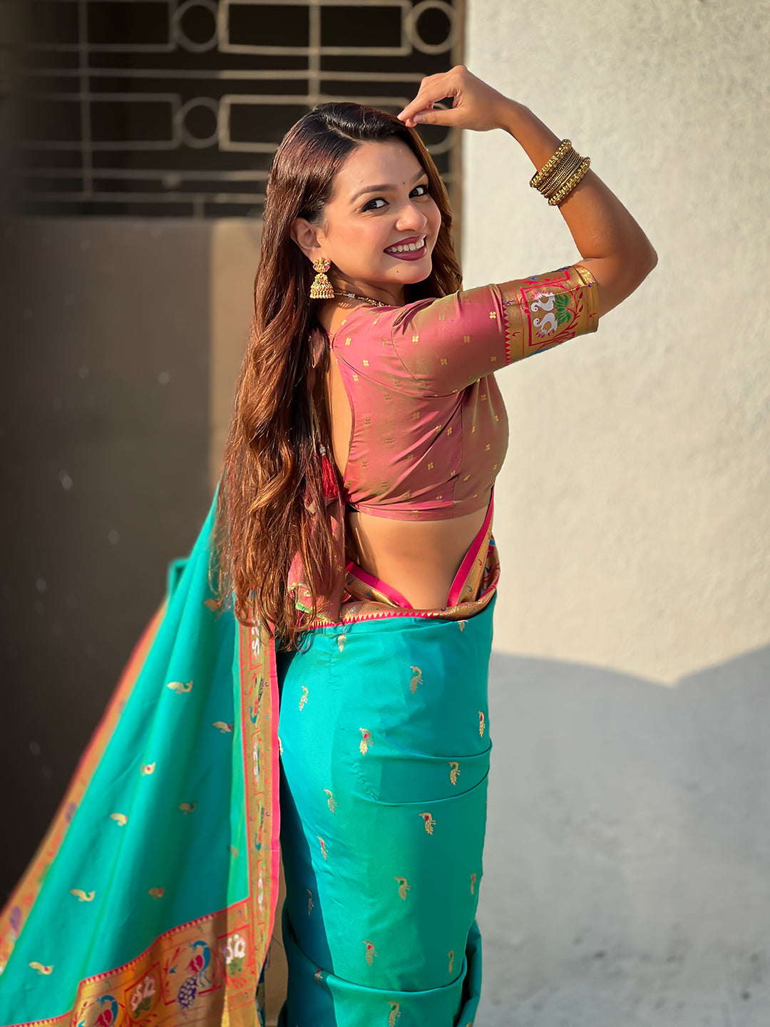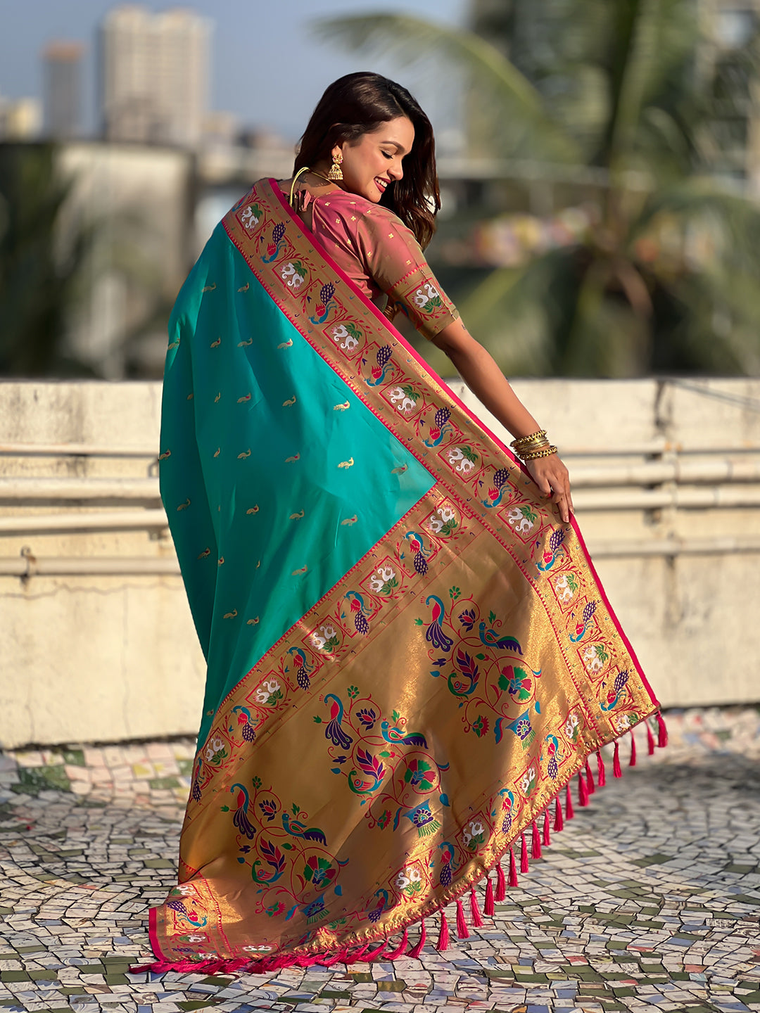 Aqua Blue Soft Silk Swan Rajhans Paithani Saree