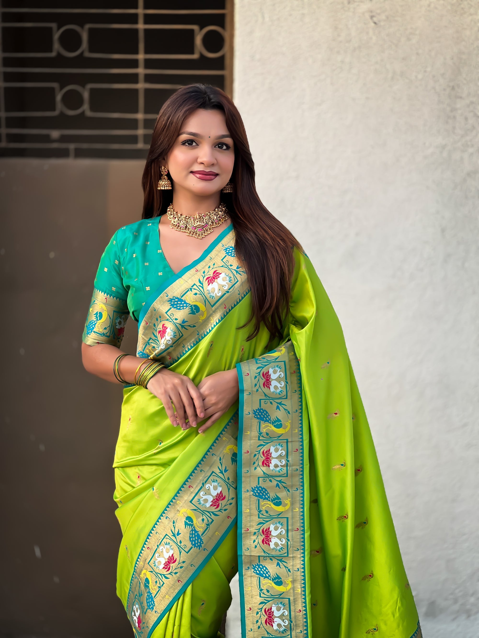 Parrot Green Soft Silk Swan Rajhans Paithani Saree