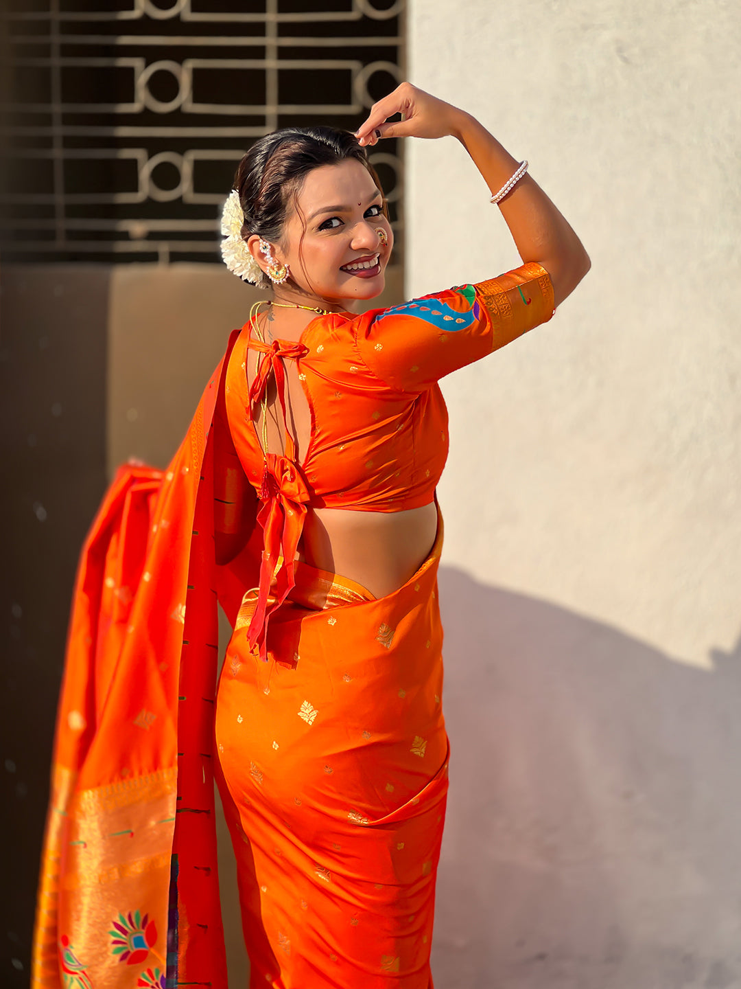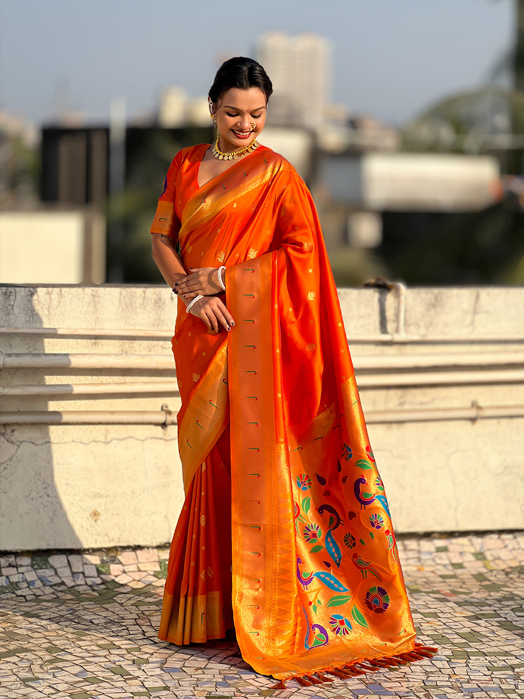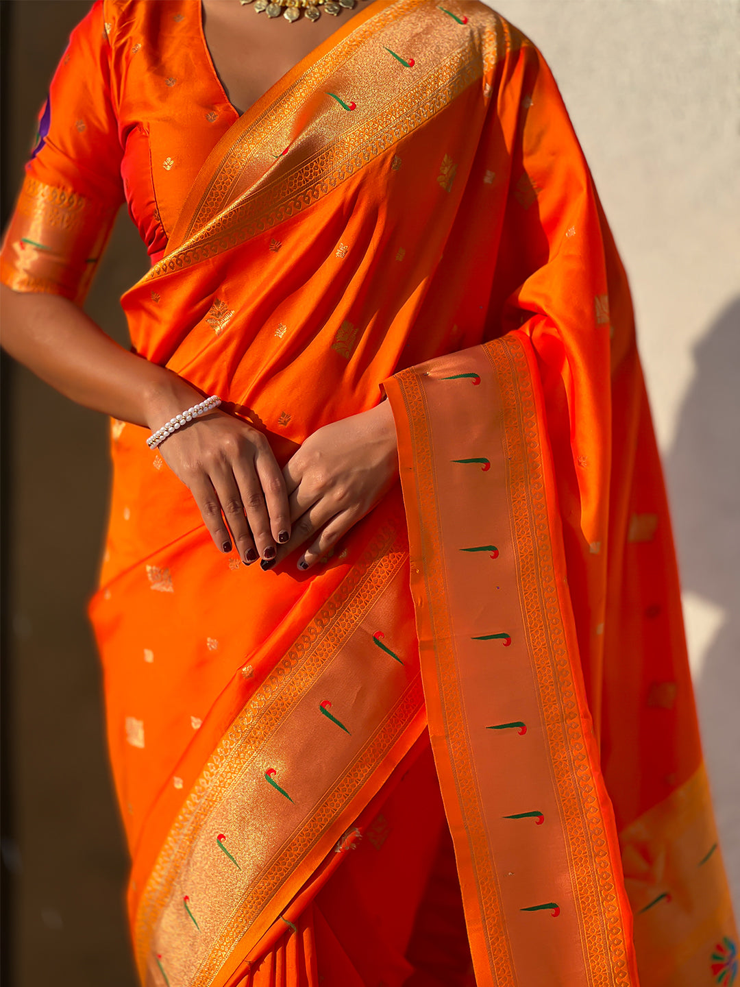 Orange Peacock Paithani Zari Woven Saree