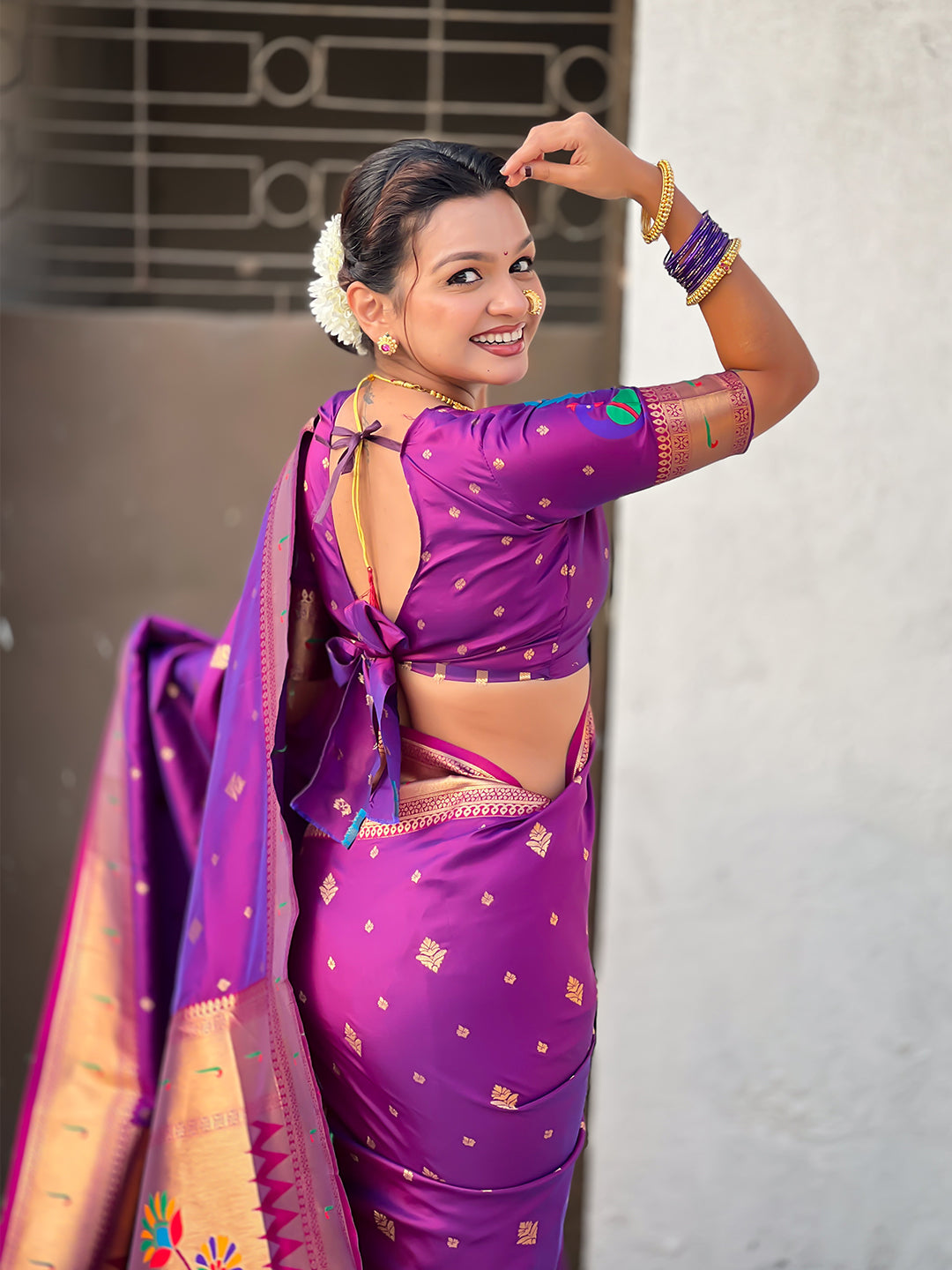 Purple Peacock Paithani Zari Woven Saree