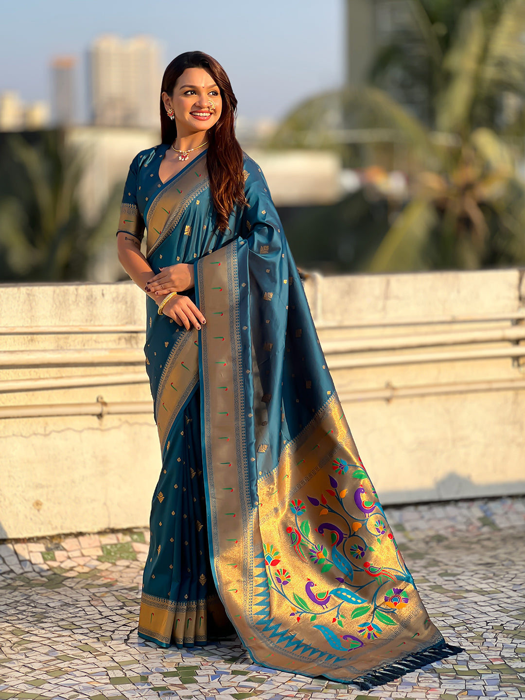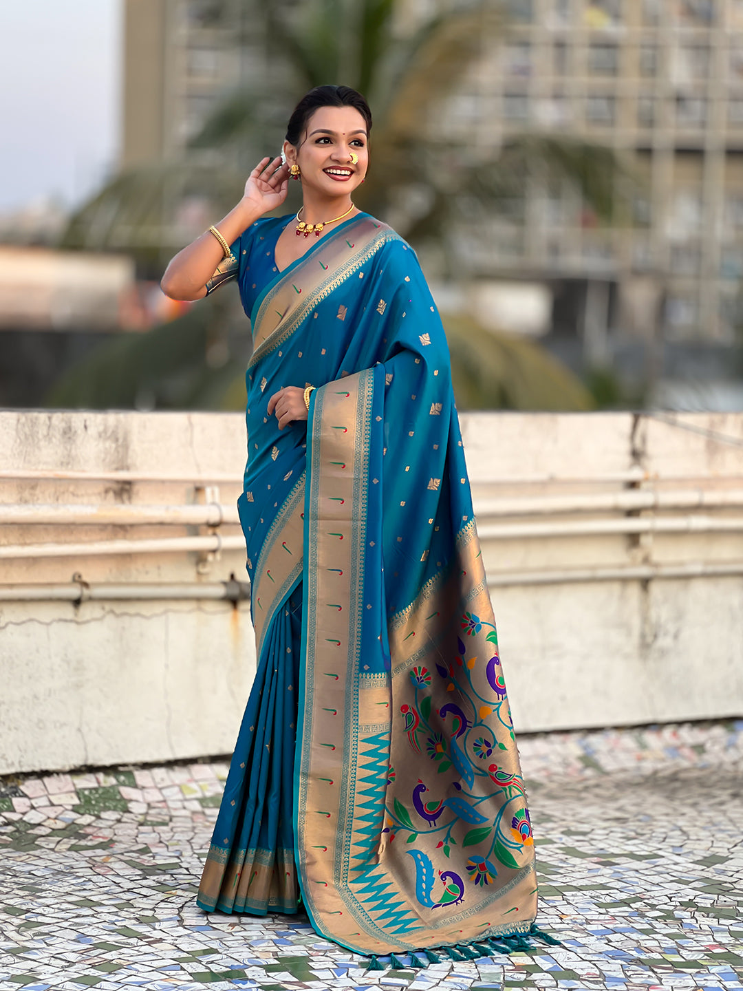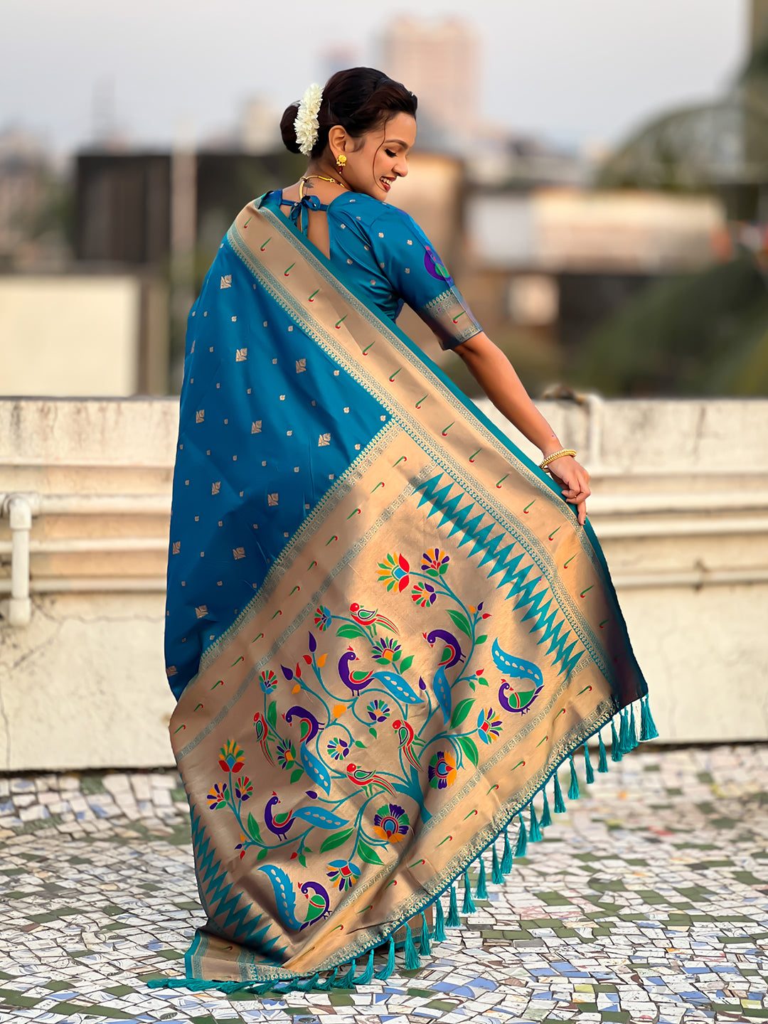 Blue Peacock Paithani Zari Woven Saree