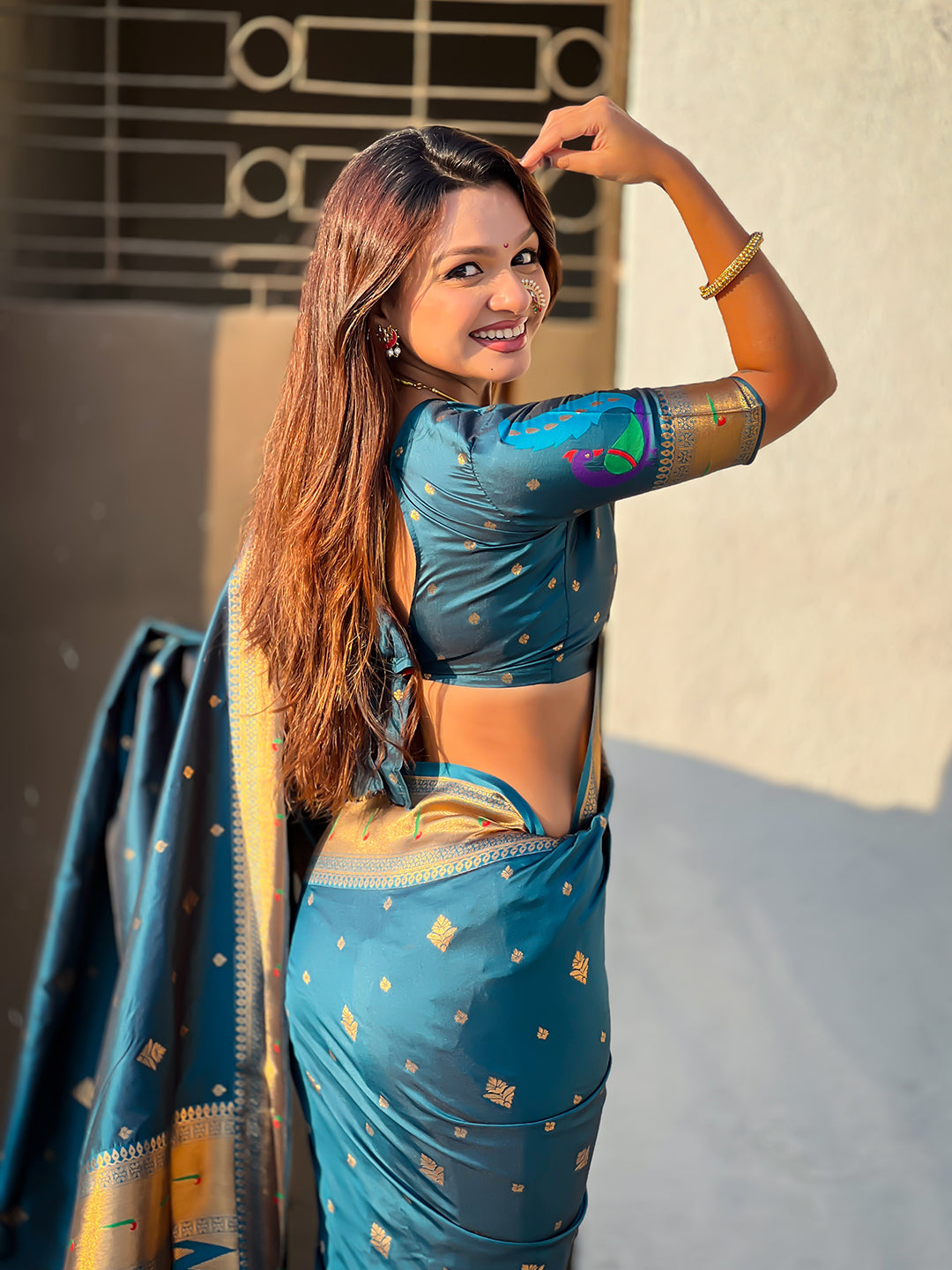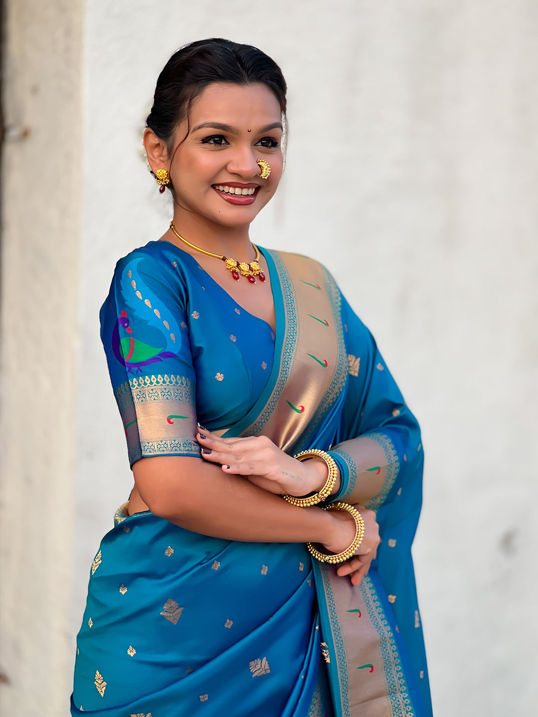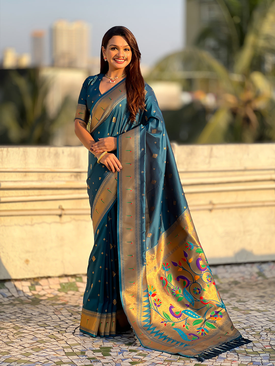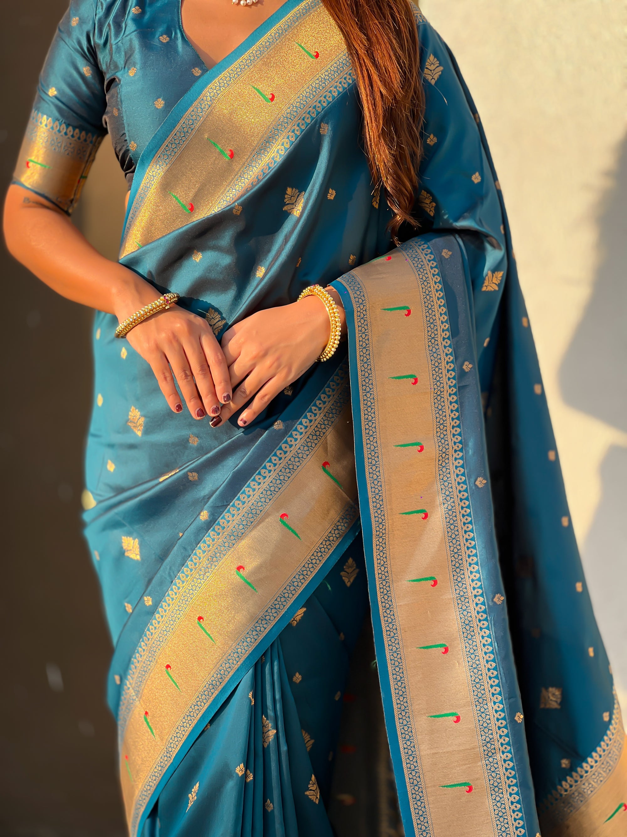 Blue Peacock Paithani Zari Woven Saree