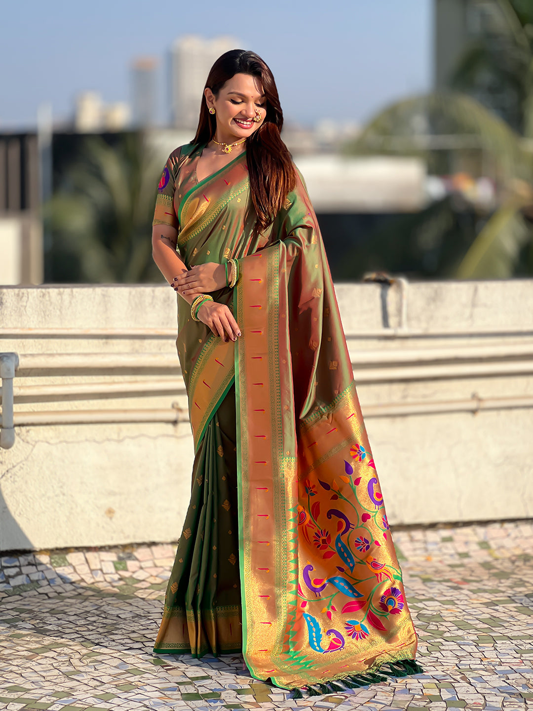 Mehendi Green Peacock Paithani Zari Woven Saree