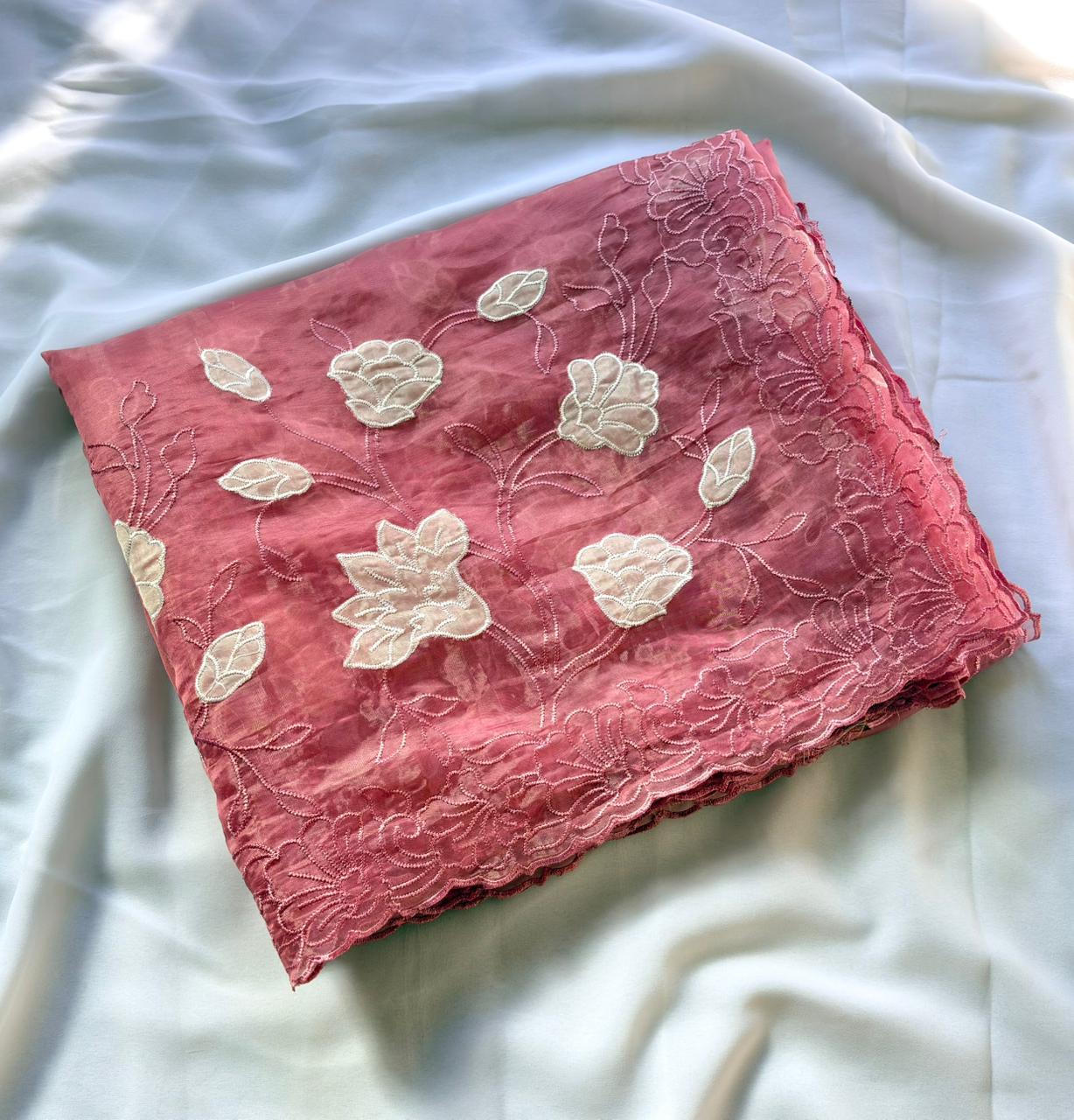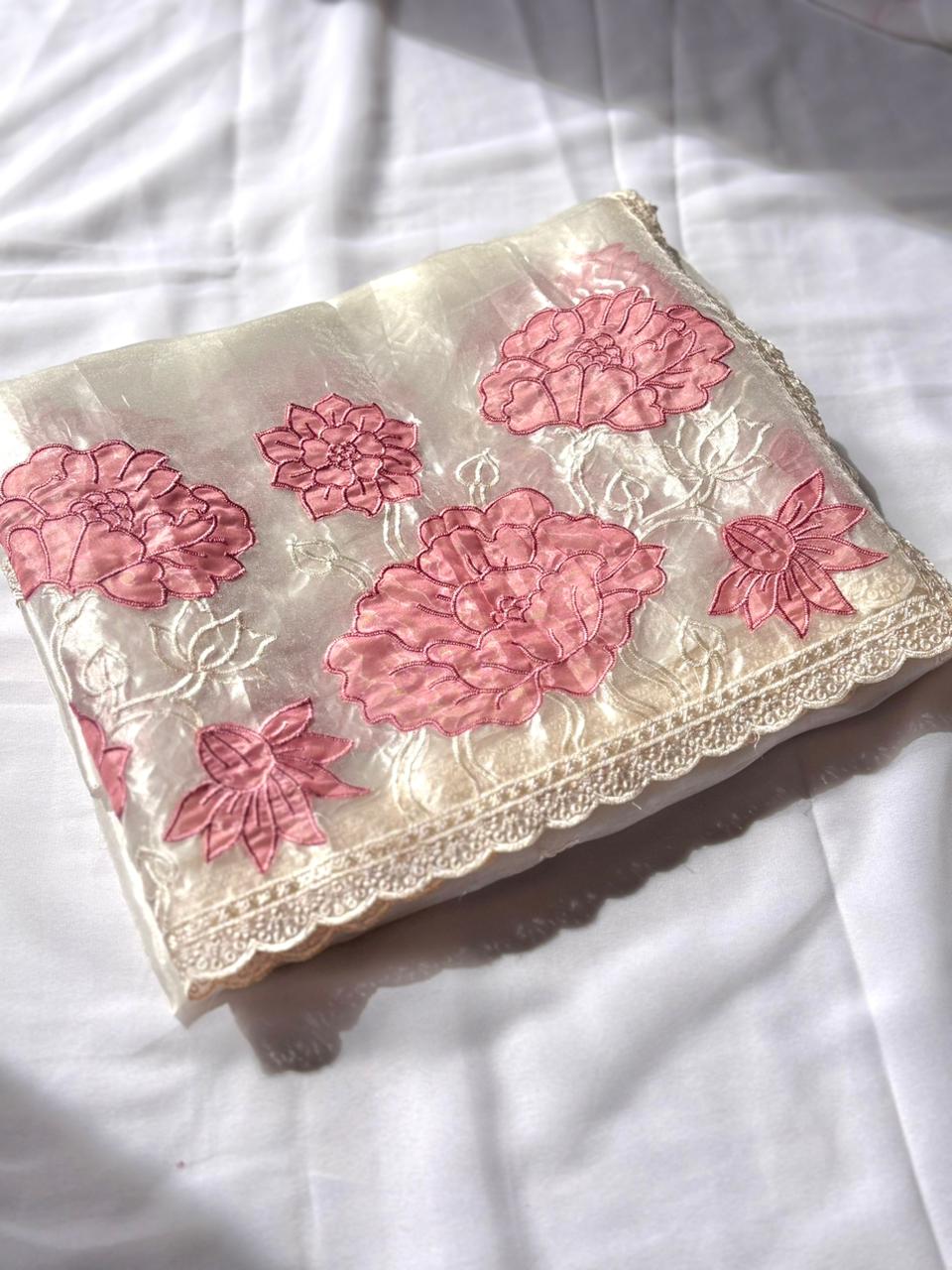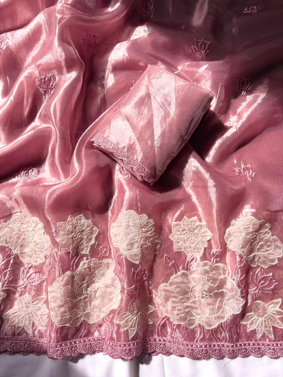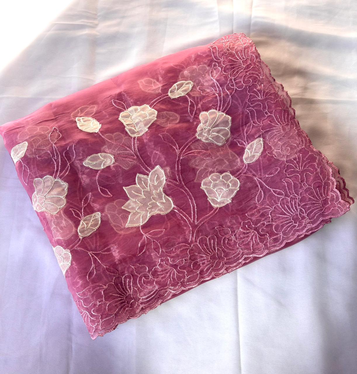 Pink Pure Oris Silk Applique Work Designer Saree
