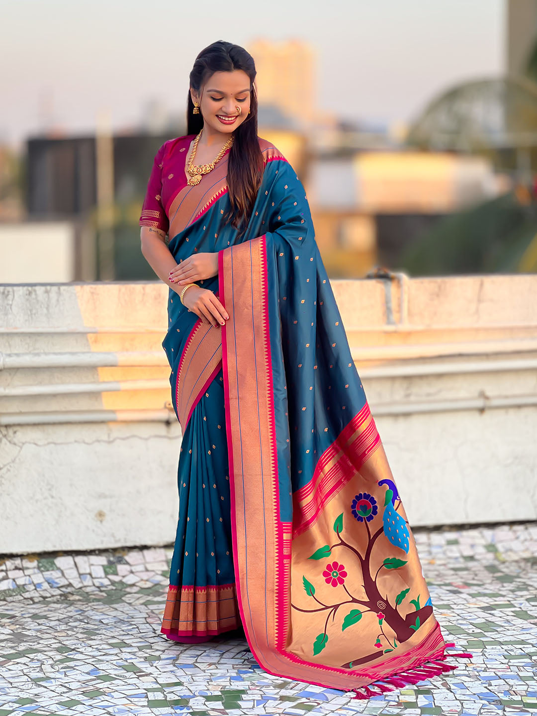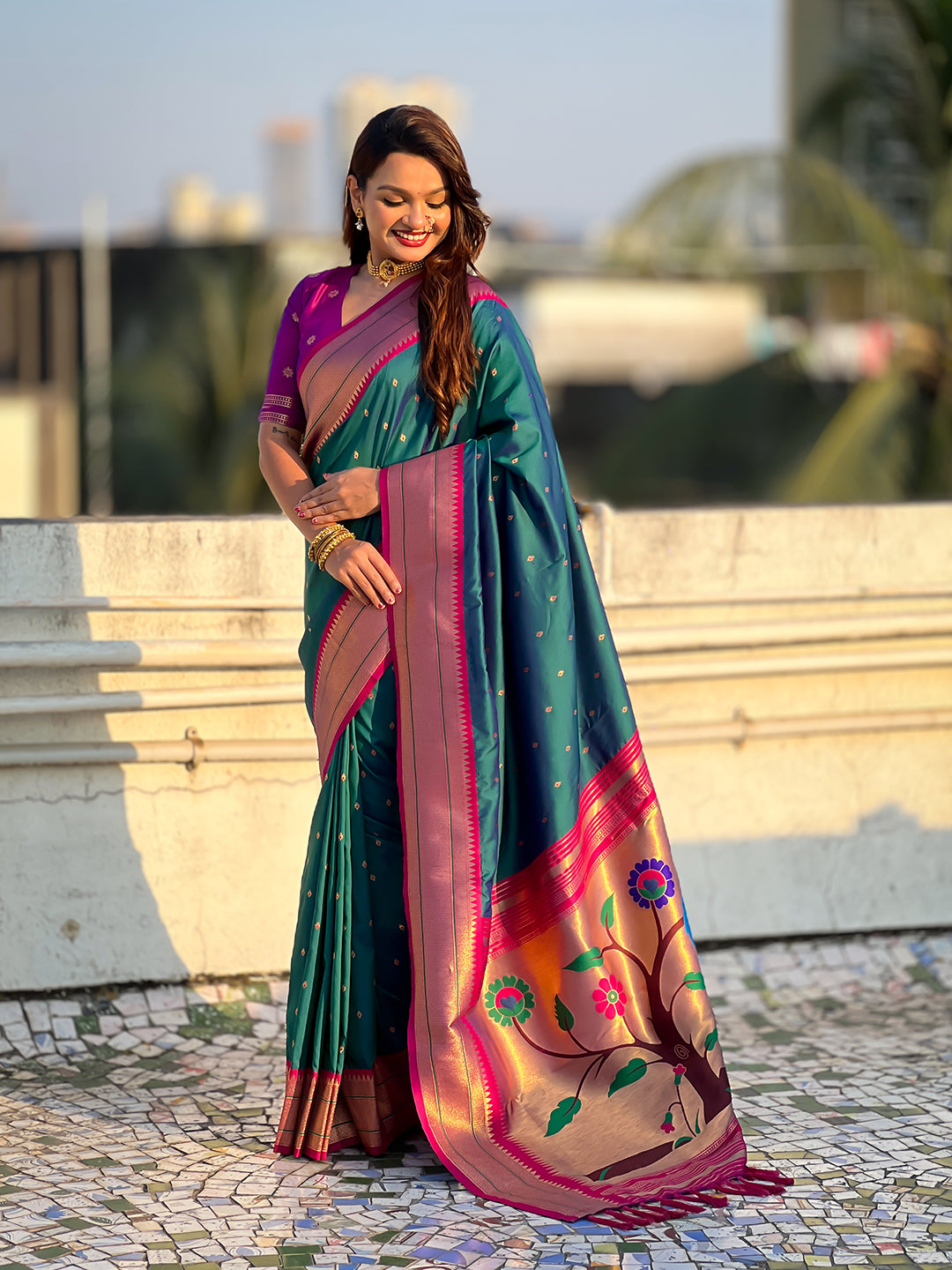 Bottle Green Zari Woven Gudi Padwa Special Paithani Silk Saree