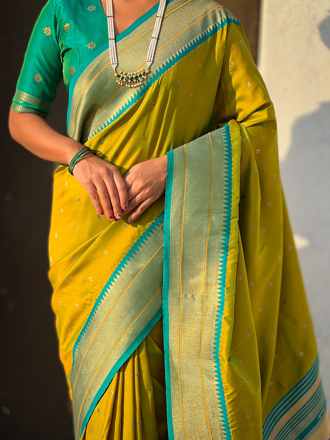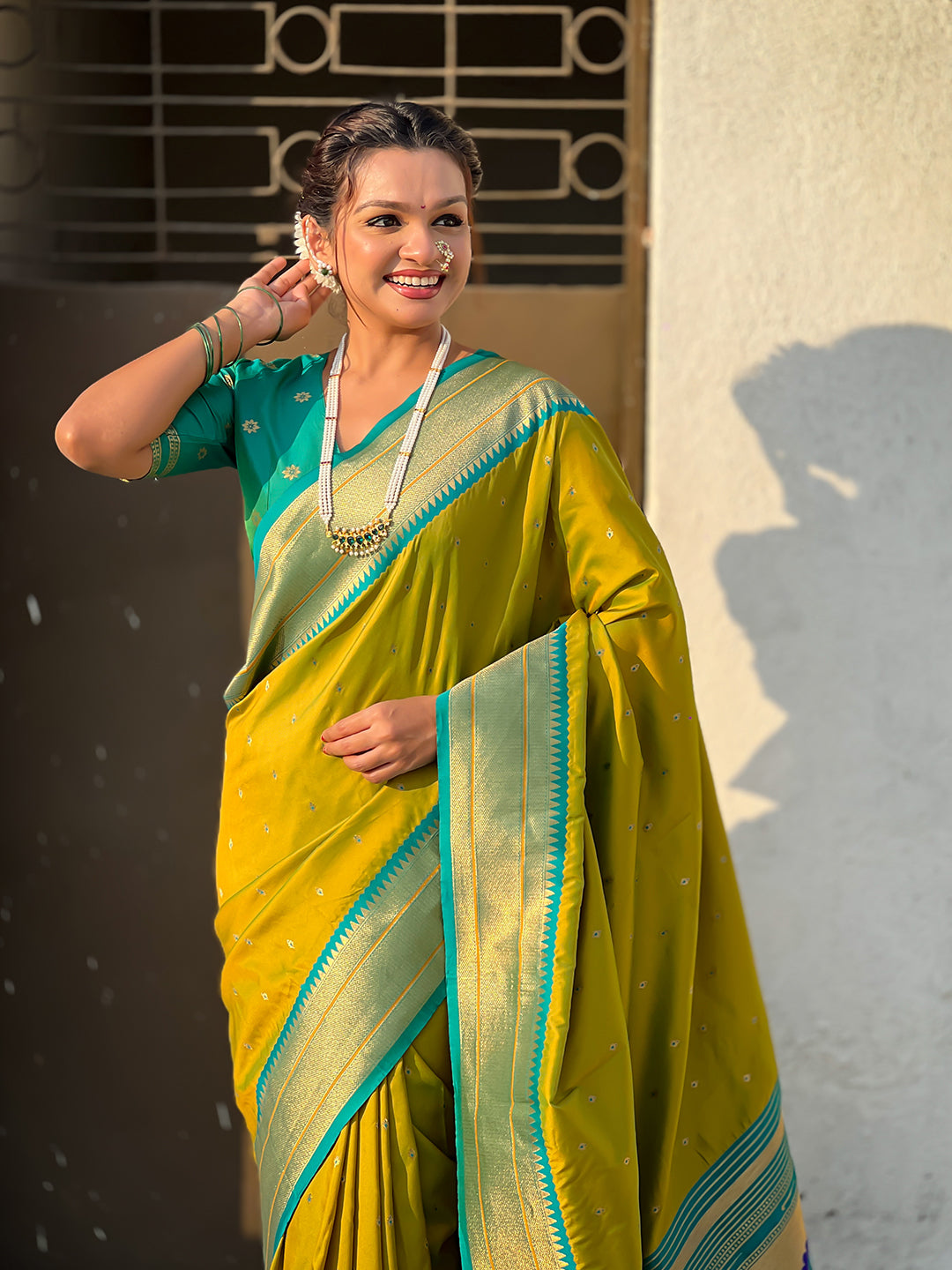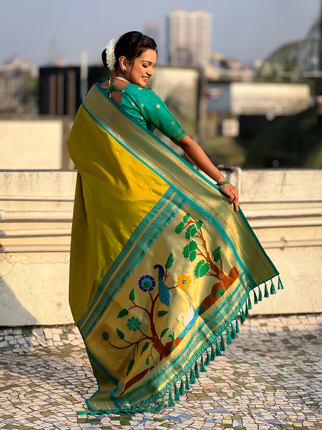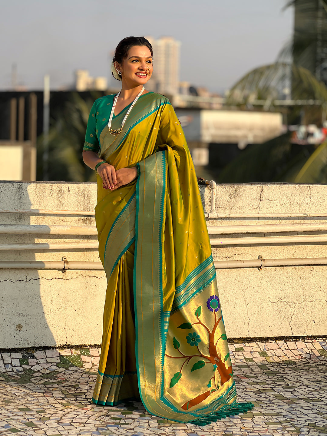 Mehendi Green Peacock Paithani Zari Woven Saree