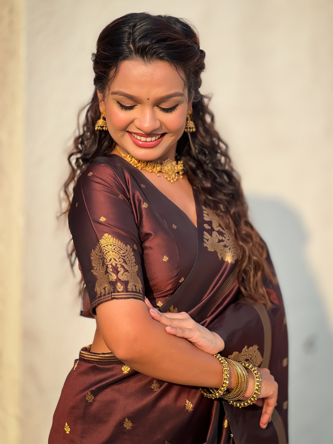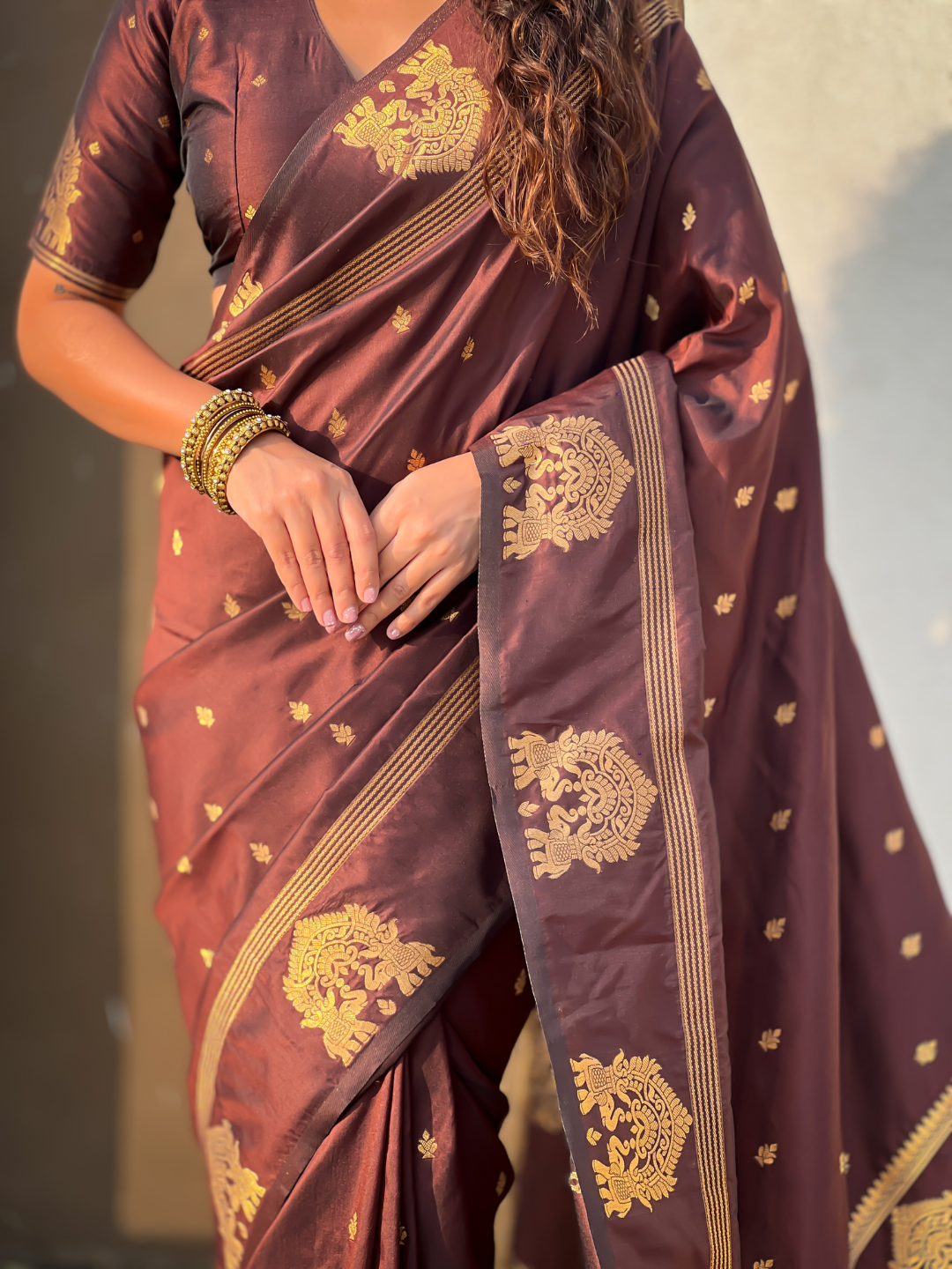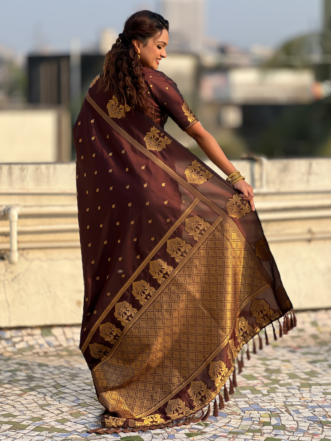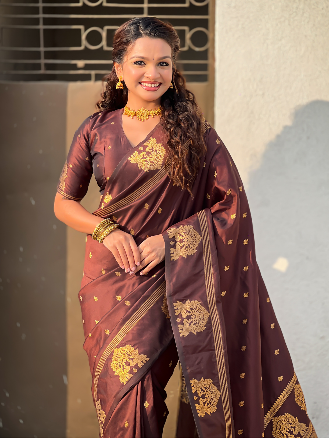 Coffee Brown Soft Silk Traditional Zari Woven Saree