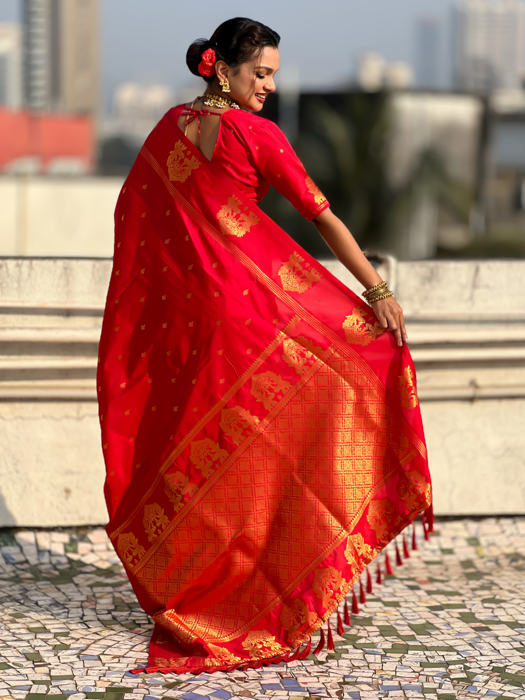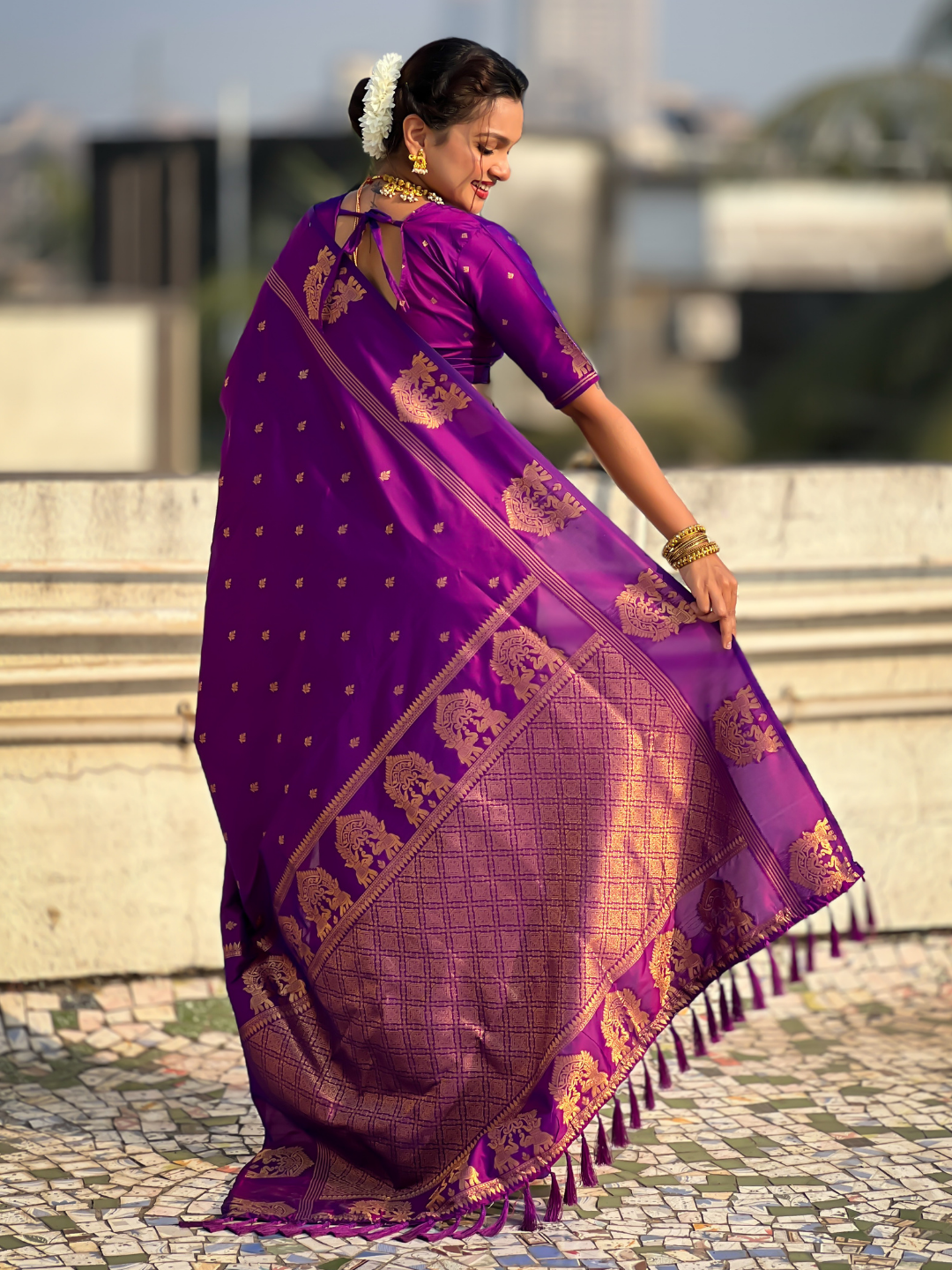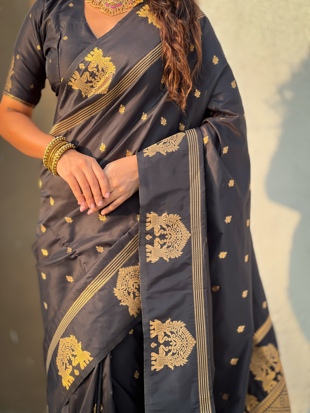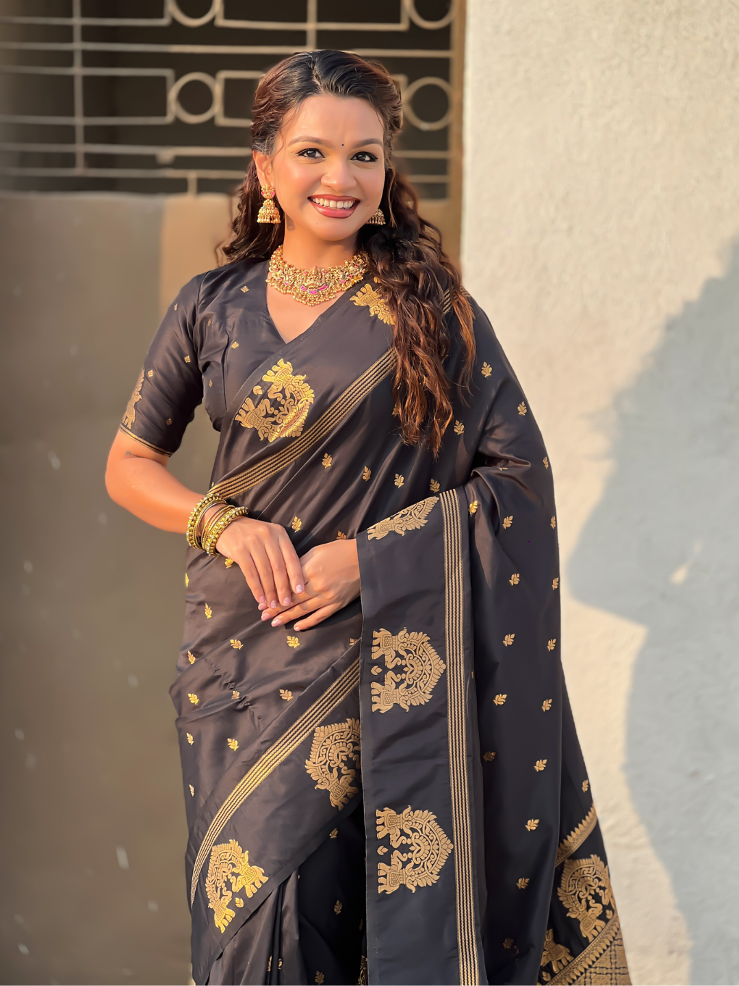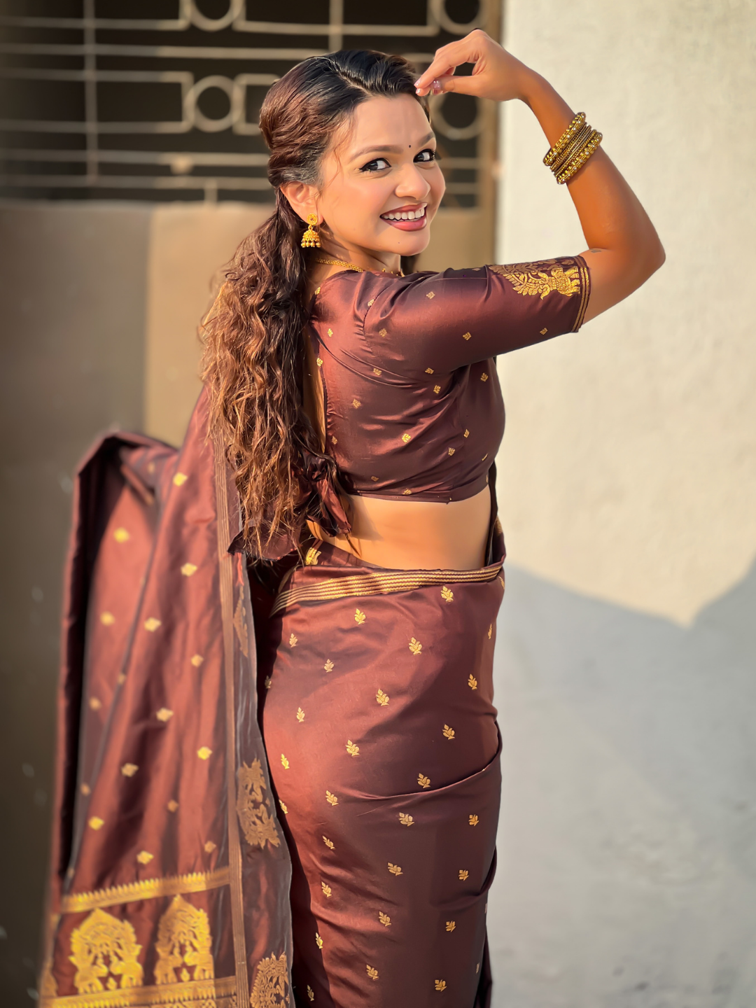 Coffee Brown Soft Silk Traditional Zari Woven Saree