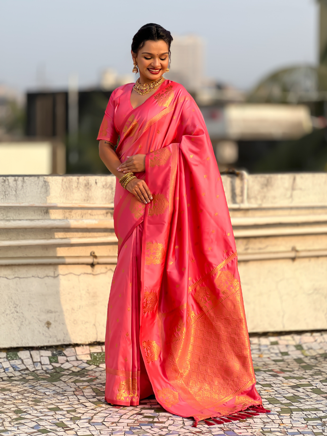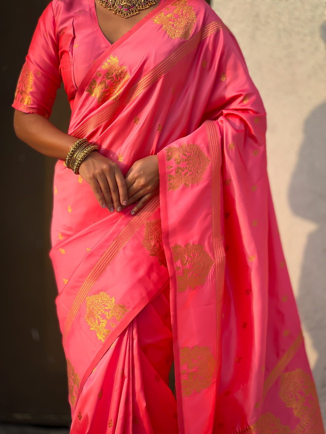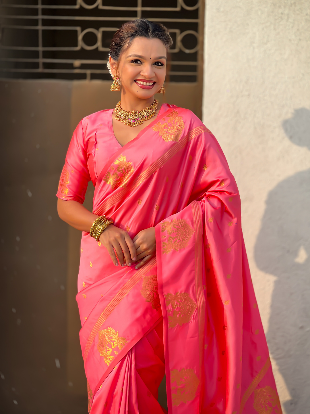 Baby Pink Soft Silk Traditional Zari Woven Saree