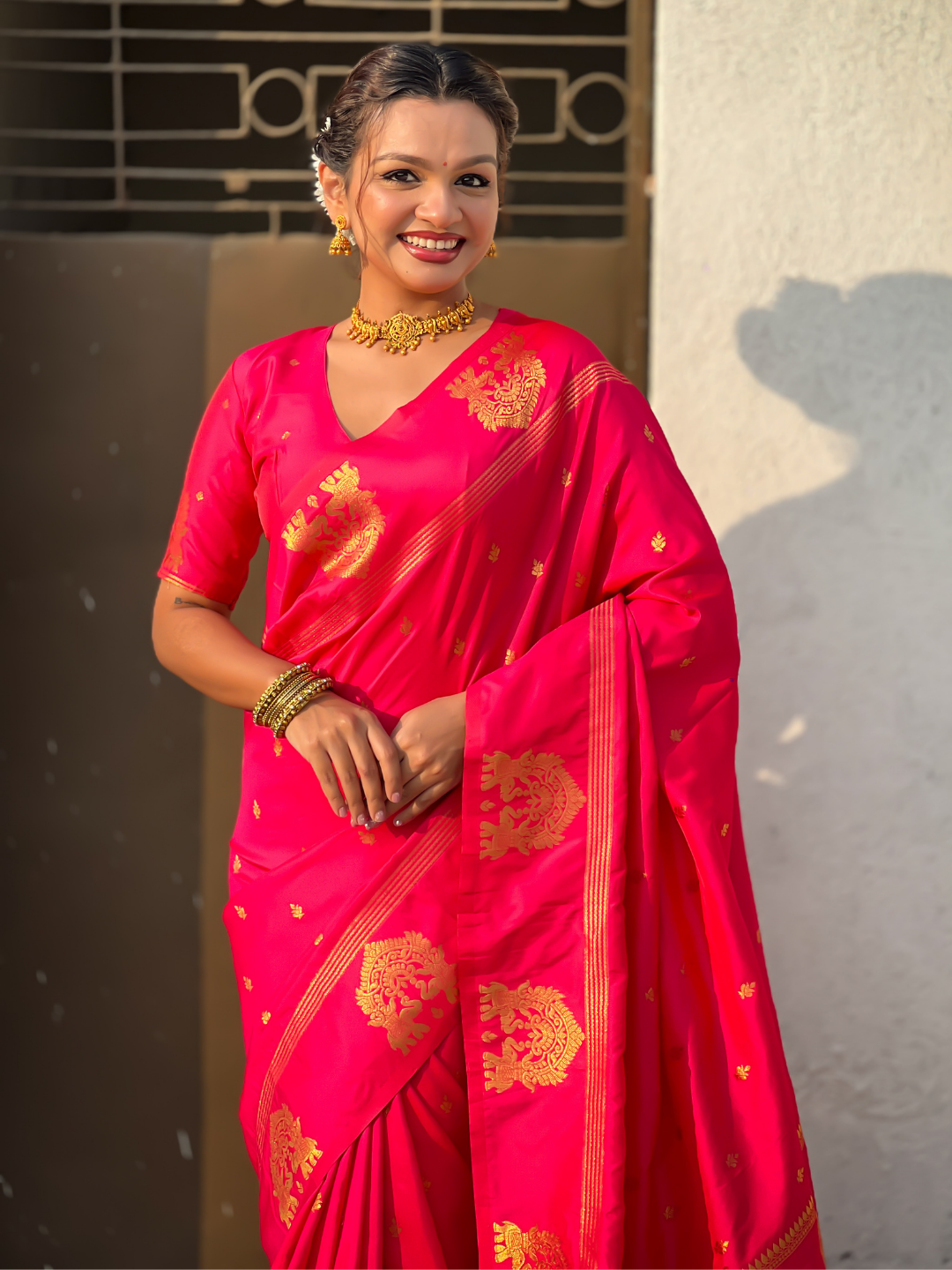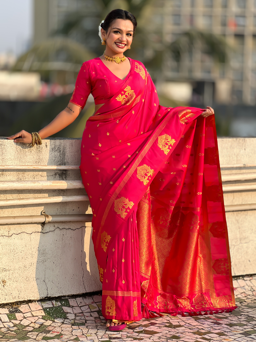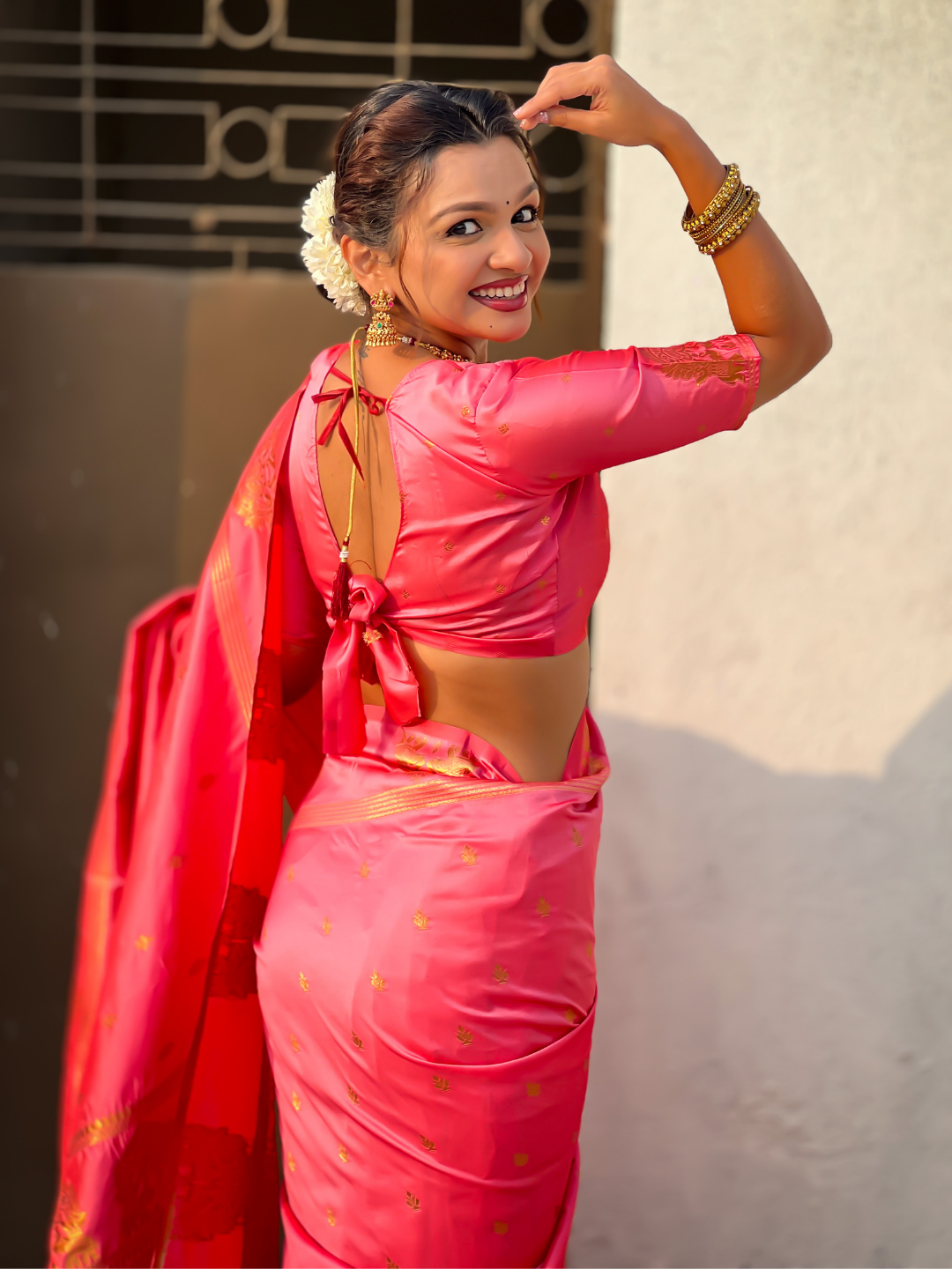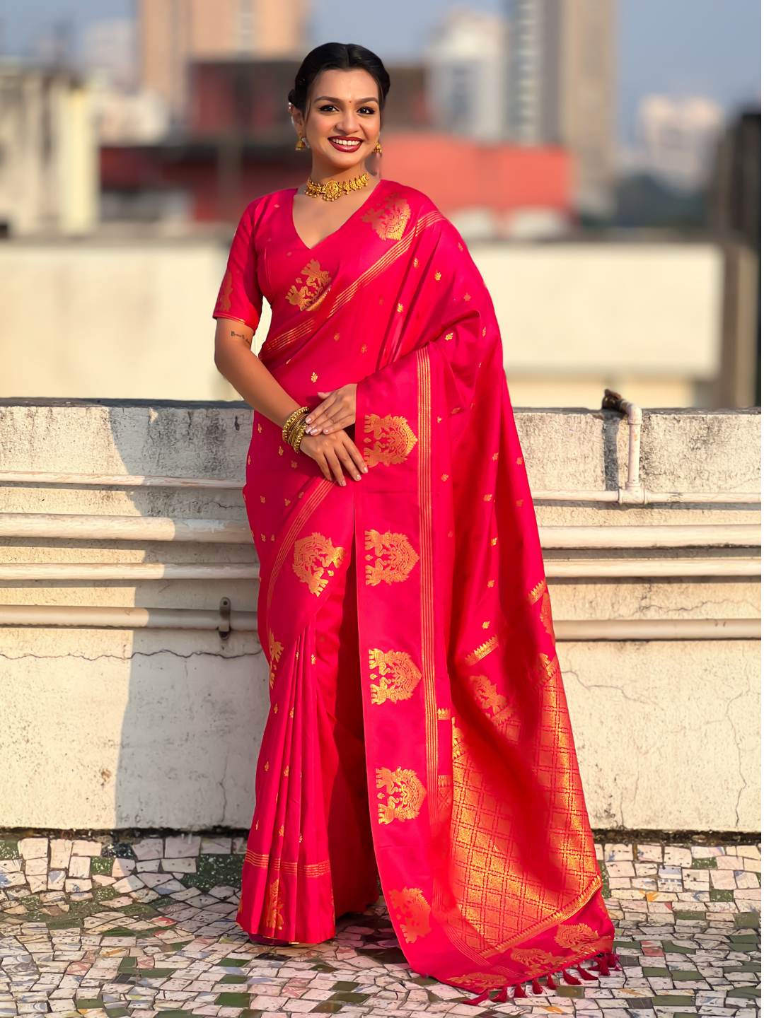 Baby Pink Soft Silk Traditional Zari Woven Saree
