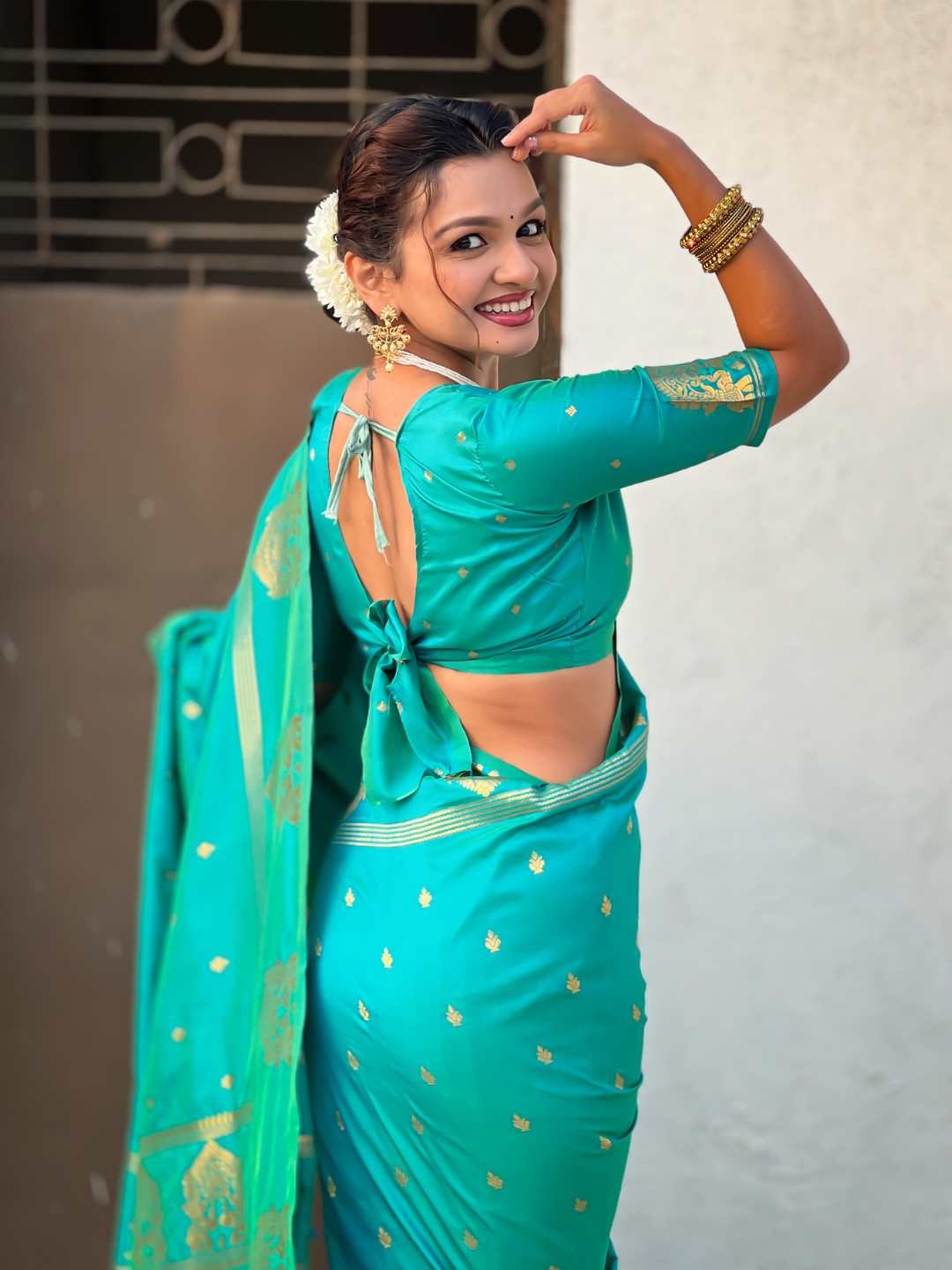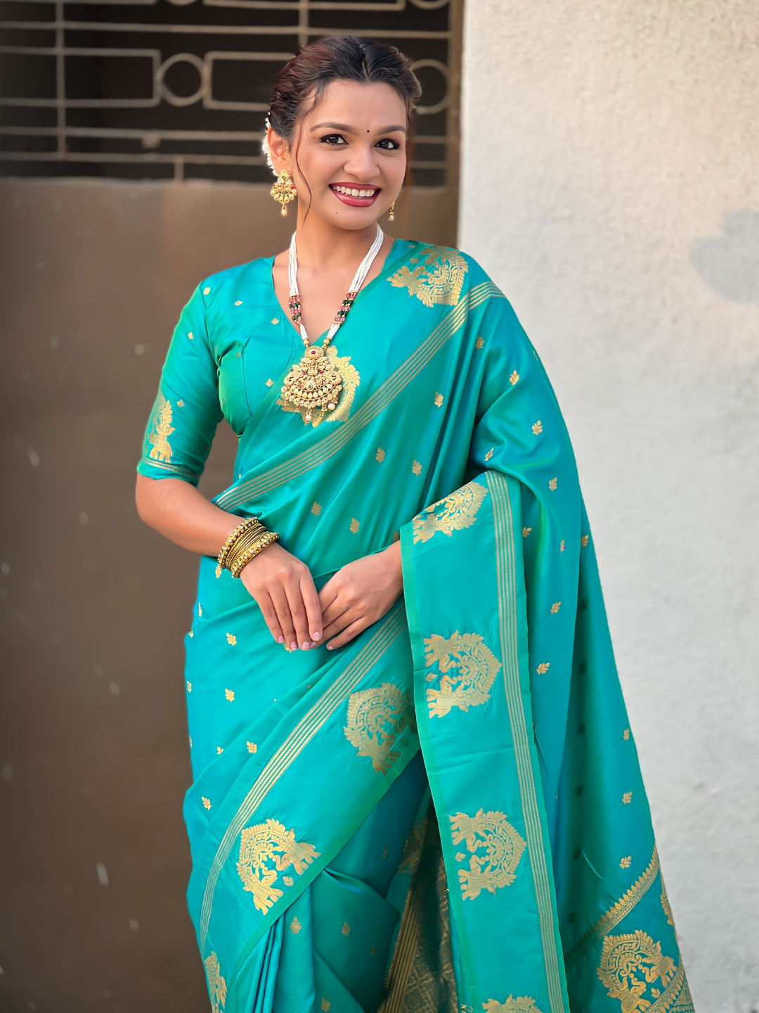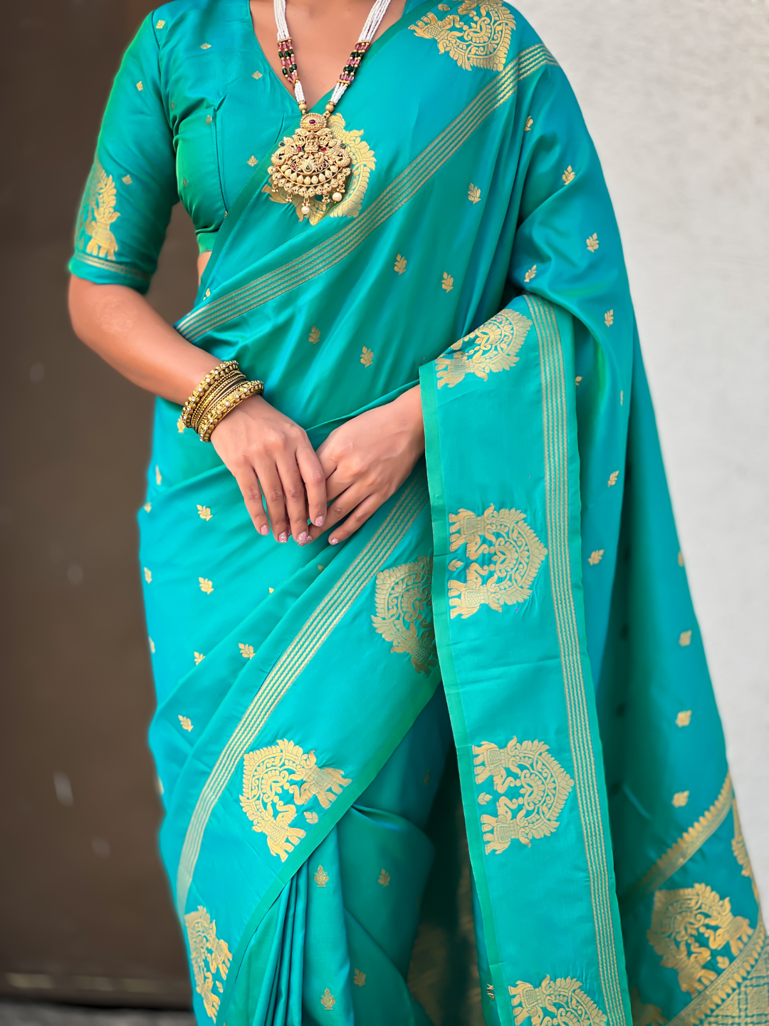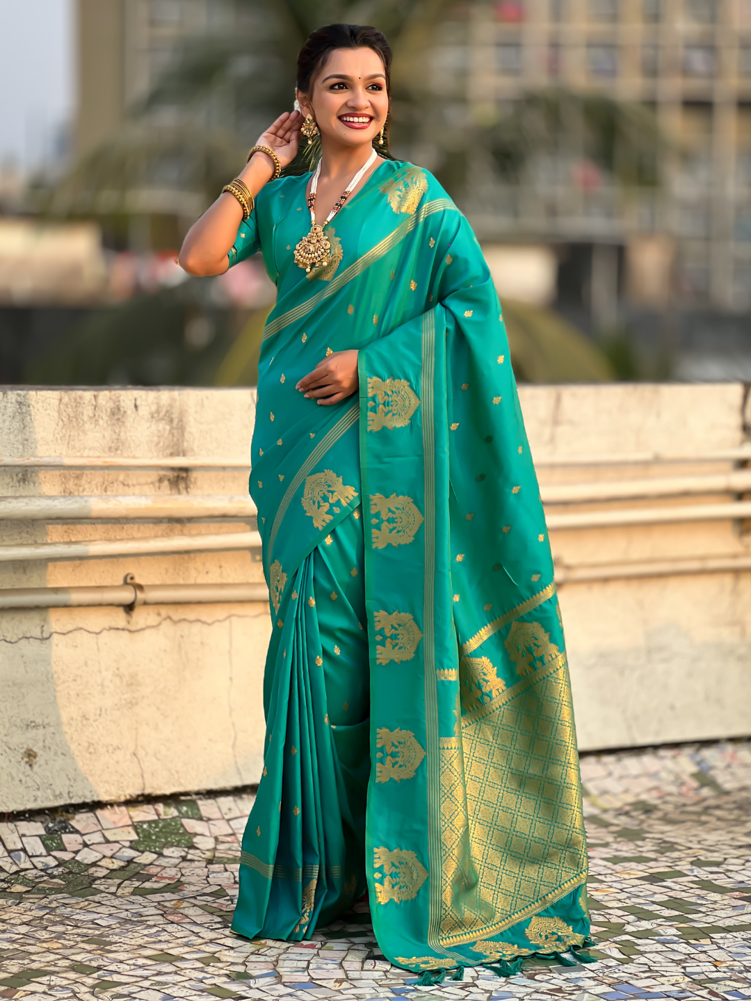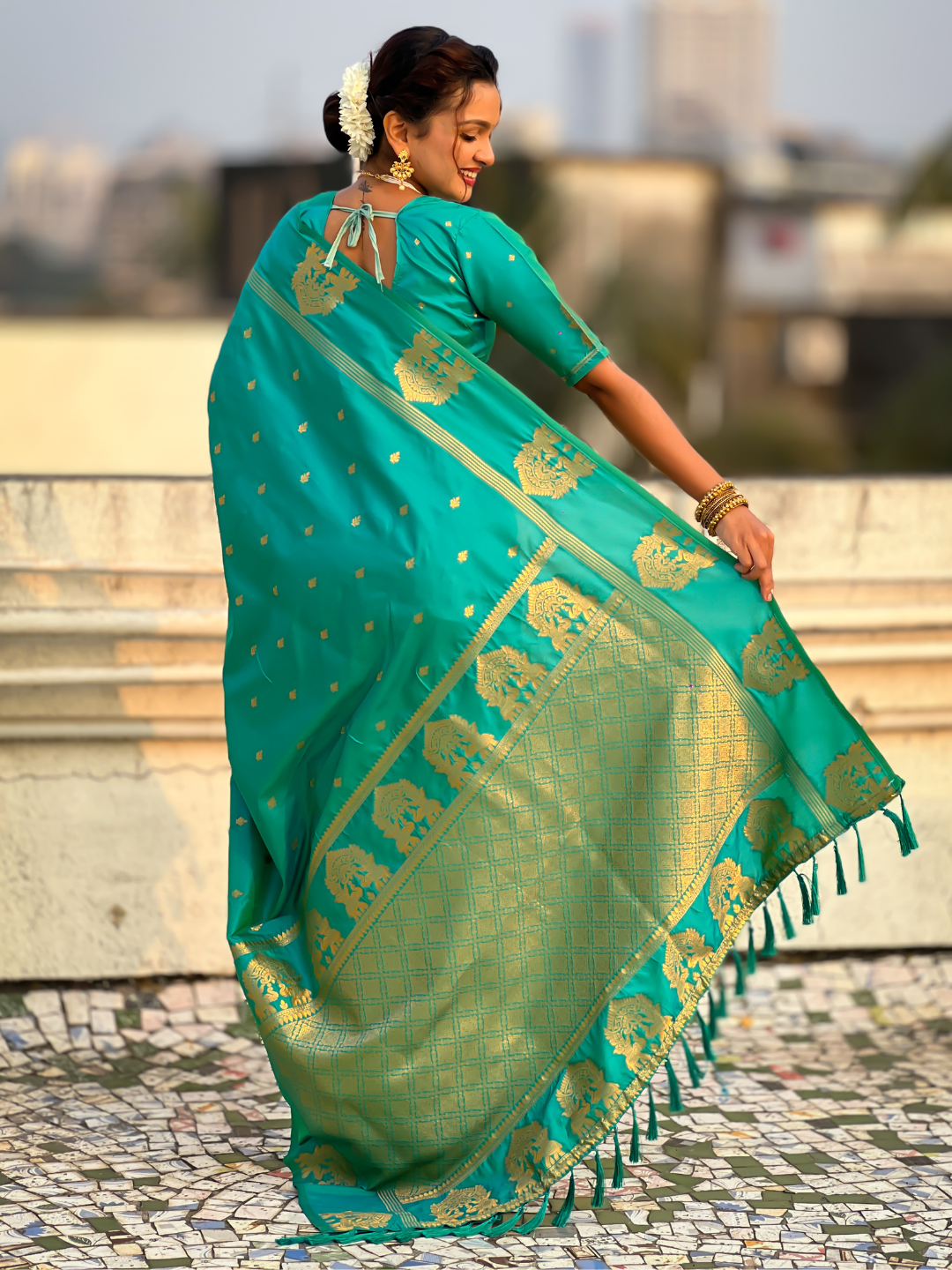Sea Green Soft Silk Traditional Zari Woven Saree