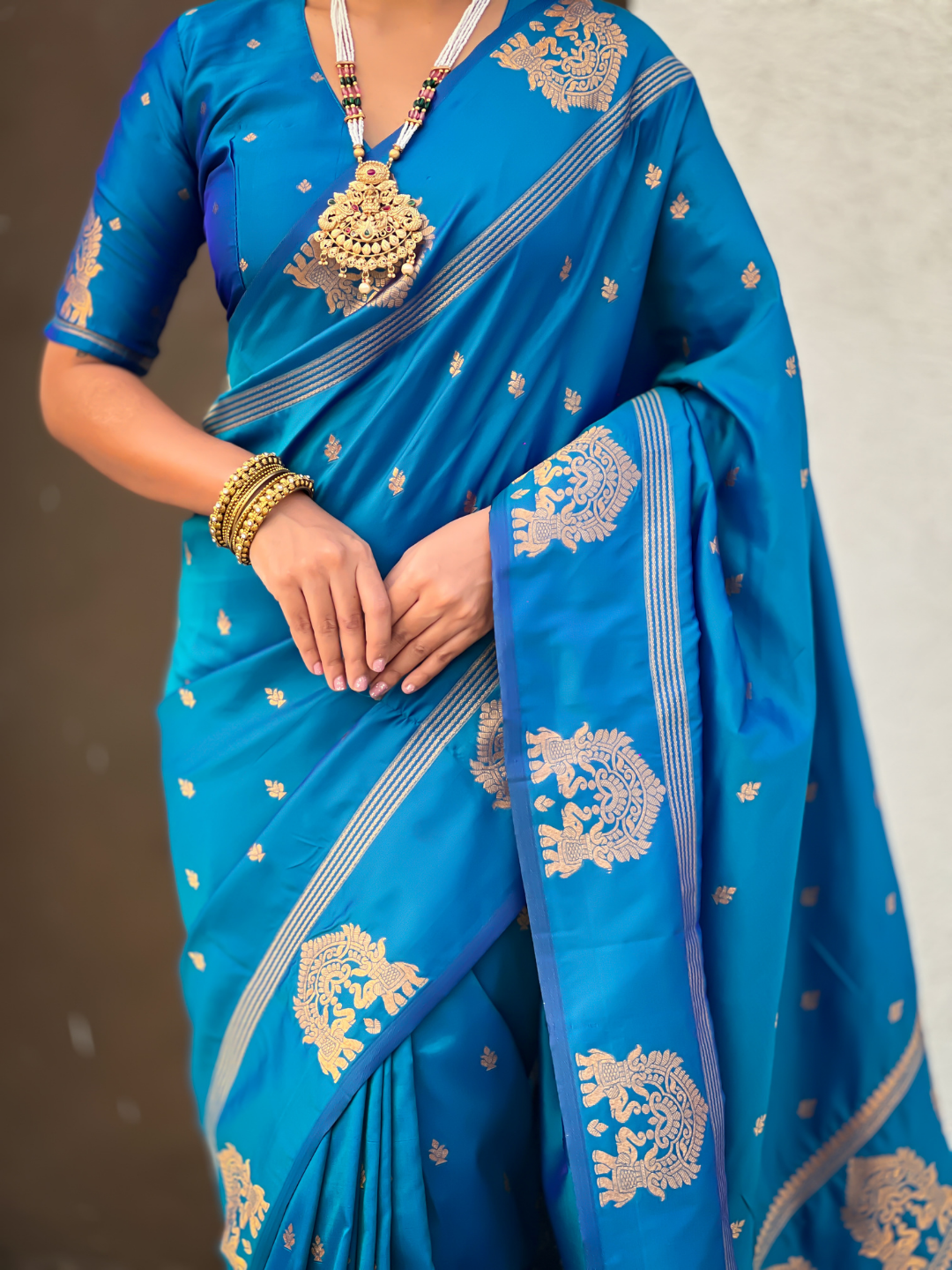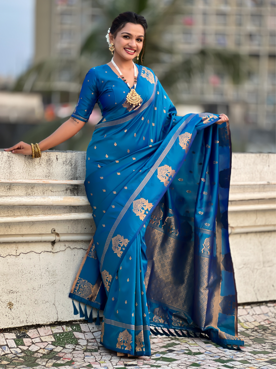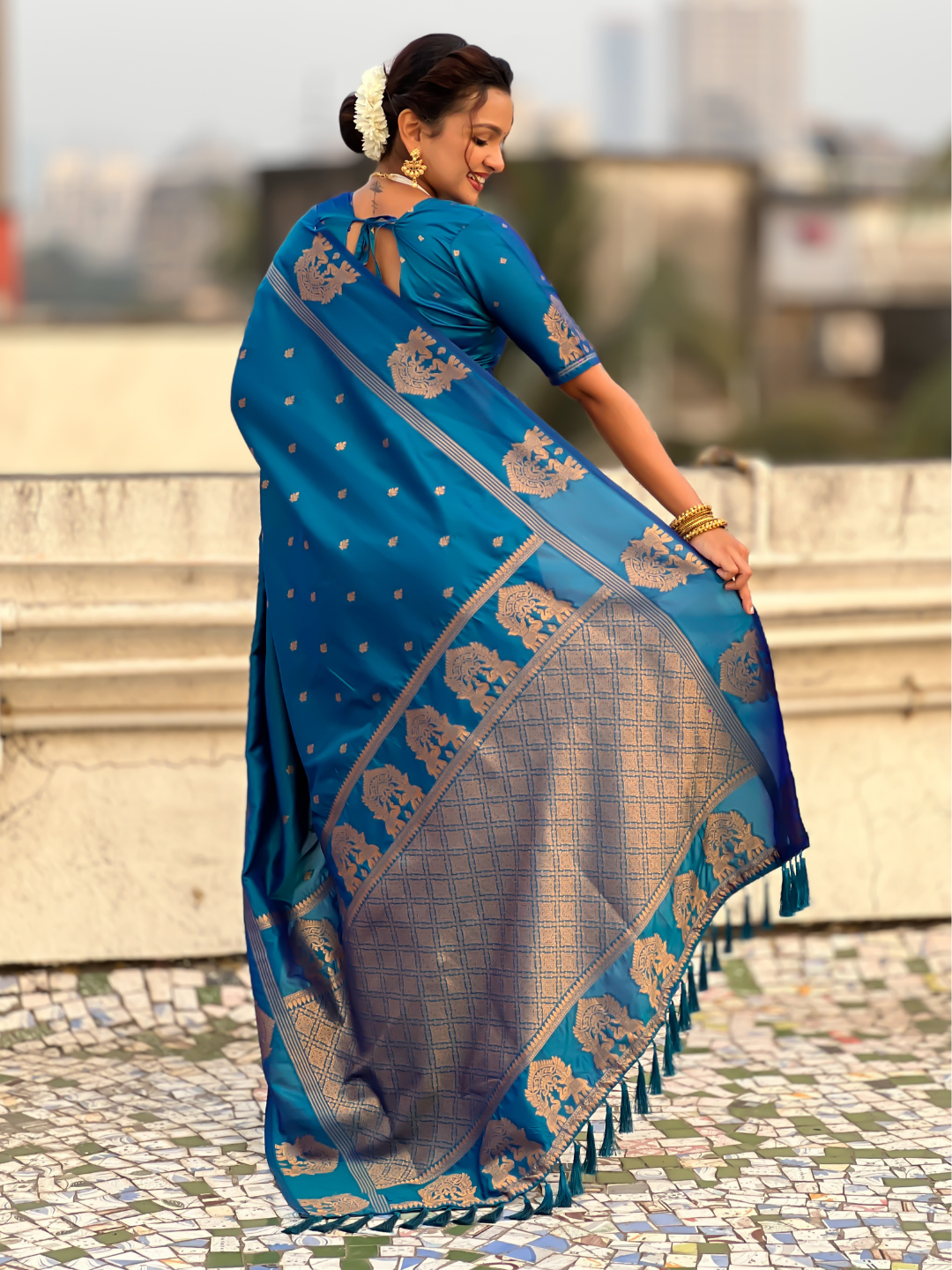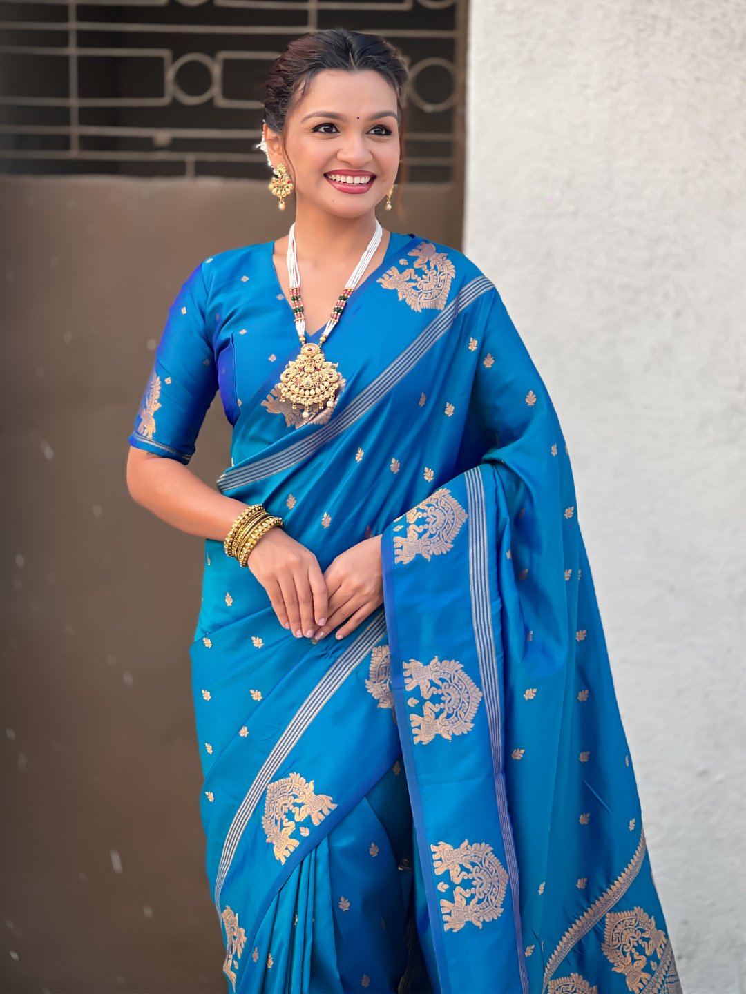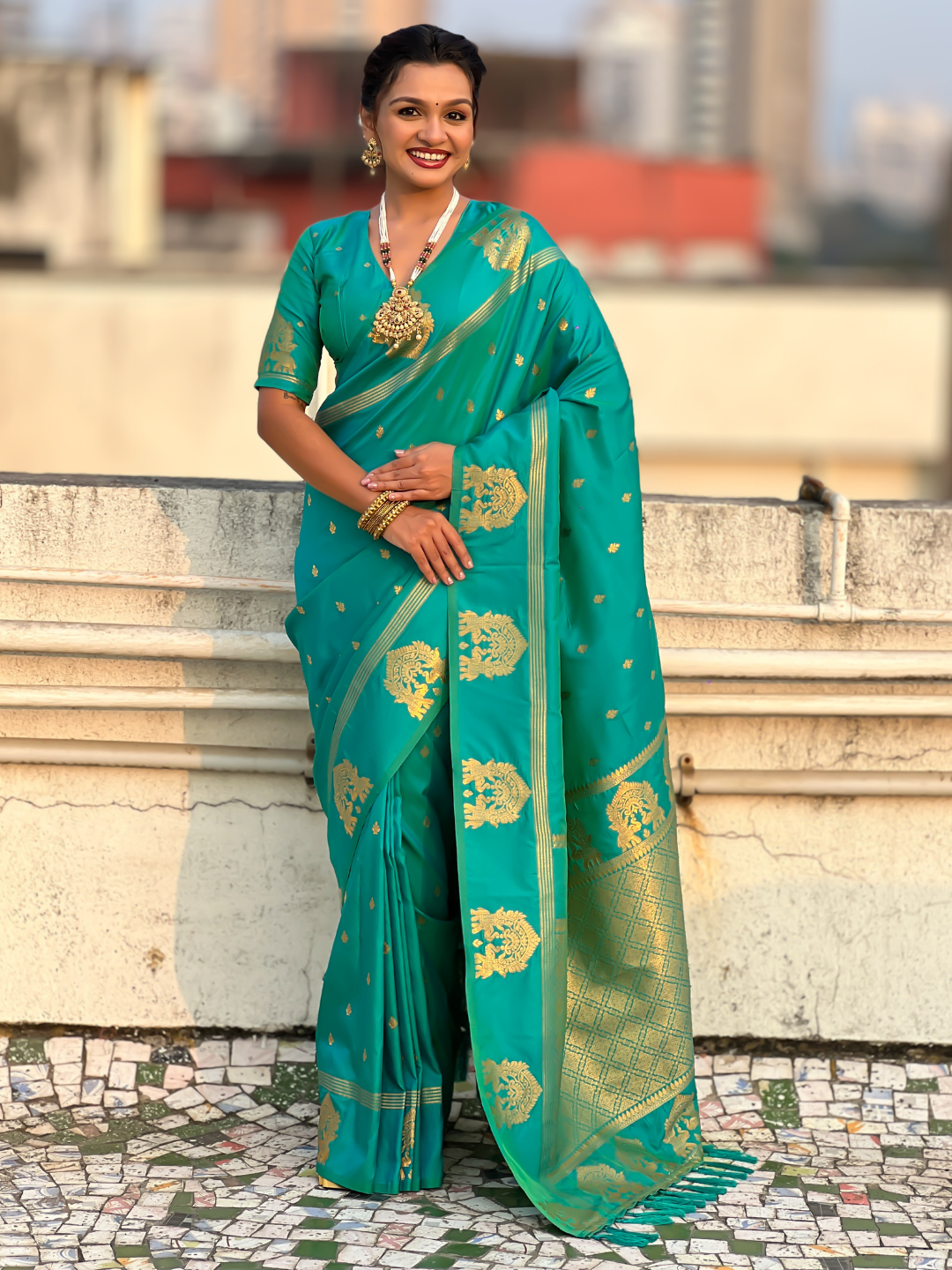 Sea Green Soft Silk Traditional Zari Woven Saree