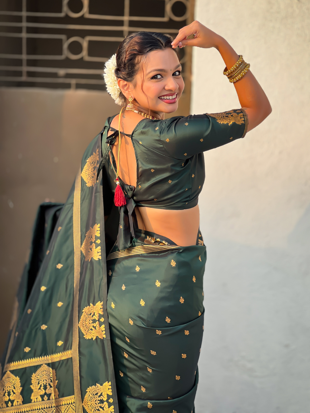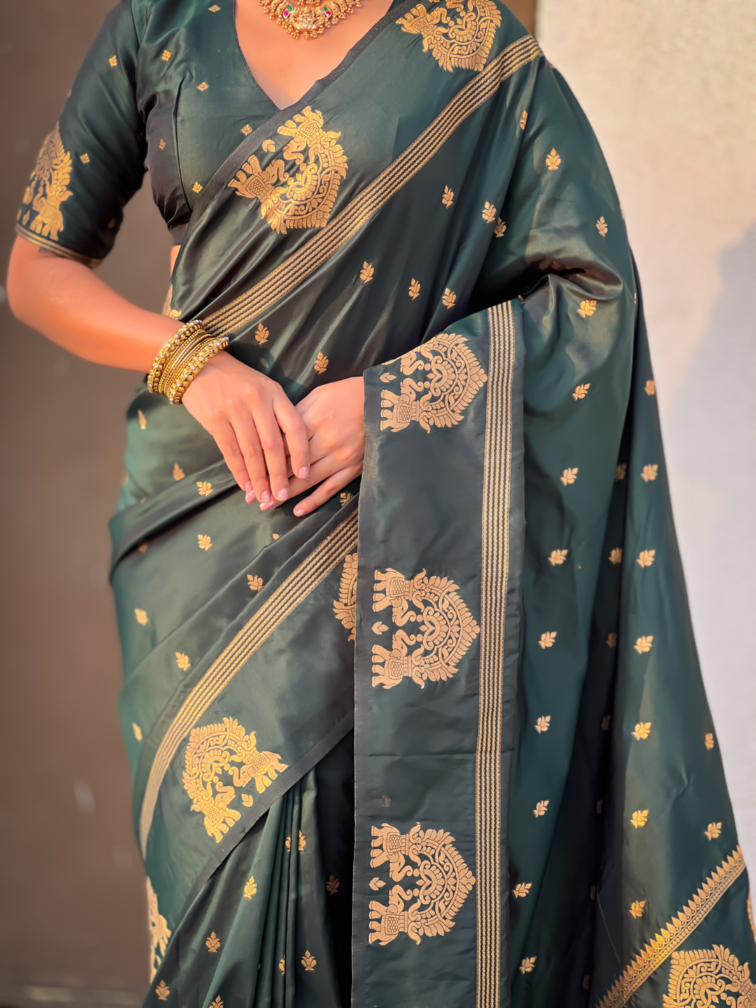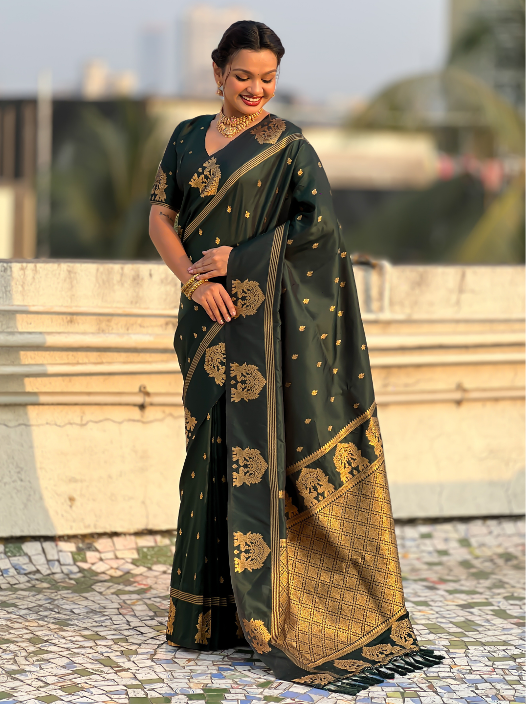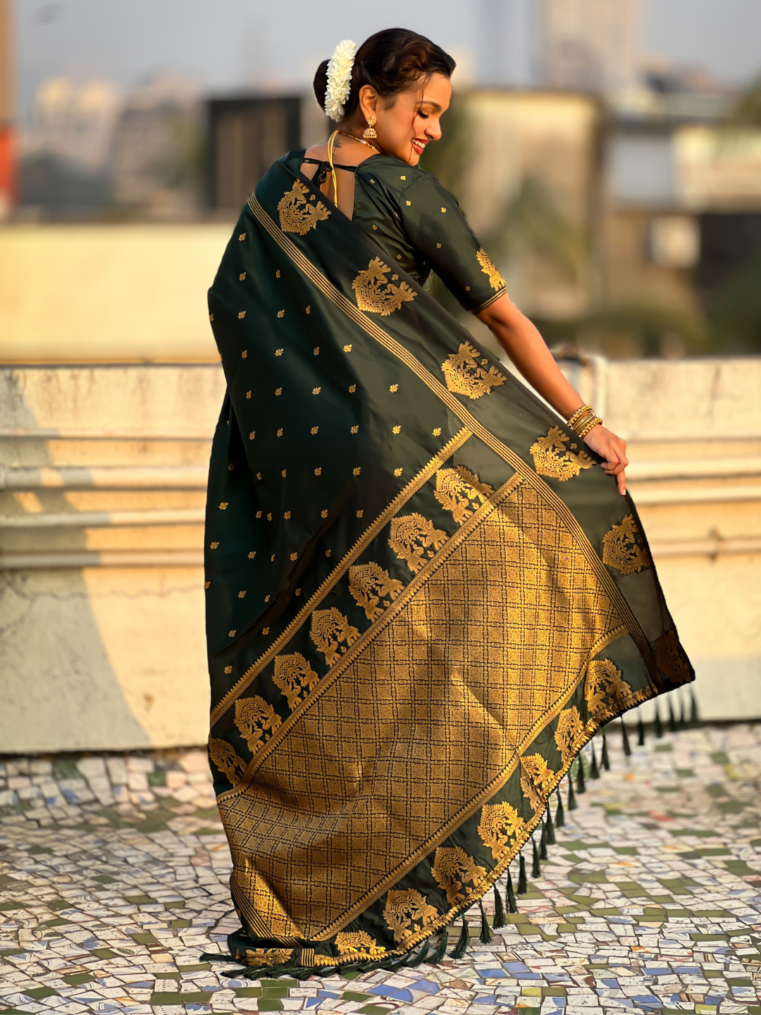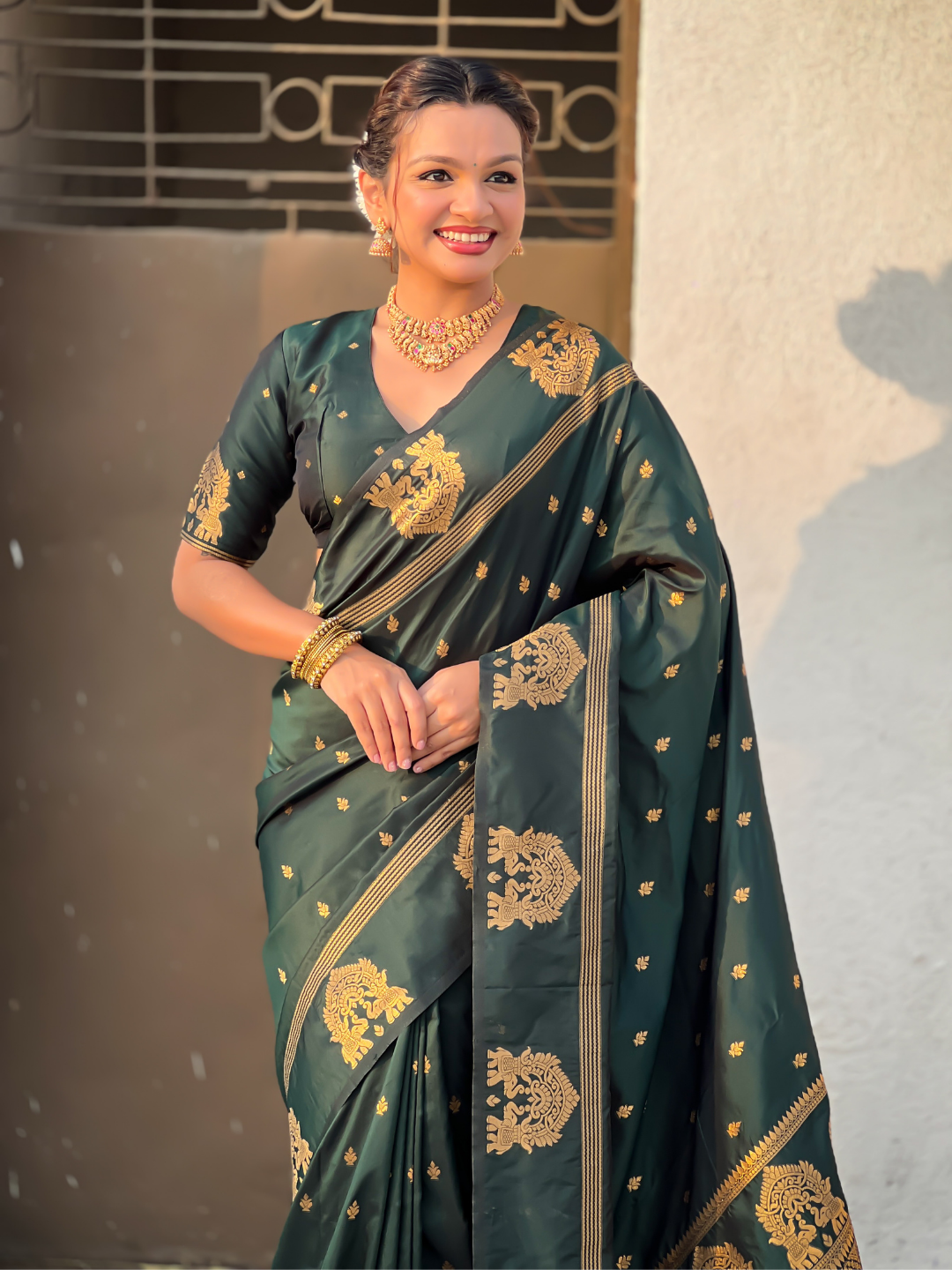 Bottle Green Soft Silk Traditional Zari Woven Saree