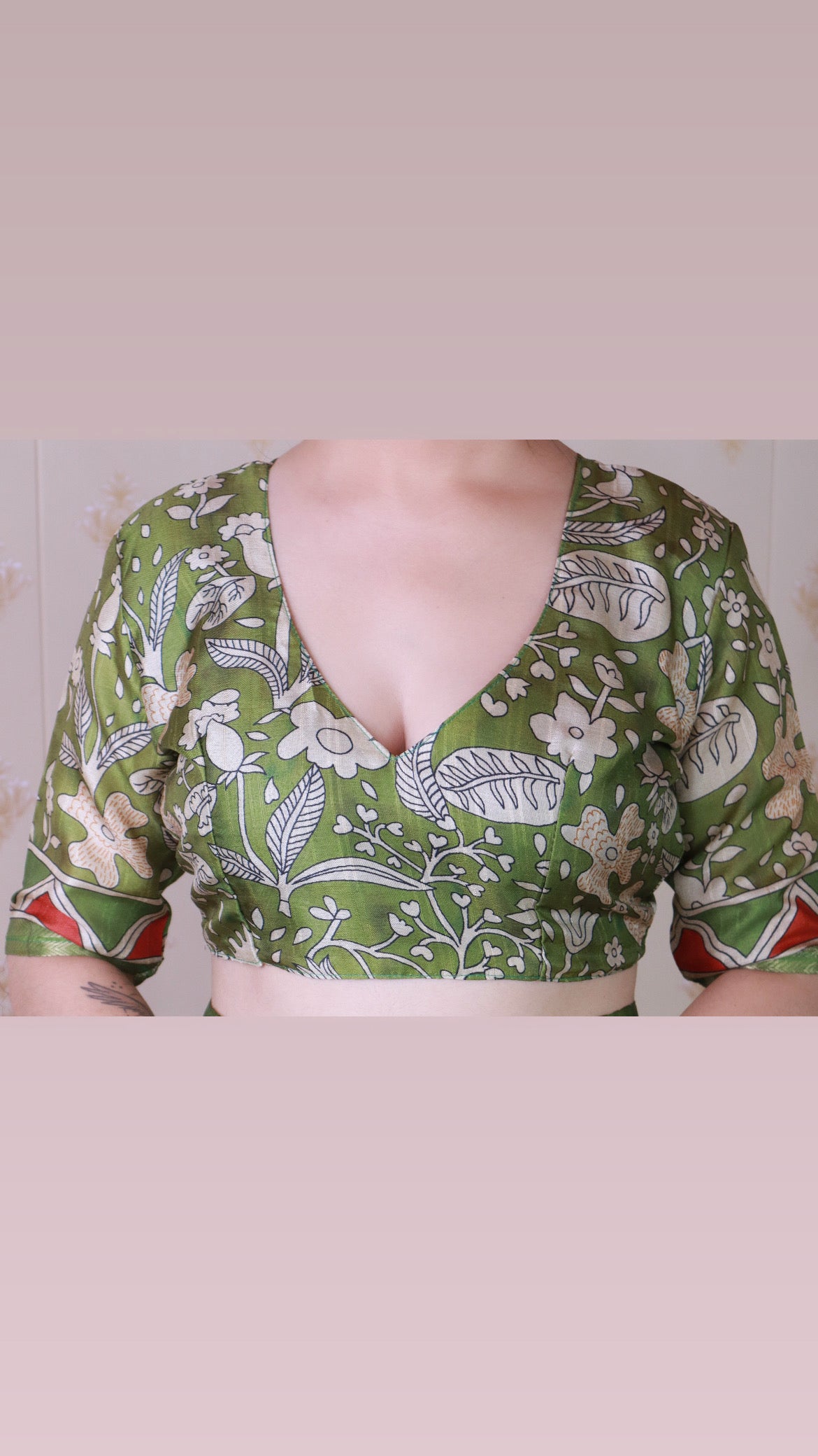 Sea Green Tussar Silk Pattachitra Traditional Printed Zari Woven Saree