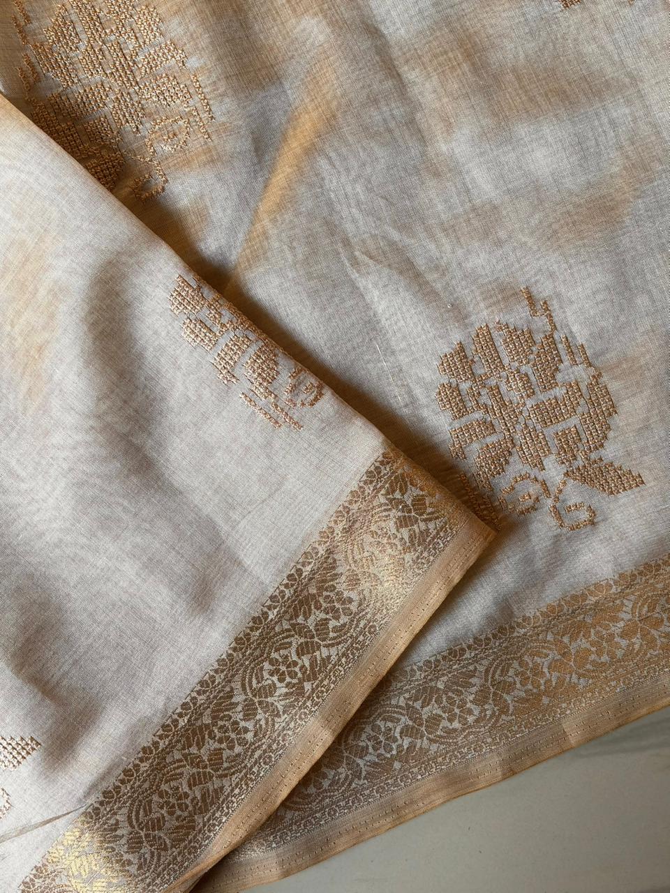 Designer Tussar Silk with Cross Stitch Embroidered Saree